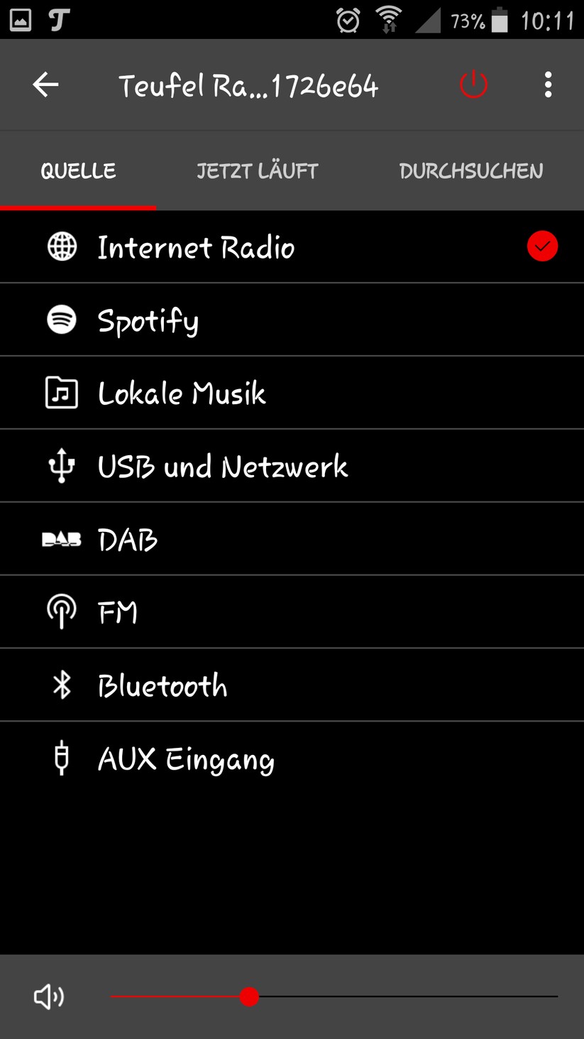 Das Gerät spielt Songs und Podcasts über Spotify Connect ab. Neu und noch nicht in der Anleitung erwähnt, gewährt die Android-App Radio 3sixty Smartphones umfangreichen Zugriff auf alle relevanten Funktionen. Das erfolgt ohne Sicherheitsabfrage – Smartphone mit App und Digitalradio müssen sich dafür lediglich im gleichen Netzwerk befinden. Eine Version für iOS hat Teufel angekündigt .