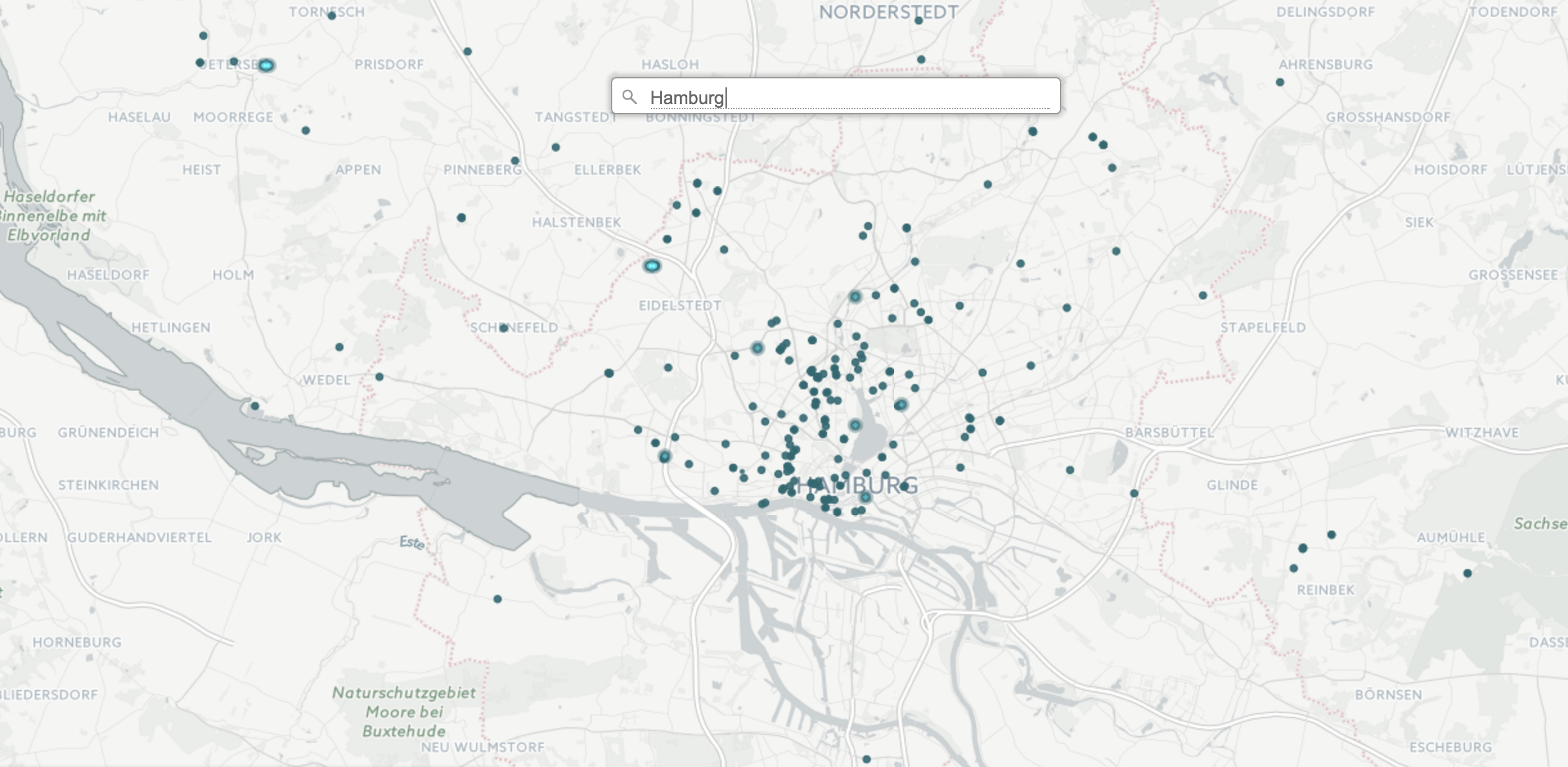 Doch wie am Anfang gesagt, ist der bravo kein gewöhnlicher Tracker, sondern er nutzt eine sogenannte Crowd-GPS-Funktion. Sollte man etwas verlieren, kann es auch von anderen bravo-Besitzern gefunden werden, wenn sie mal vorbei laufen. Im Grunde wird der eigene Tracker im Netzwerk des Herstellers als vermisst gemeldet. Wirklich nützlich ist das nur dann, wenn die kritische Masse vorhanden und somit die Netzwerkexternalität ausgeprägt ist. In den USA weist das Netz eine hohe Dichte auf – hier in Hamburg sieht die Karte wie folgt aus: