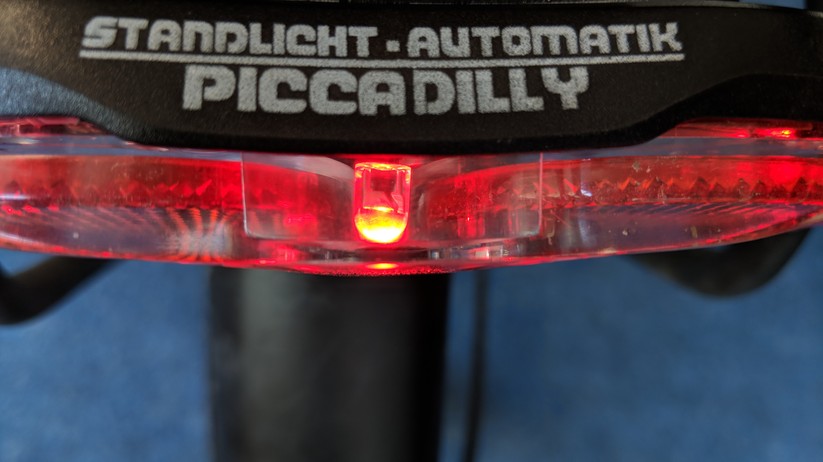 GPS-Tracker am Fahrrad wollen gut versteckt sein. Schließlich soll der Dieb den Tracker nicht sofort erkennen und entfernen können. Der Velocate VC One löst dieses Problem mit Bravour, denn seine Technik verbirgt sich von außen kaum zu erkennen in einem umgebauten Rücklicht der Marke Büchel Piccadilly. Dieses Rücklicht ist StVZO-Konform und in Deutschland laut Velocate hunderttausendfach im Einsatz. Es bietet drei rote LEDs – zwei zur Seite, eine nach hinten gerichtet. Die Montage erfolgt über 80-mm-Bohrungen, Velocate biete zusätzlich Adapter für 50- mm-Bohrungen an.