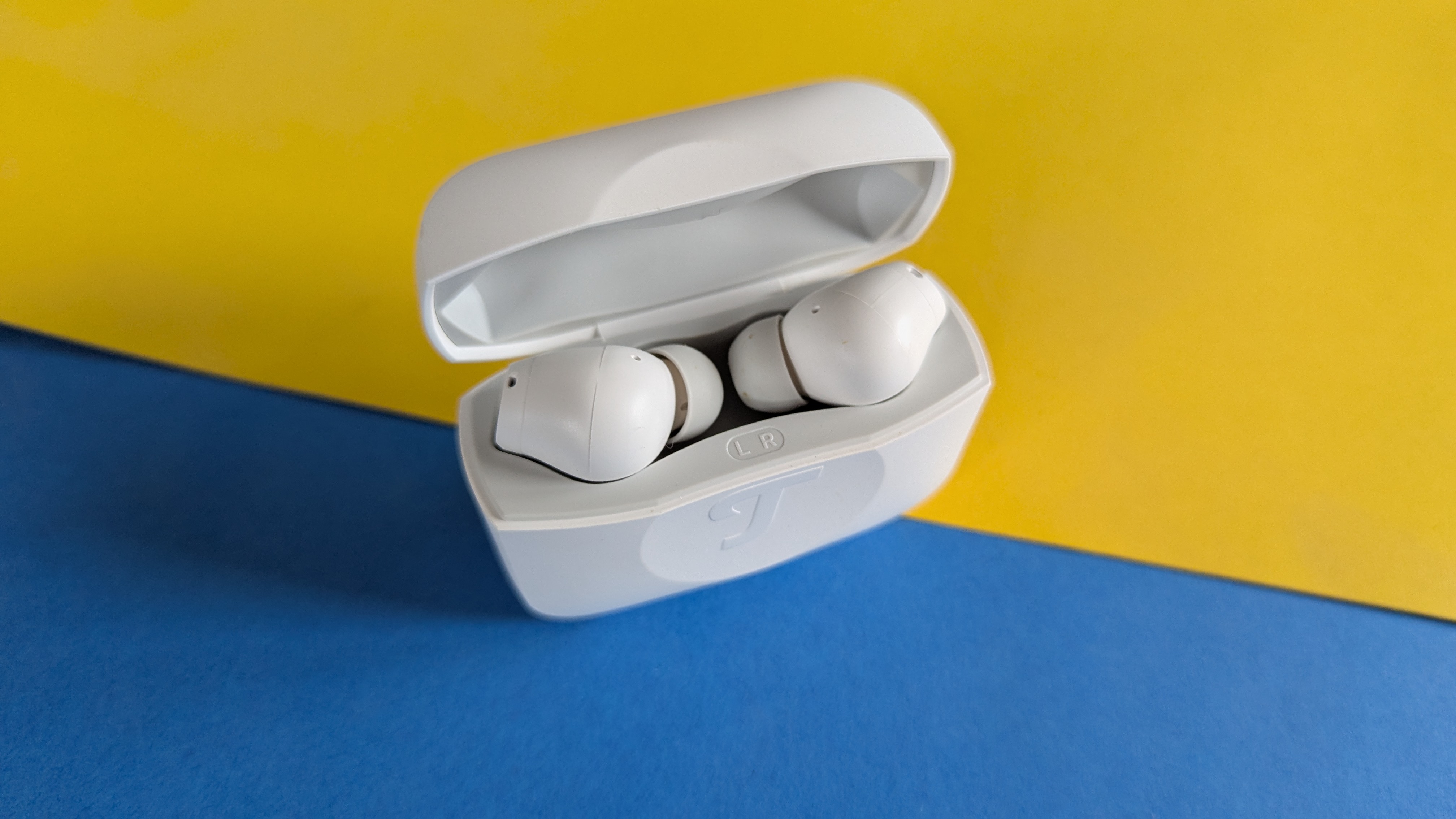 Beim Öffnen des Ladecases sorgt ein leichter Widerstand dafür, dass sich das Scharnier etwas schwergängig betätigen lässt, was aber von Vorteil ist, wenn das Ladecase mal auf den Boden fällt. Dann öffnet sich die Hülle nicht und die Earbuds bleiben geschützt. Dieses Designkonzept hat uns schon bei den Real Blue TWS 3 überzeugt, allerdings funktioniert es bei den Airy TWS 2 etwas besser.