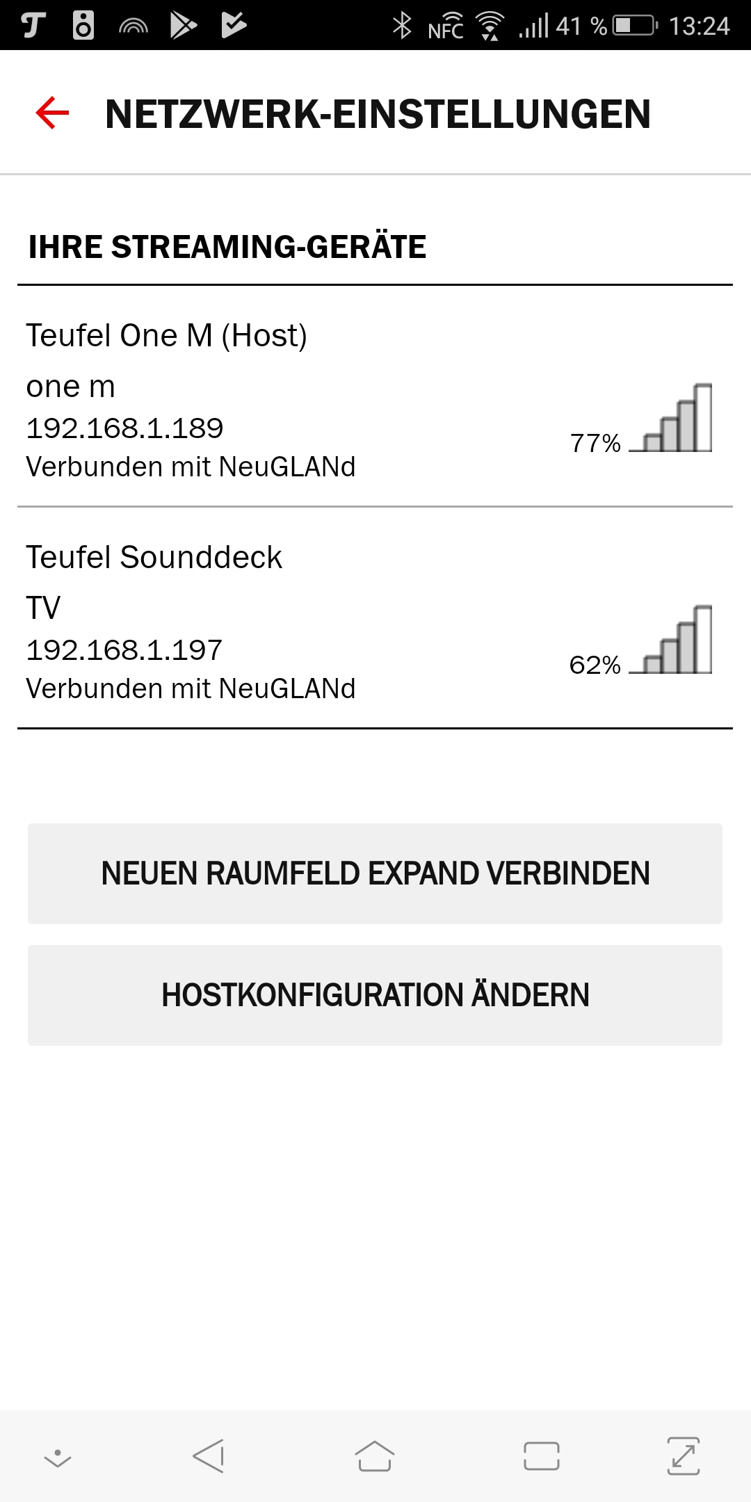 Ein Gerät wird zum Host, das ist meist das erste eingerichtete Raumfeld-System. Der Host ist deswegen wichtig, weil er unter anderem die Musik von USB-Geräten streamen kann.