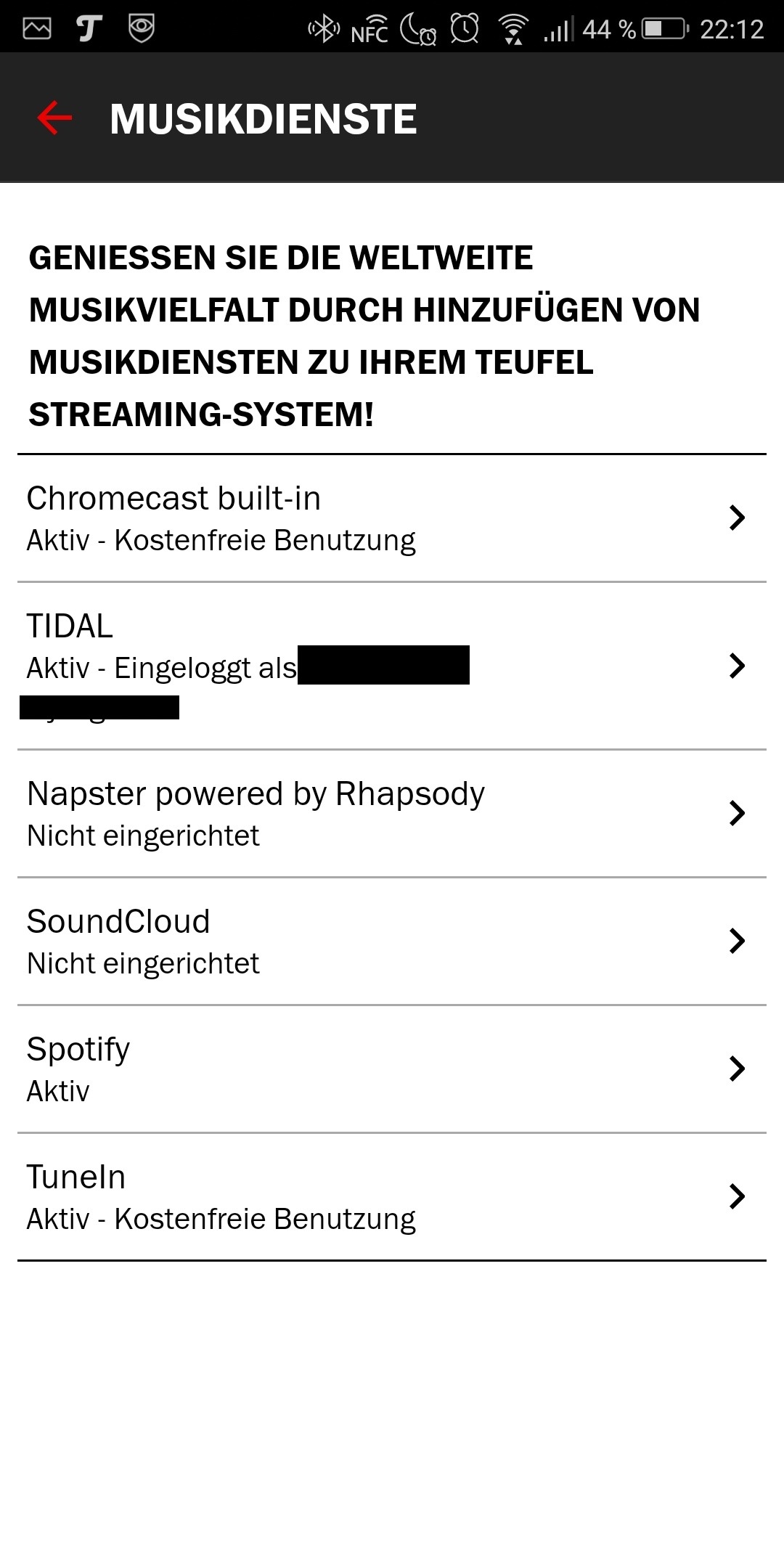 Neben den Lautsprechern richtet man über die App auch die Audio-Dienste ein. Dazu gehören lokale Daten, die am Host angeschlossen sind, Daten auf Netzwerk-Freigaben oder Streaming-Dienste.