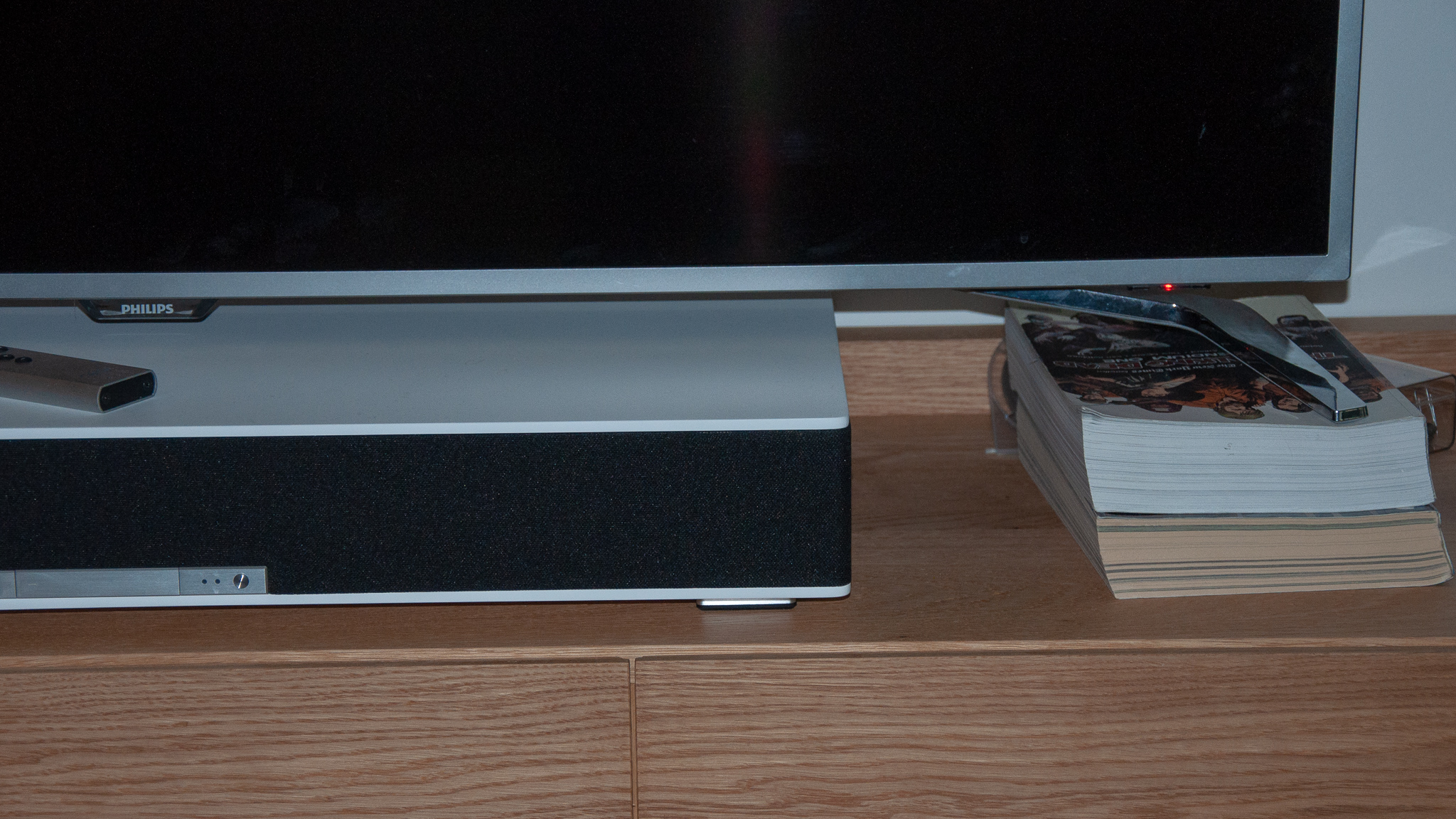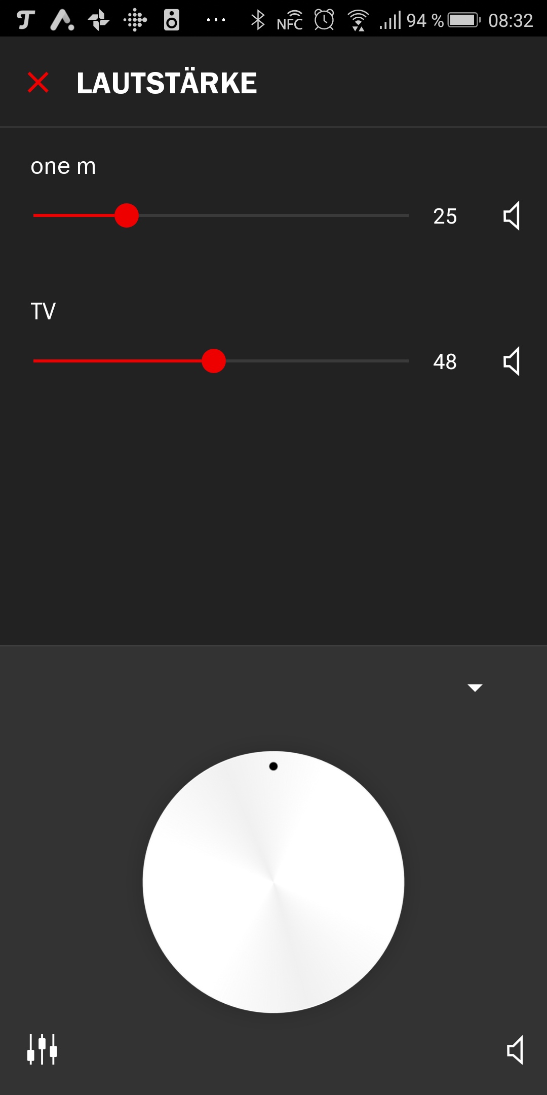 Tatsächlich haben die Produkte fast zu viel Leistung. Ein Raumfeld-System bestehend aus Teufel Stereo M und Teufel One M beschallt unser Testwohnzimmer mit knapp 42 qm locker mit einem Drittel der maximal möglichen Lautstärke. Ab der Hälfte wird es sogar zu laut. Die Lautstärke lässt sich bequem direkt an den Geräten regeln. Die Lautsprecher haben dazu einen Drehknopf, das Sounddeck hat eine Wippe sowie eine Fernbedienung.