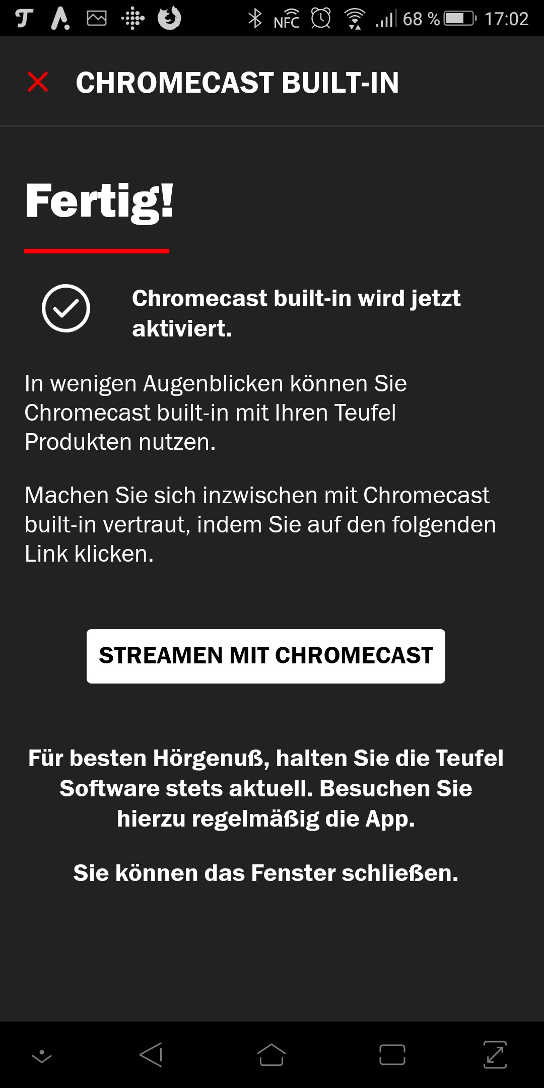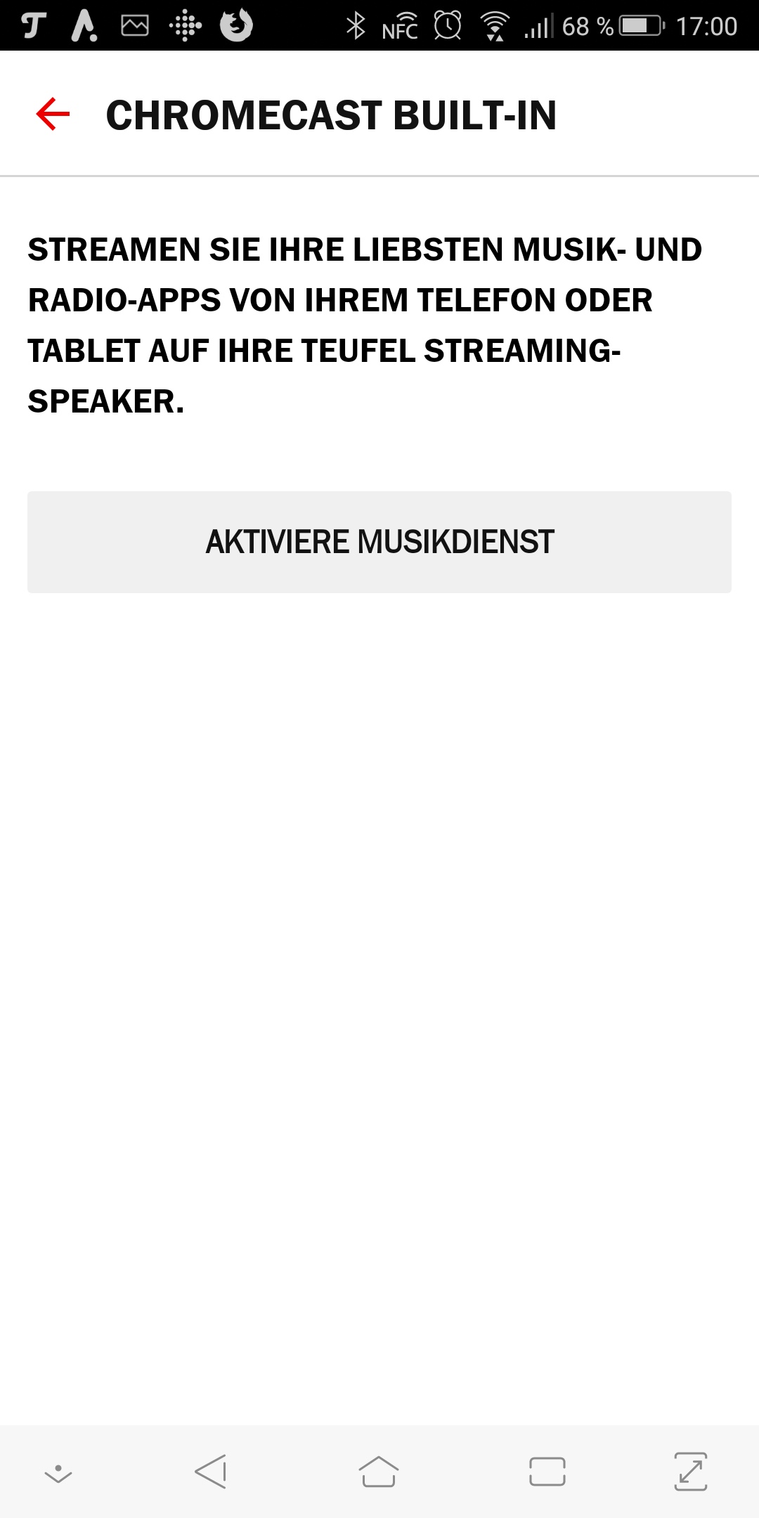 Kurz gesagt: Teufel spielt alle wichtigen Quellen ab. Lokal lassen sich Musikdateien von einem DLNA-Server oder einem USB-Speicher abspielen. Die USB-Geräte müssen aber am Host-System angesteckt sein, dann stehen die Inhalte auf allen anderen Lautsprechern ebenfalls zur Verfügung. Mit Ausnahme von Sounddeck und Soundbar Streaming beherrschen die Geräte Bluetooth, so dass man Songs vom Smartphone oder Tablet wiedergeben kann. Sounddeck, Soundbar Streaming, der Connector und die X-Rosenthal-Produkte sind zu Chromecast kompatibel.