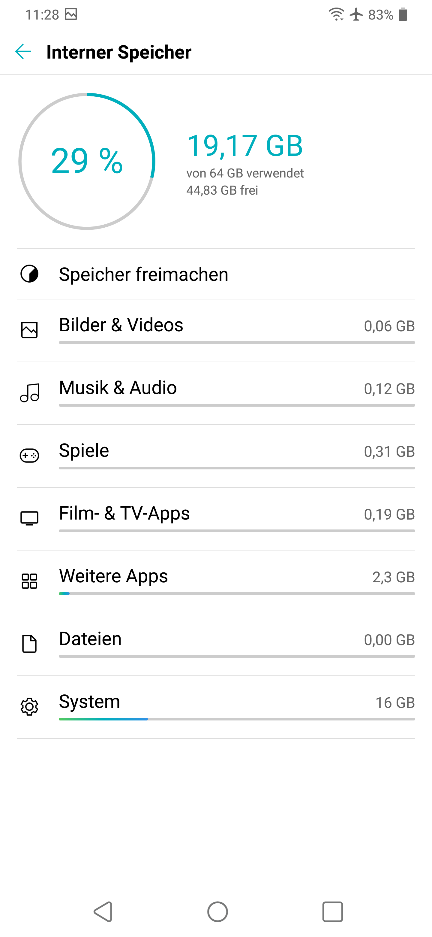 Der interne Speicher des LG G7 Thinq hat eine Größe von 64 GByte. Nach Formatierung bleiben 46 GByte übrig. Nach Abzug der Firmware und den bereits vorinstallierten Apps hat der Nutzer Zugriff auf verbleibende 41 GByte. Neben der Nano-SIM-Karte speist das LG-Smartphone auch eine Micro-SD-Karte ein, so lässt sich bei Bedarf der Speicher um ein Vielfaches erweitern. Eine im Test verwendete Micro-SDXC mit 400 GByte funktionierte einwandfrei. Welche Speicherkarte die beste für Android ist, hat TechStage ausführlich getestet: Kaufberatung & Test: Welche Micro-SD-Karte für Android?