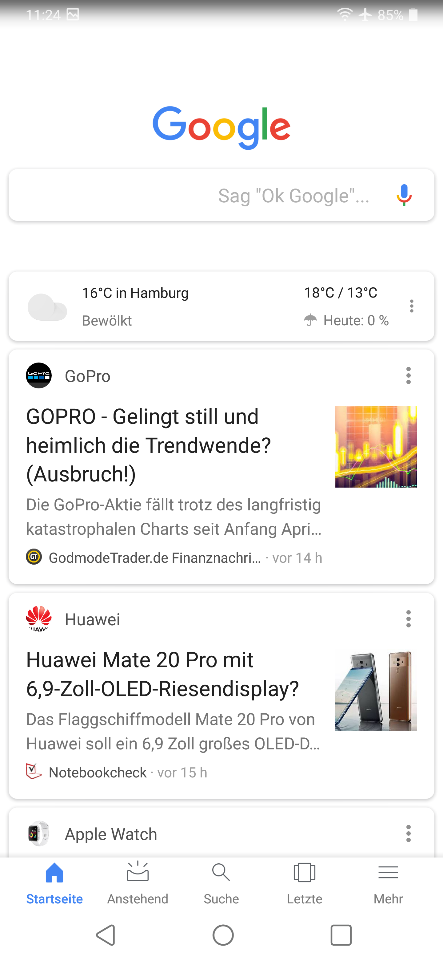 Beim G7 Thinq bringt LG eine kleine Besonderheit: Auf der linken Seite des Telefons sitzt eine gesonderte Taste für den Google Assistant. Der einmalige und kurze Druck bringt die Oberfläche zum Vorschein und initiiert den Assistent. Dieser lauscht auf Anfragen wie: „Wie ist das Wetter heute?“ oder „Wie schaut mein Kalender aus?“ . Ein schneller und doppelter Druck startet Google Lens, den Dienst für Bild- und Objekterkennung mittels Googles künstlicher Intelligenz.