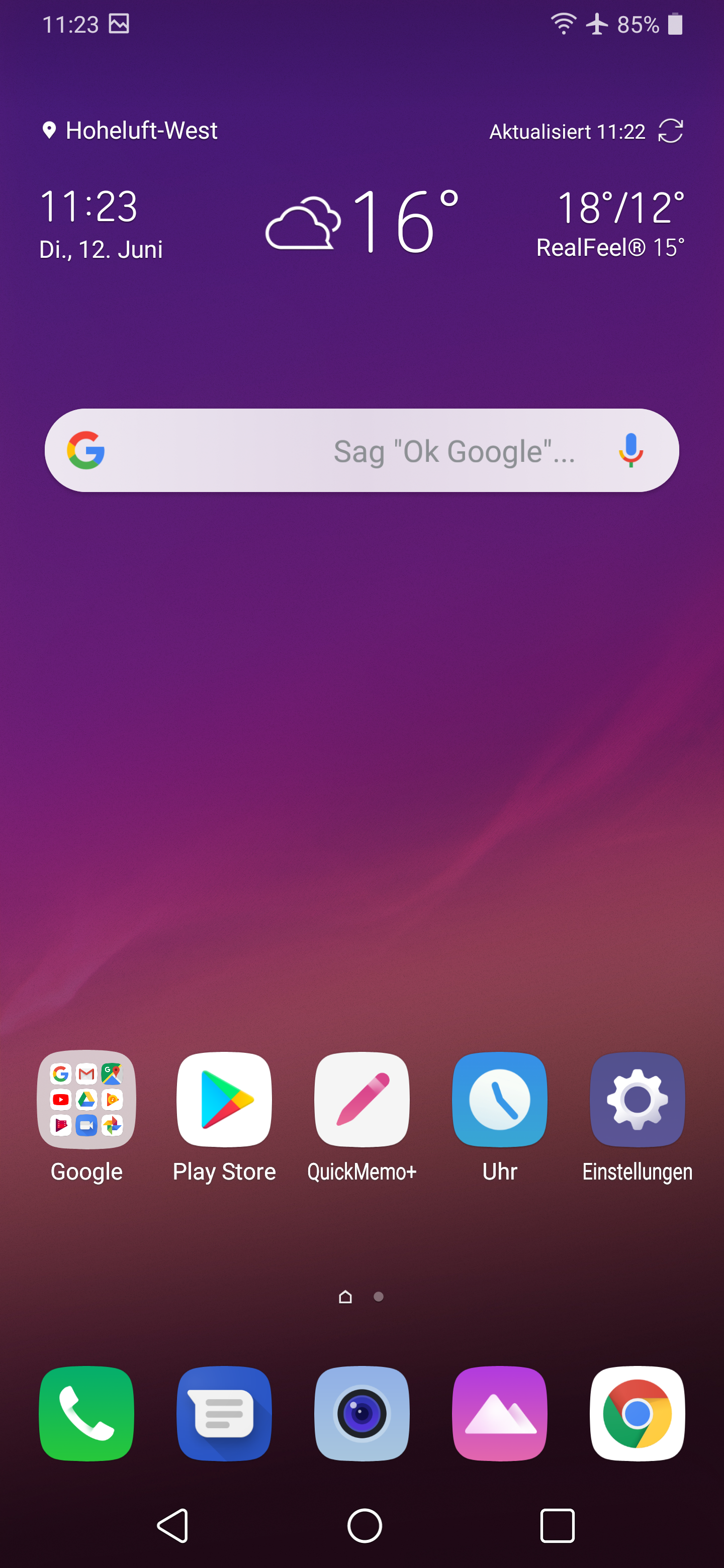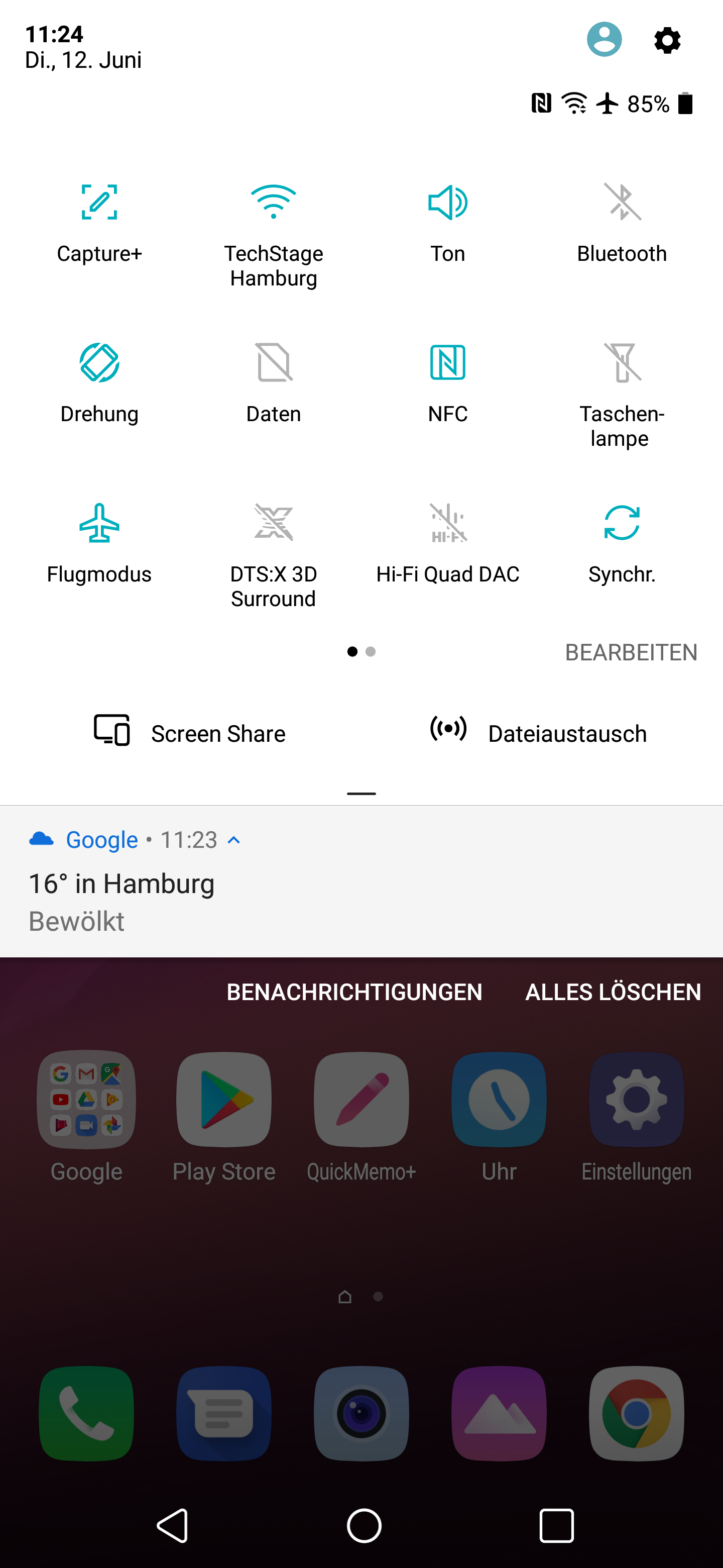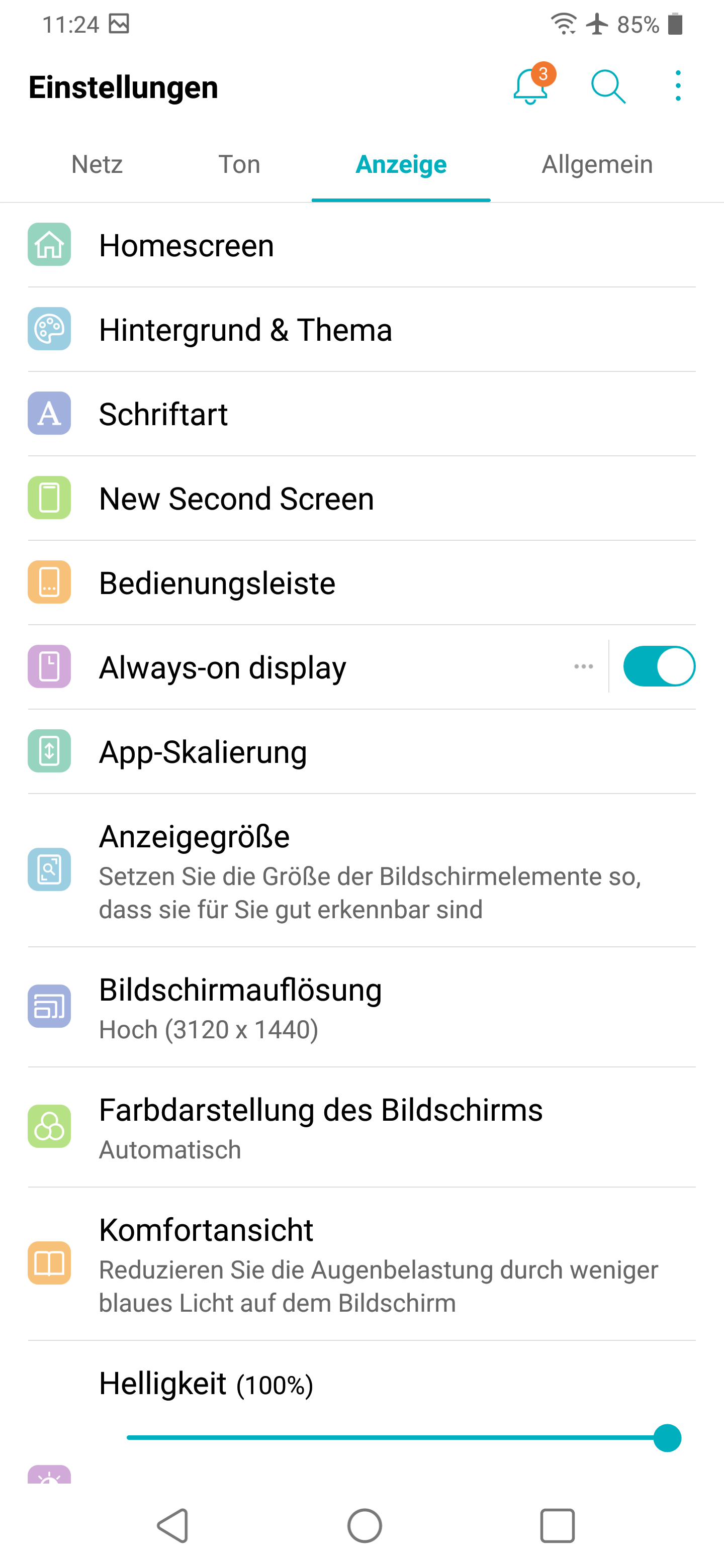 Eine weitere Besonderheit hat das Display des LG G7 Thinq auch noch: es ist unglaublich hell. Schon im Normalzustand (mittlere Helligkeit durch Automatik geregelt) leuchten die Pixel auf und sind heller, als die Maximal-Einstellung mancher Mittelklasse-Smartphones. Die 100-prozentige Helligkeit ist bei ausgeschaltetem Zimmerlicht zu hoch für die Augen. Wem es aber nicht reicht, der aktiviert zusätzlich noch einen sogenannten Verstärker in den Kurzeinstellungen. Dadurch gewinnt das Display an Helligkeit und leuchtet mit einer Lichtstärke von bis 950 Candela pro Quadratmeter. Üblich bei High-End-Smartphones sind es 700 bis 750 c/m2.