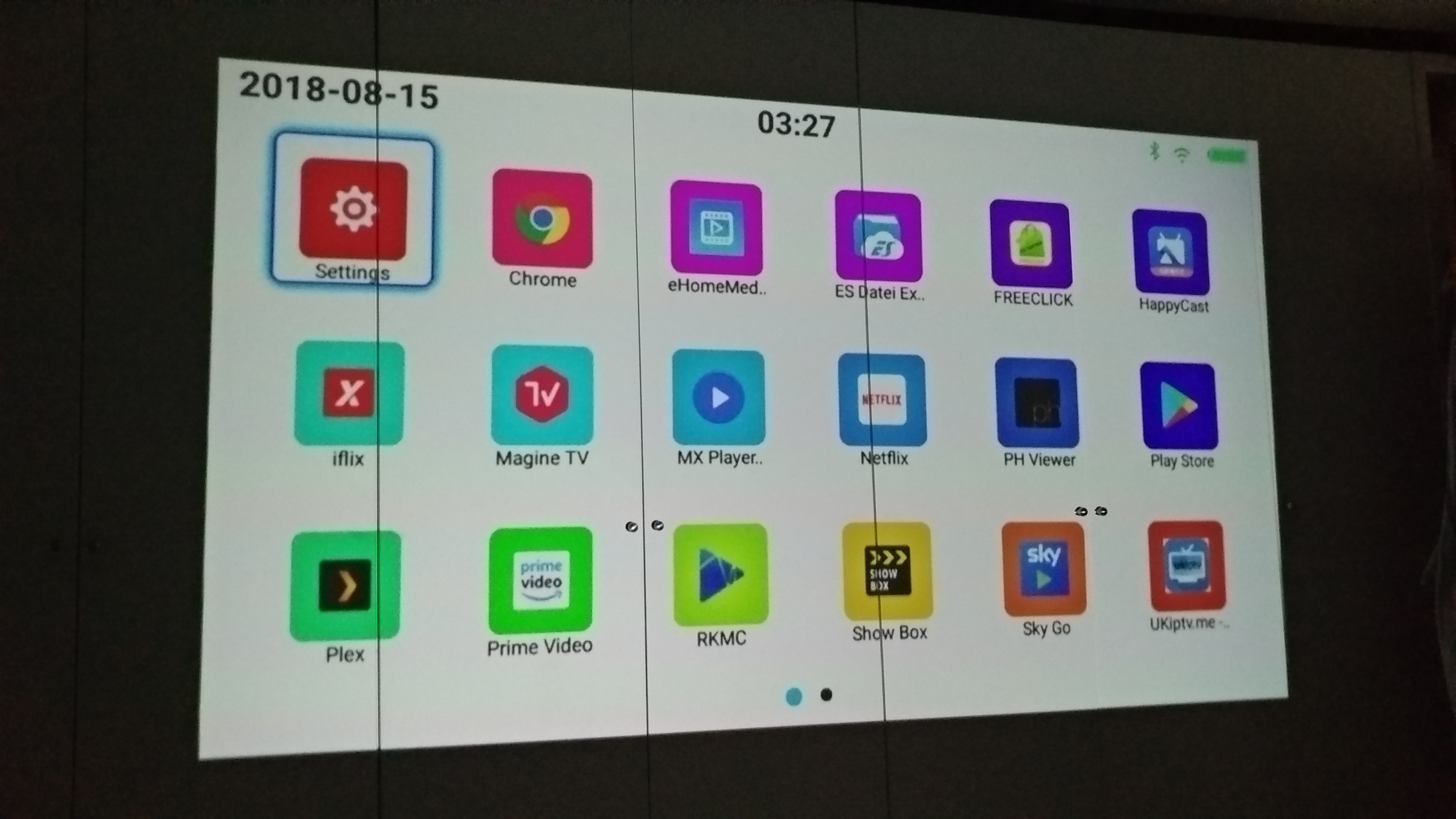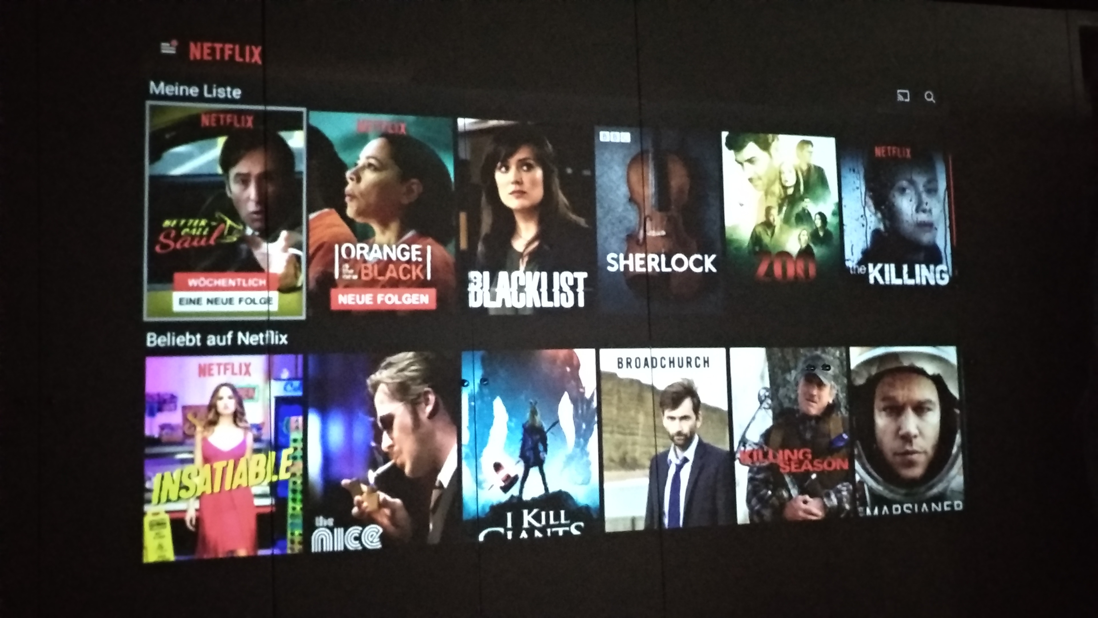 Alles in allem geht die Bedienung des Toumei C800S per Fernbedienung recht gut von der Hand. Im Test nutzten wir unter anderem die gängigsten Android-Apps in Sachen Streaming (Netflix, Amazon Prime, Plex und Magine TV), außerdem ließen wir Medien von Micro-SD-Karte und USB-Stick abspielen und schickten Filme vom Laptop über HDMI auf den Beamer.