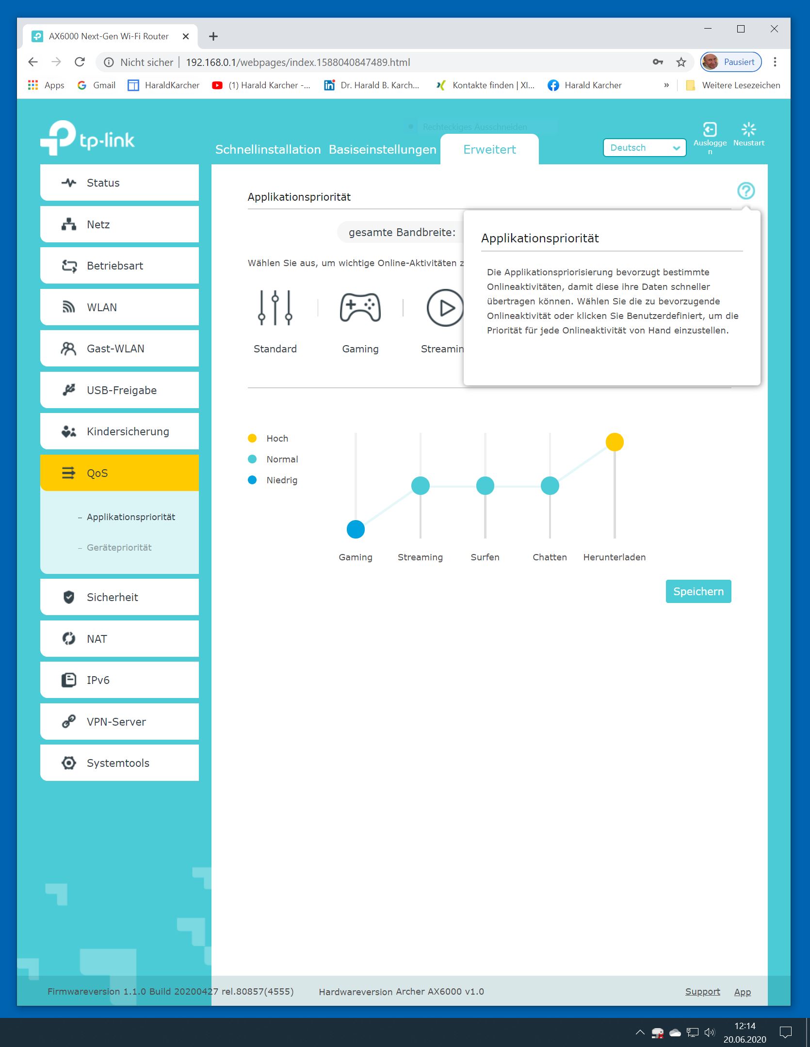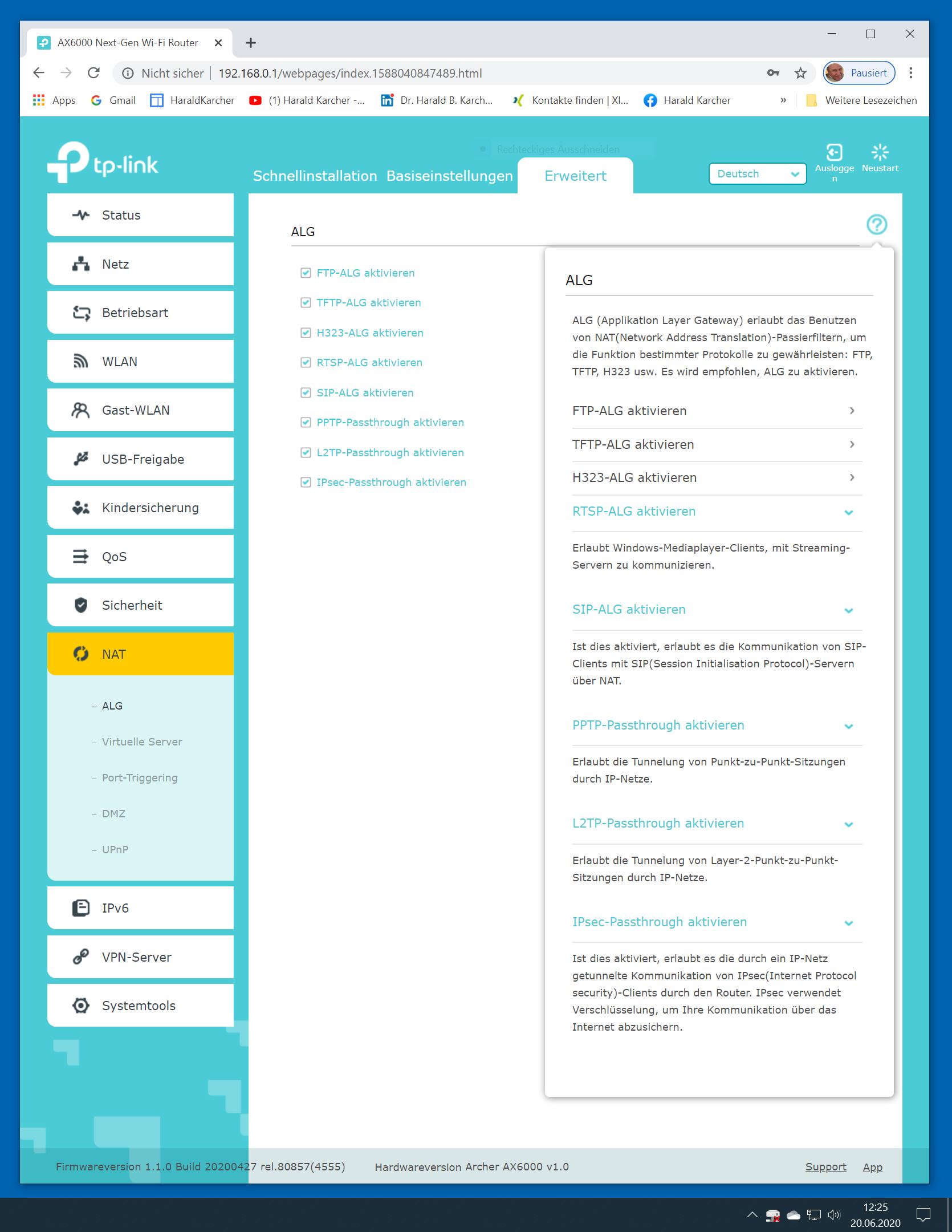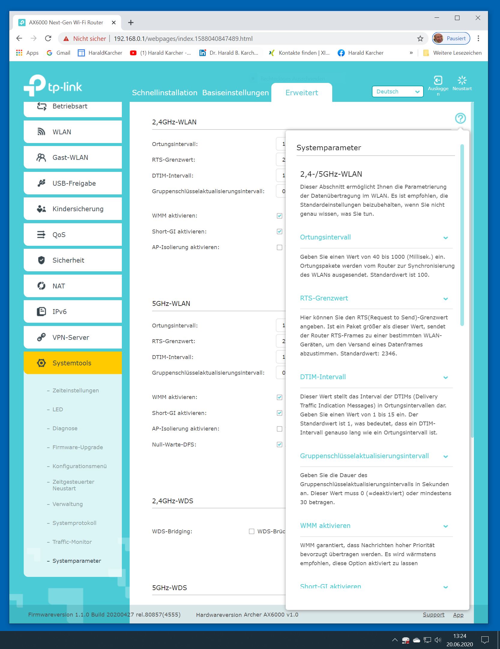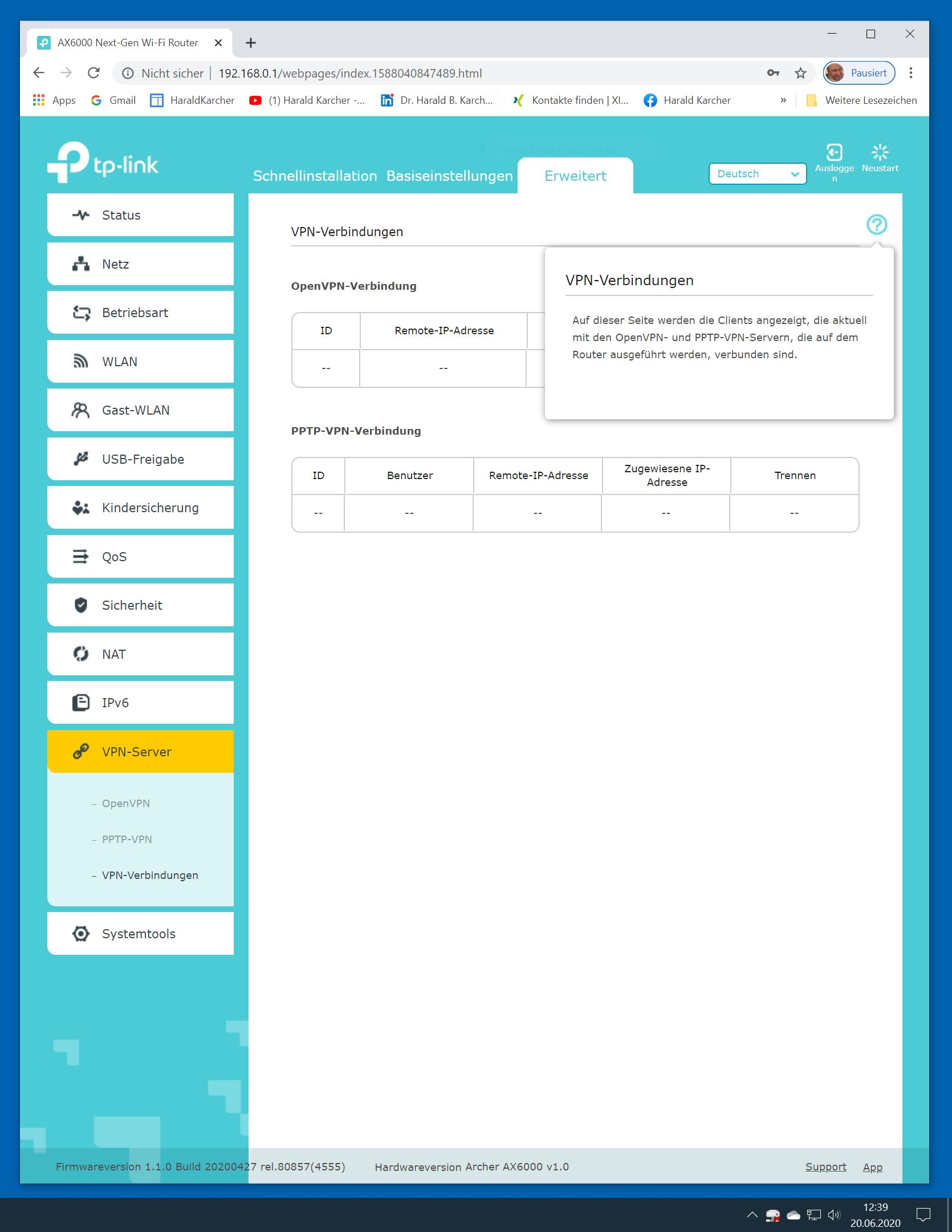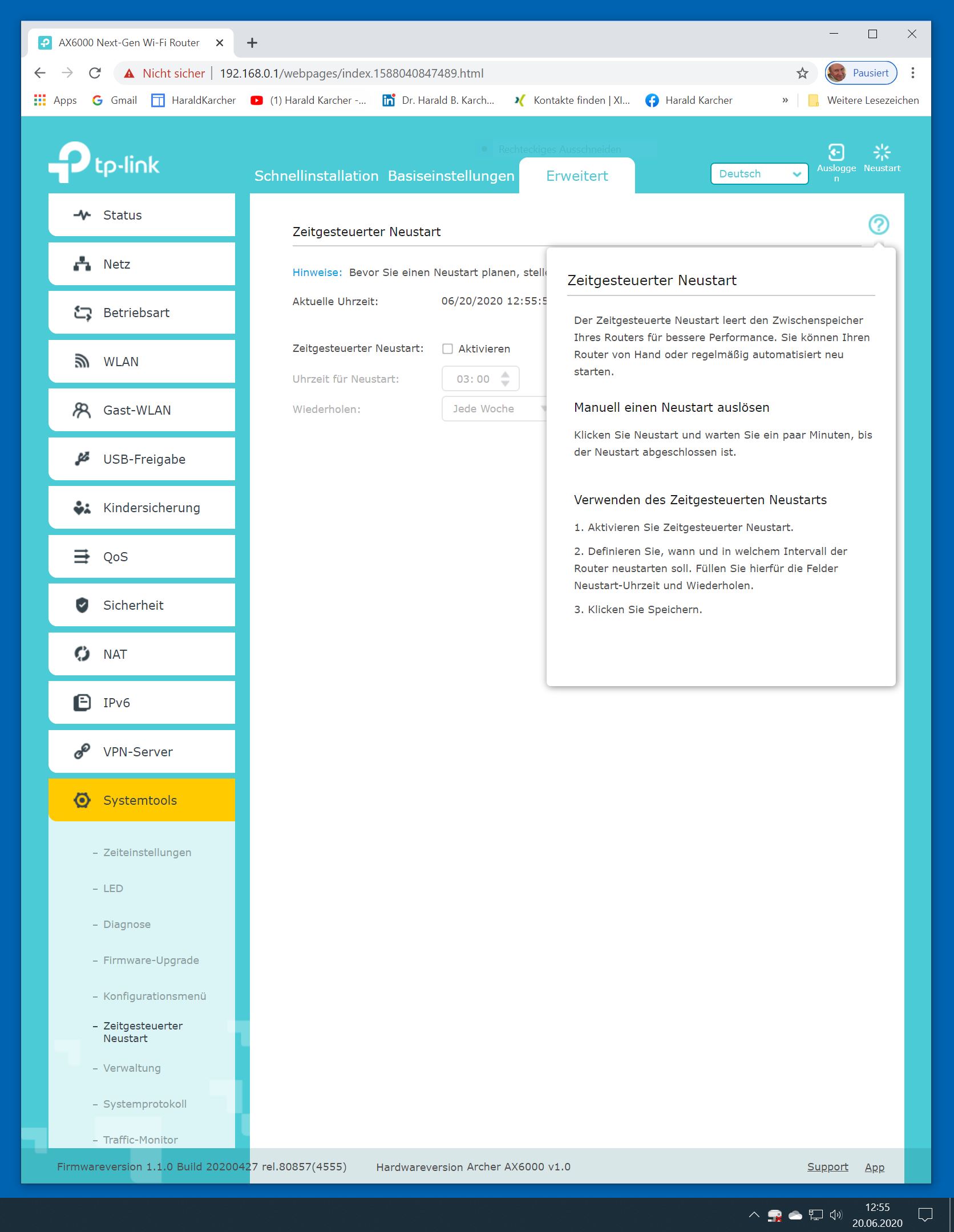 Der TP-Link Router Archer AX6000 lässt sich per Browser am Rechner oder per App am Smartphone einrichten. Via Browser stehen mehr Funktionen zur Verfügung als per Handy-App. Wir dokumentieren hier nur die Browser-Version. Über die aktuelle IP oder die URL http://tplinkwifi.net landen wir in der Konfiguration des Routers. Nach Umstellung von Englisch auf Deutsch bot er folgende Optionen: