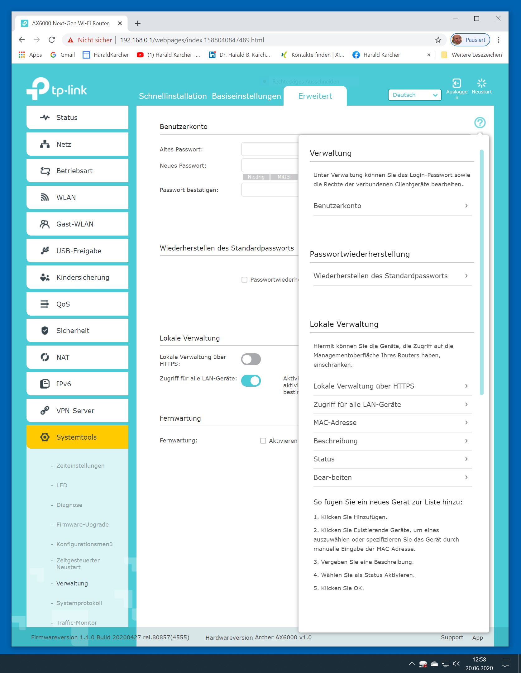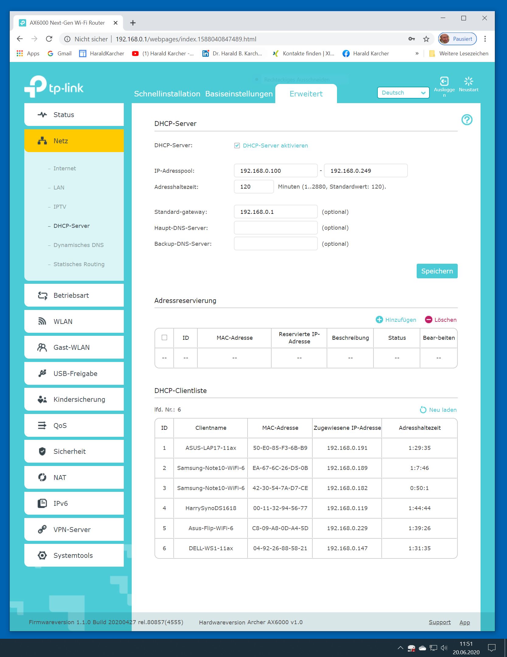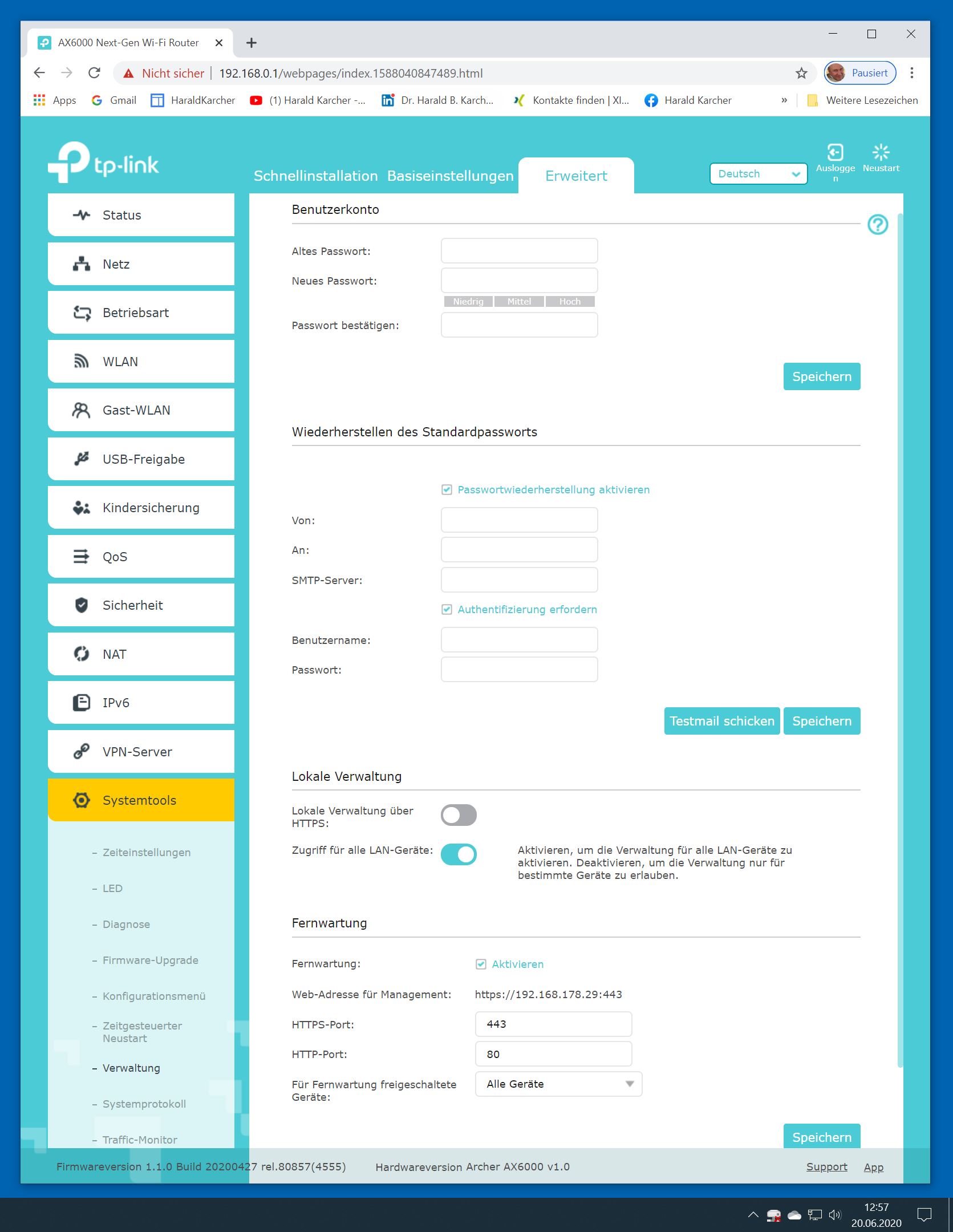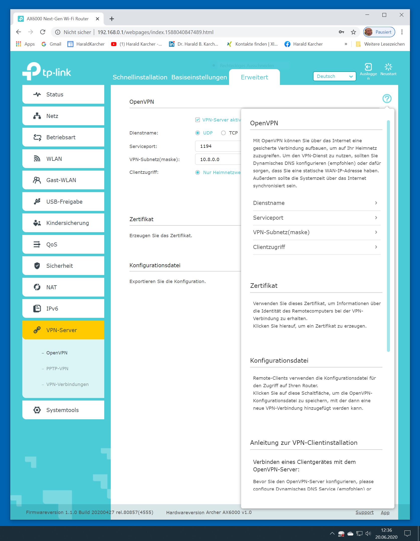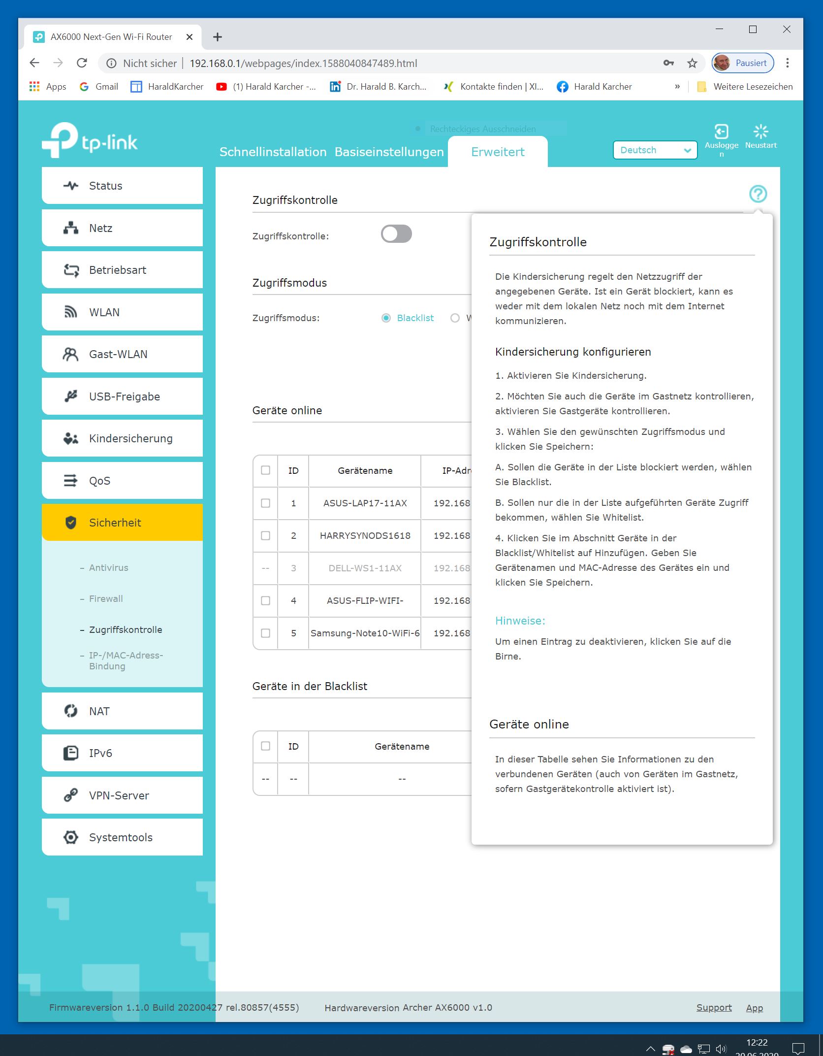 Der TP-Link Router Archer AX6000 lässt sich per Browser am Rechner oder per App am Smartphone einrichten. Via Browser stehen mehr Funktionen zur Verfügung als per Handy-App. Wir dokumentieren hier nur die Browser-Version. Über die aktuelle IP oder die URL http://tplinkwifi.net landen wir in der Konfiguration des Routers. Nach Umstellung von Englisch auf Deutsch bot er folgende Optionen: