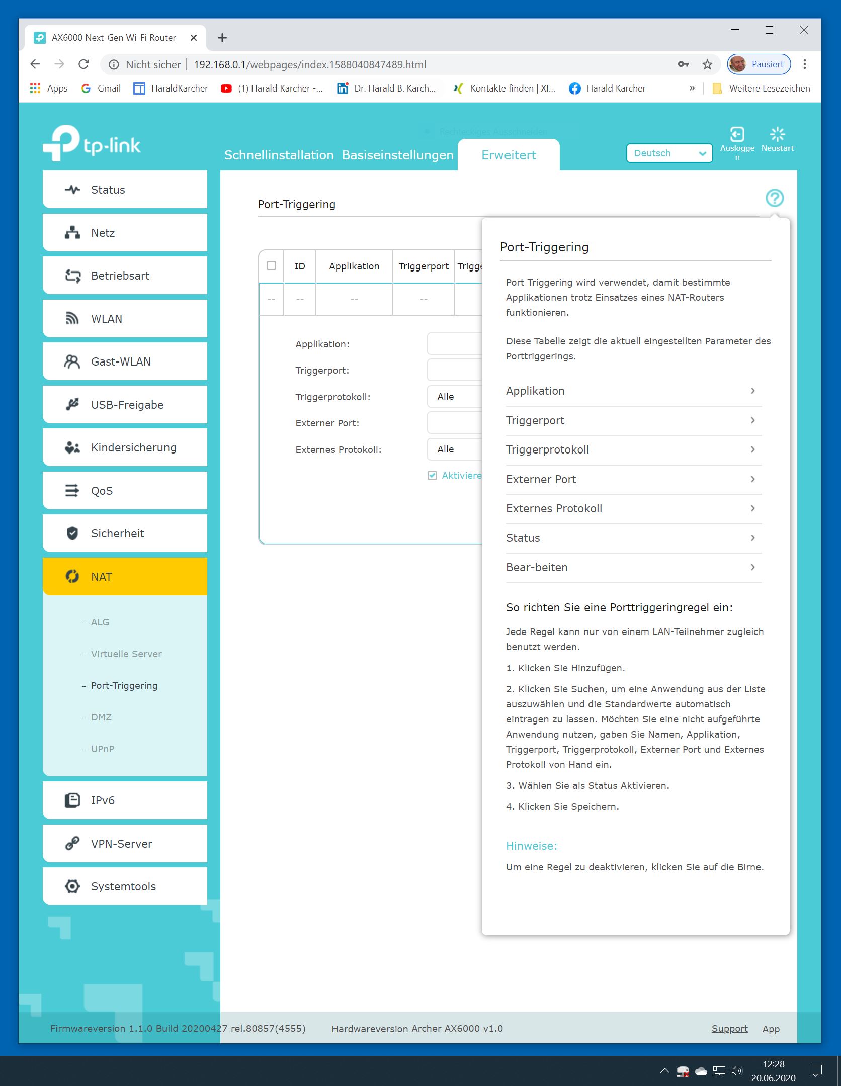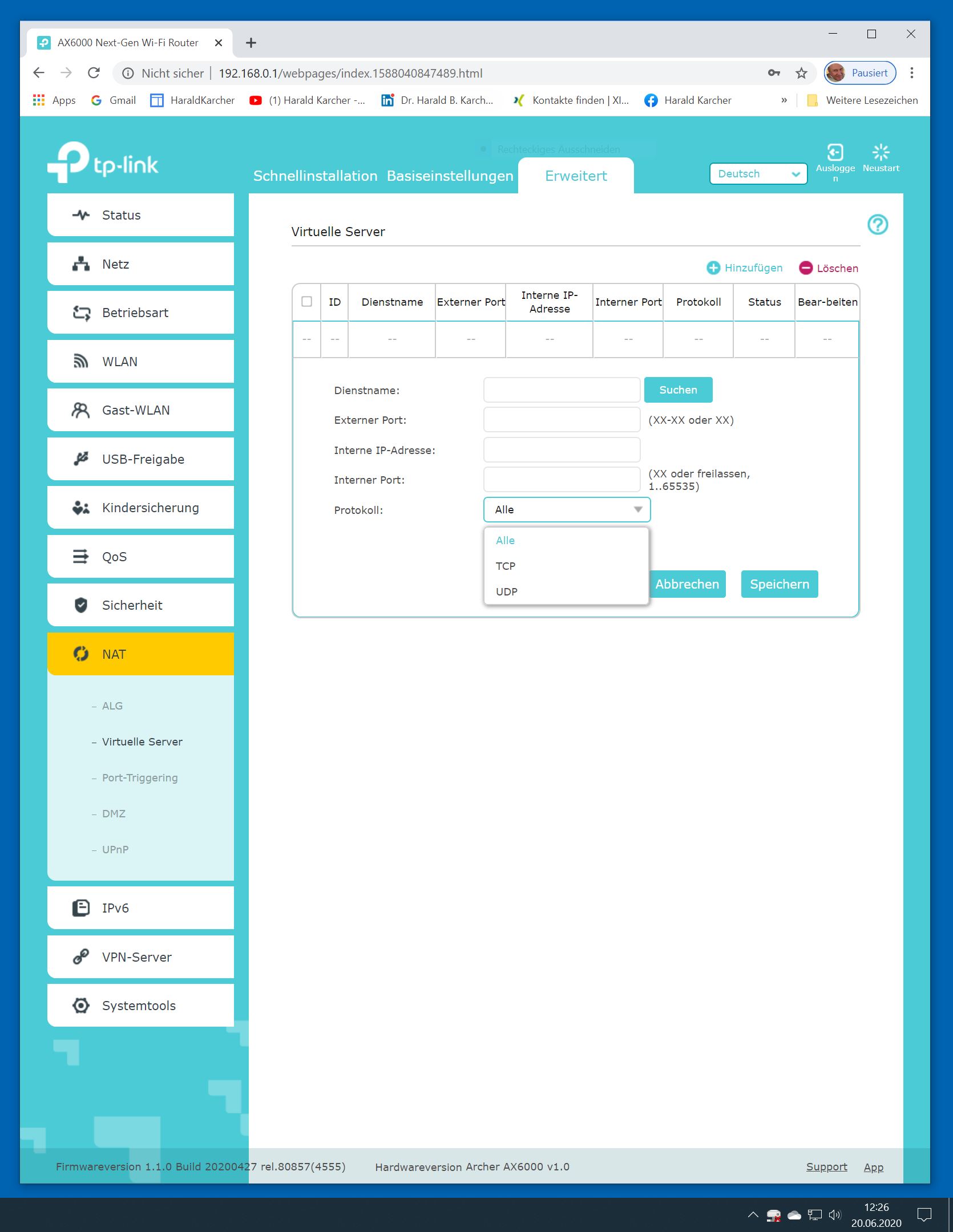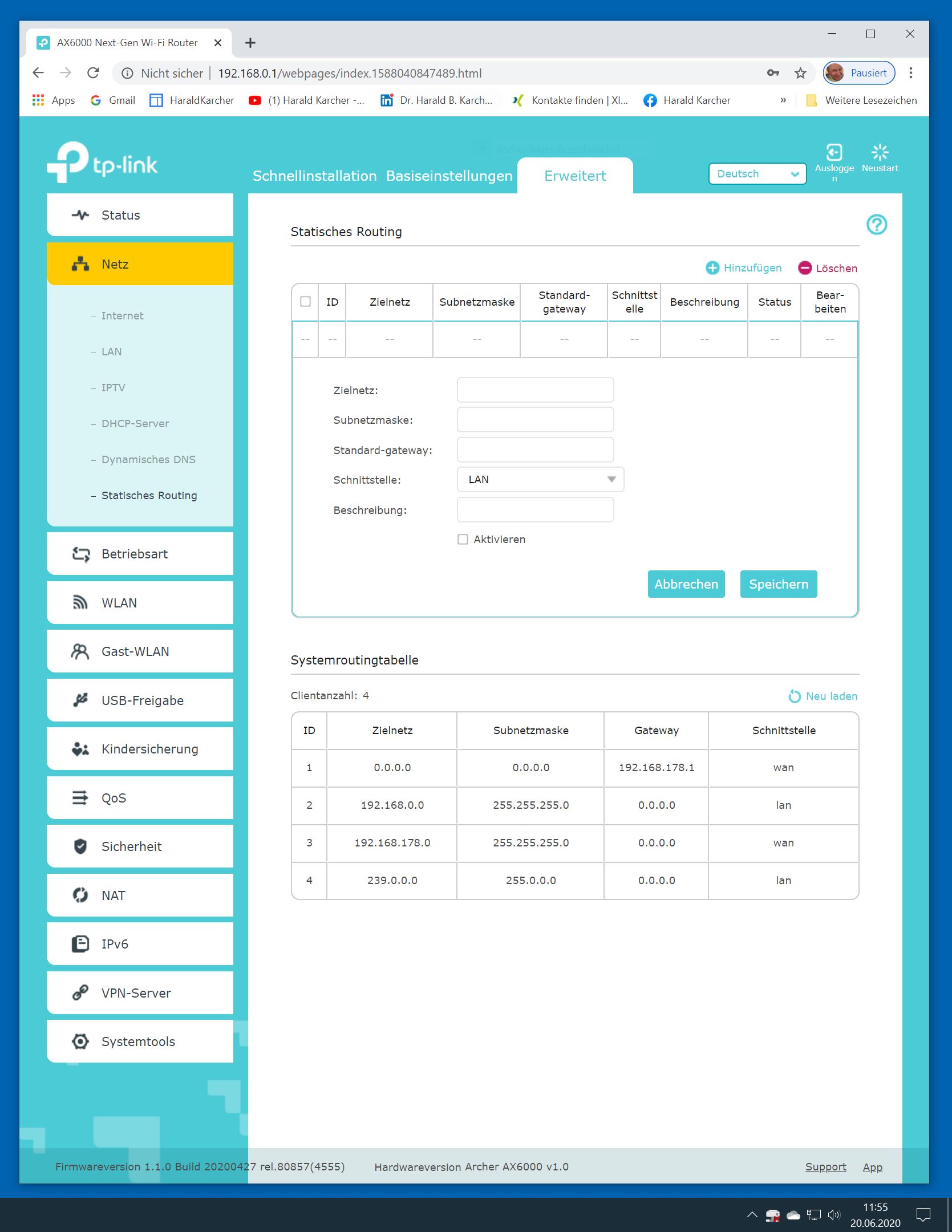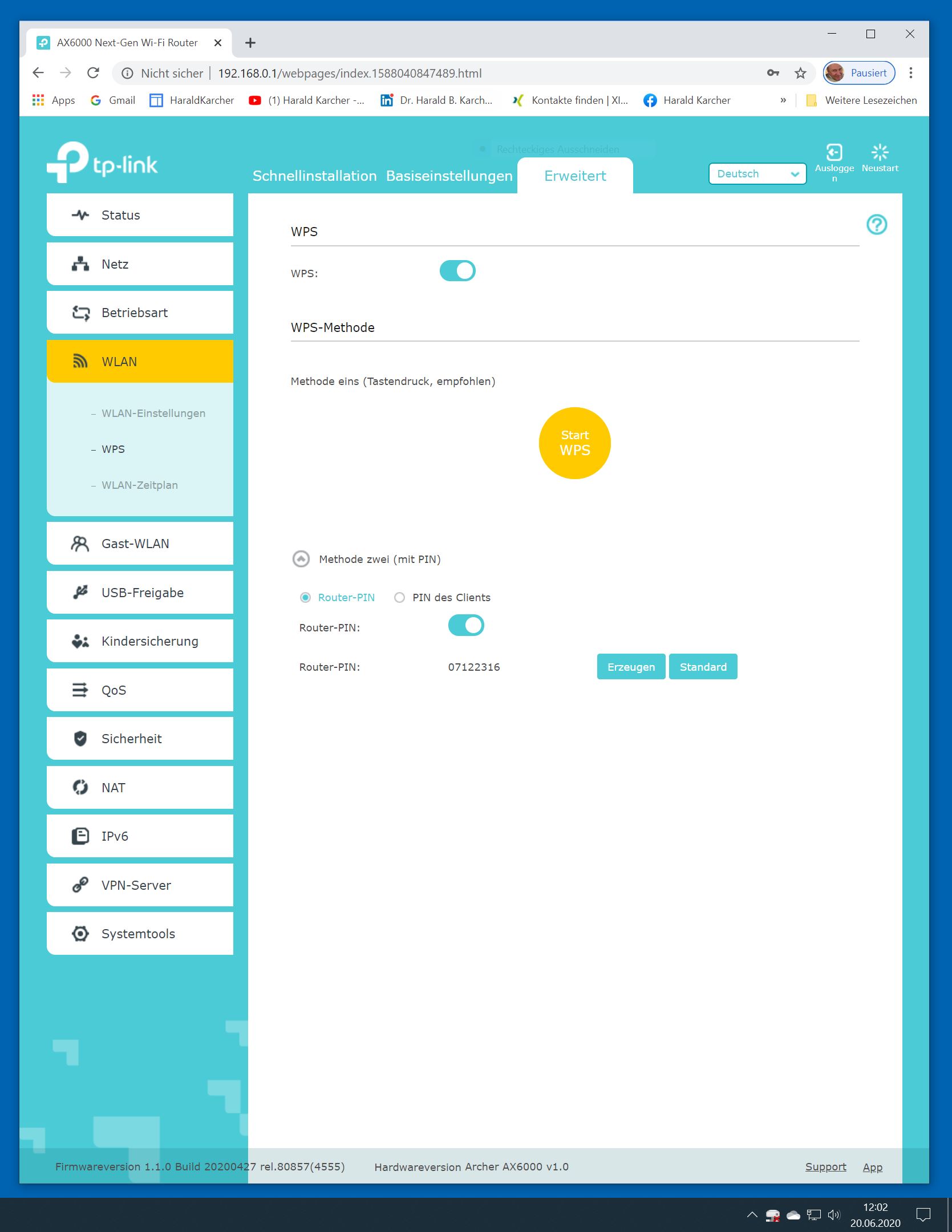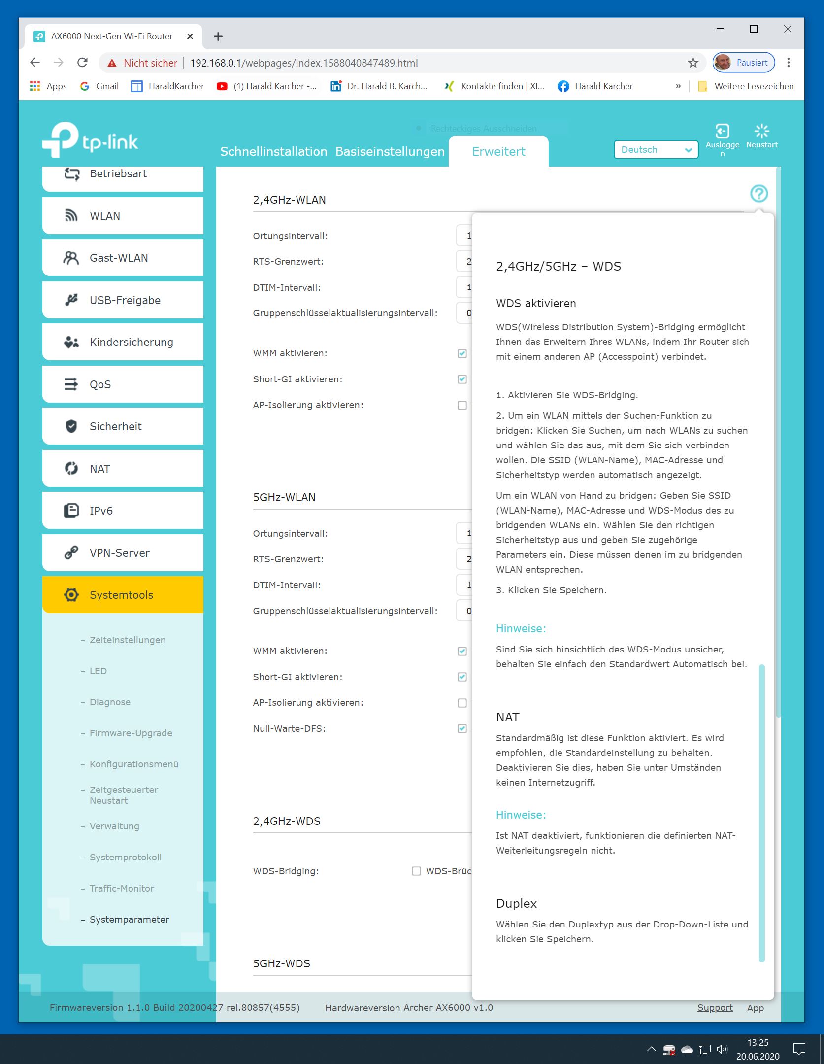 Der TP-Link Router Archer AX6000 lässt sich per Browser am Rechner oder per App am Smartphone einrichten. Via Browser stehen mehr Funktionen zur Verfügung als per Handy-App. Wir dokumentieren hier nur die Browser-Version. Über die aktuelle IP oder die URL http://tplinkwifi.net landen wir in der Konfiguration des Routers. Nach Umstellung von Englisch auf Deutsch bot er folgende Optionen:
