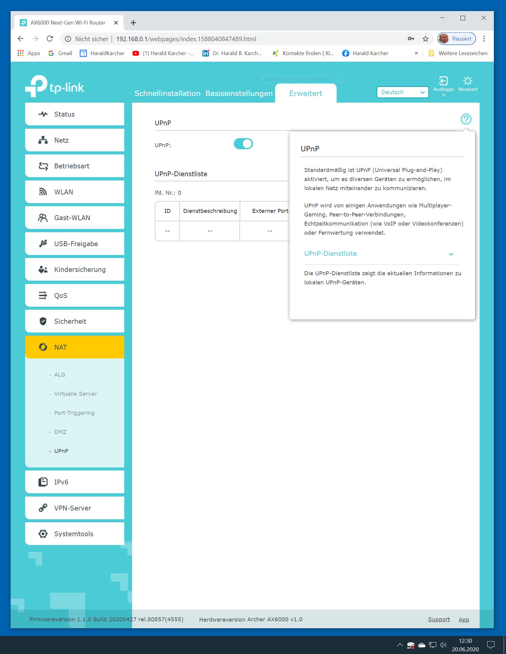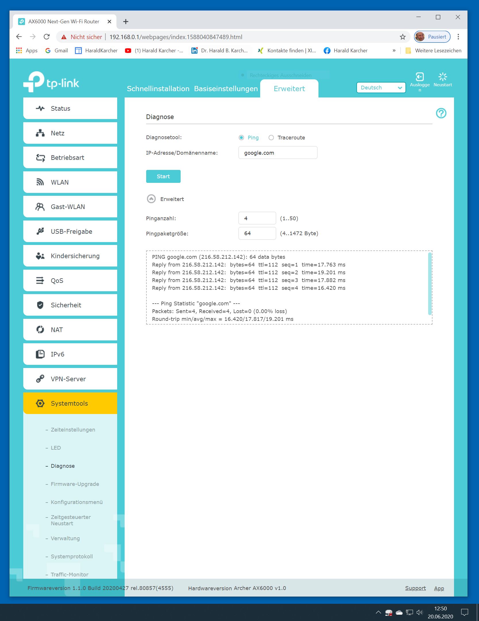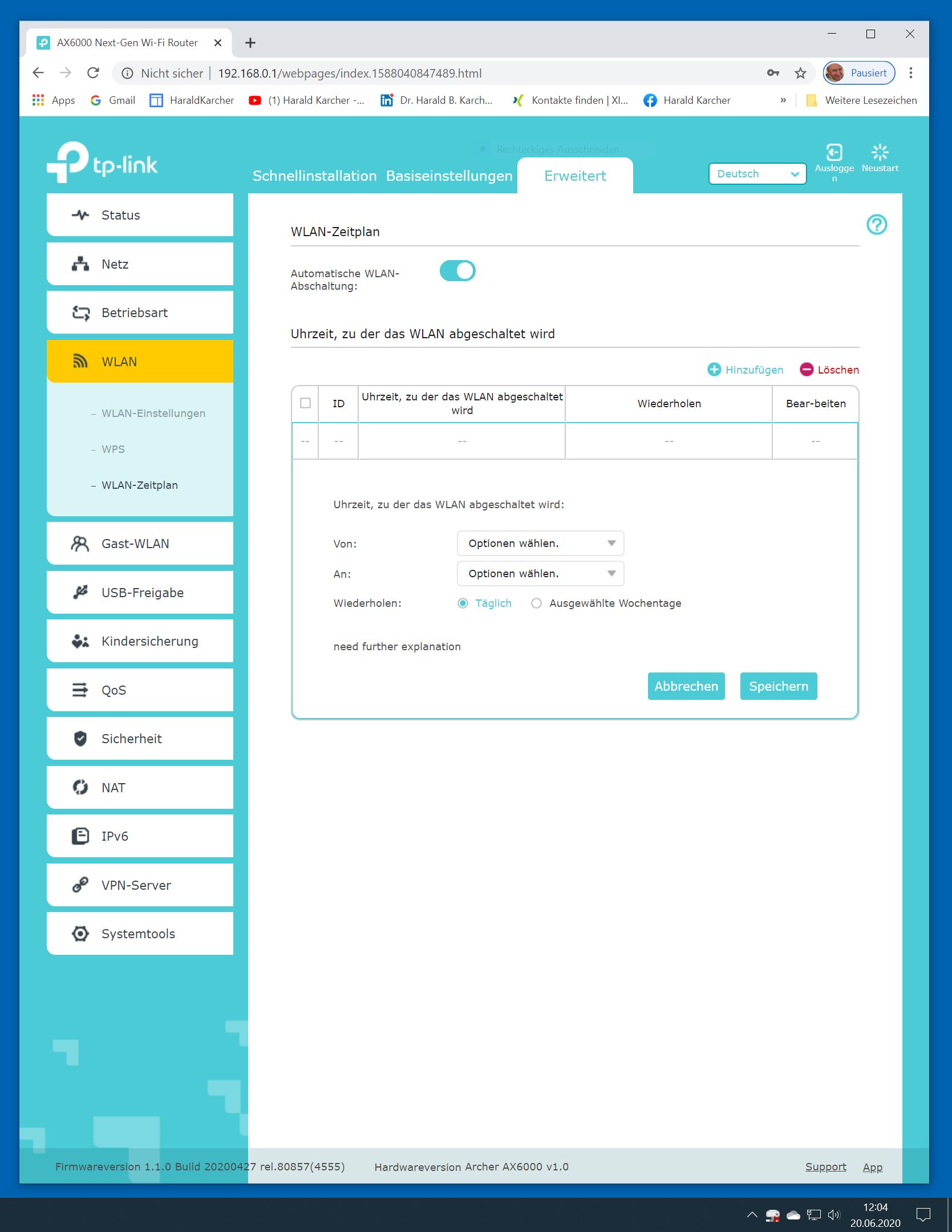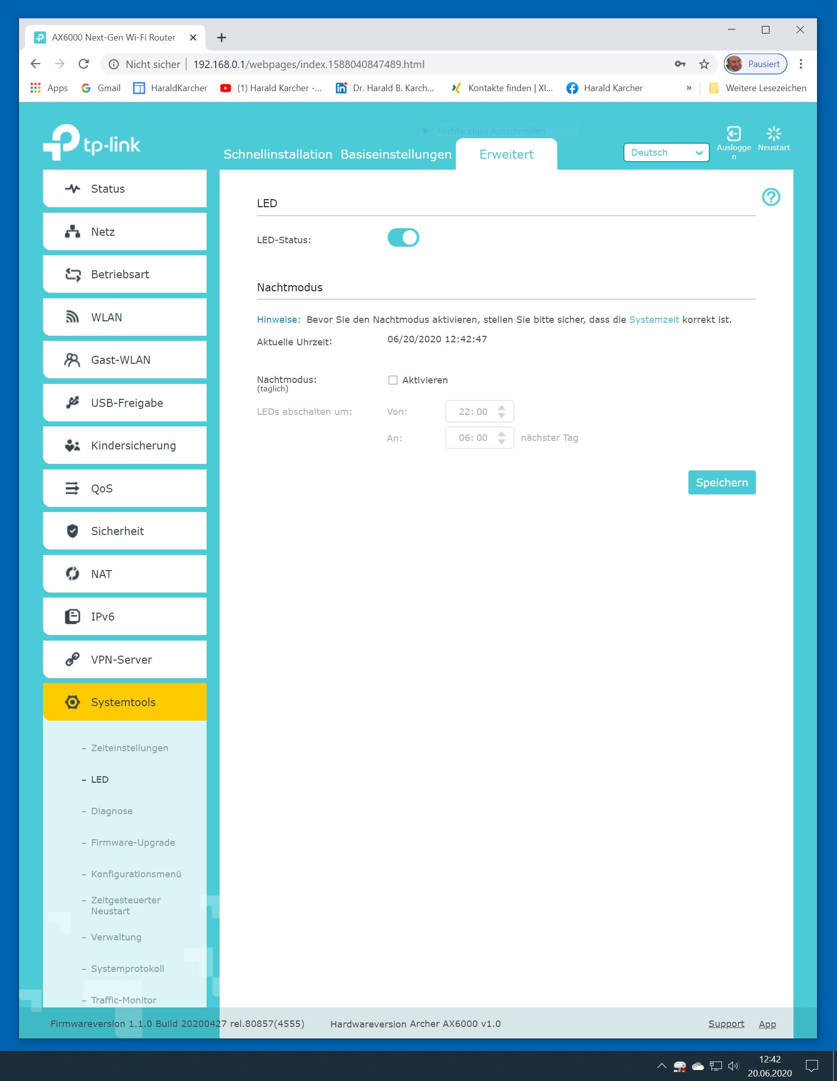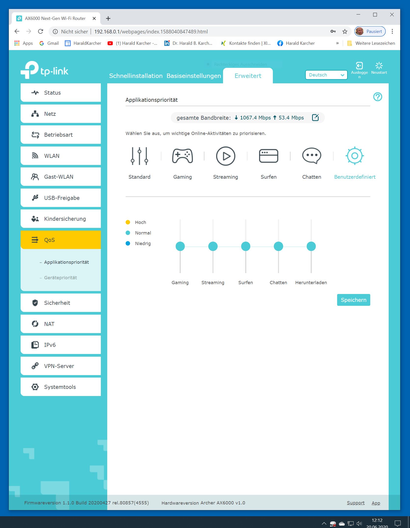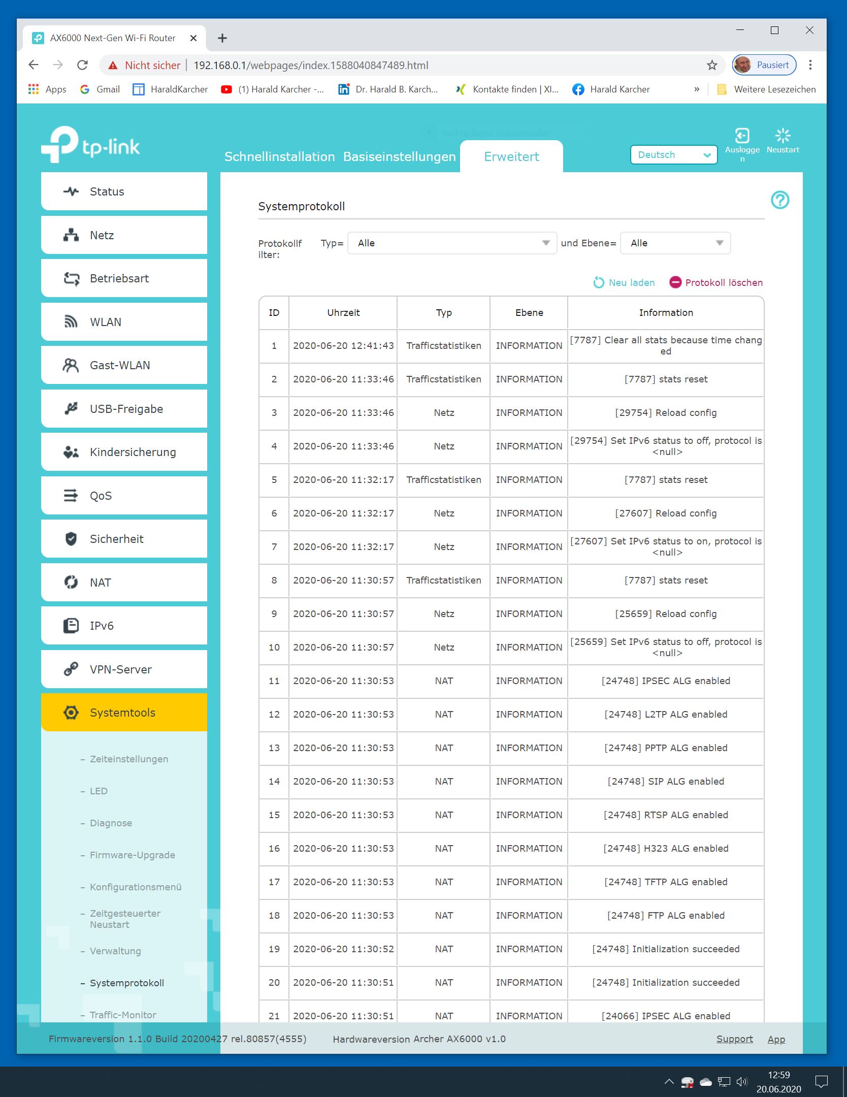 Der TP-Link Router Archer AX6000 lässt sich per Browser am Rechner oder per App am Smartphone einrichten. Via Browser stehen mehr Funktionen zur Verfügung als per Handy-App. Wir dokumentieren hier nur die Browser-Version. Über die aktuelle IP oder die URL http://tplinkwifi.net landen wir in der Konfiguration des Routers. Nach Umstellung von Englisch auf Deutsch bot er folgende Optionen: