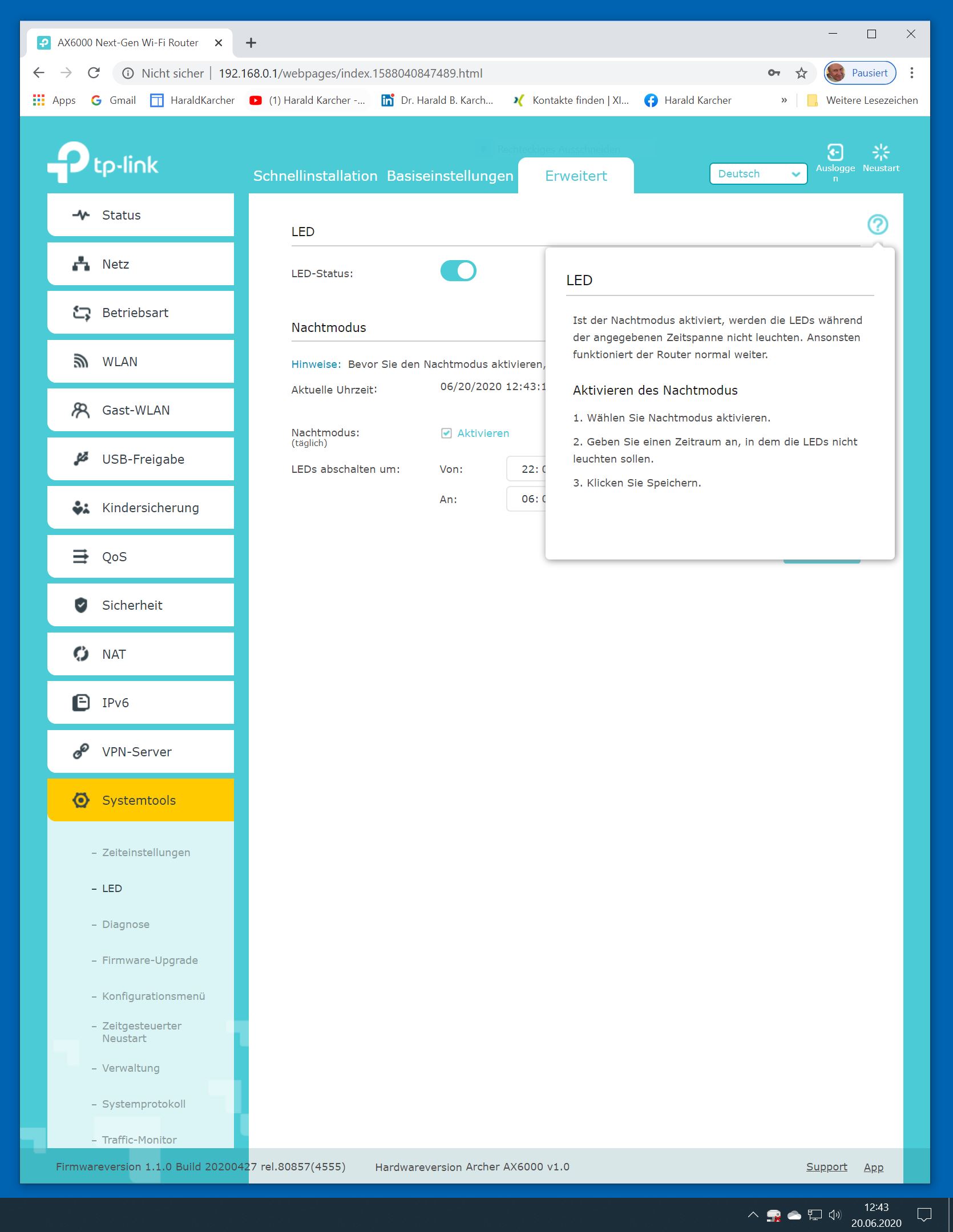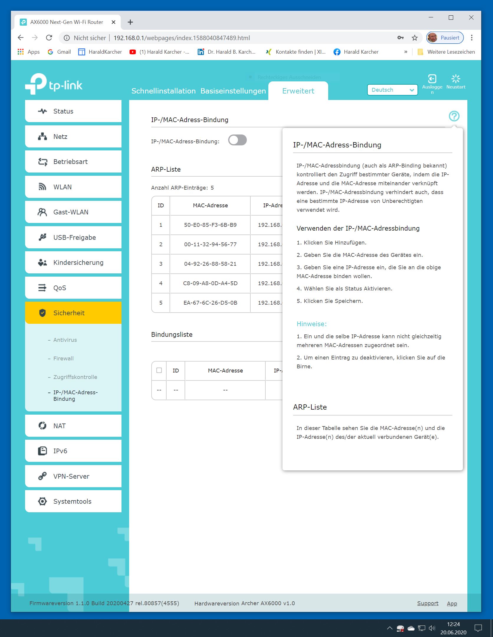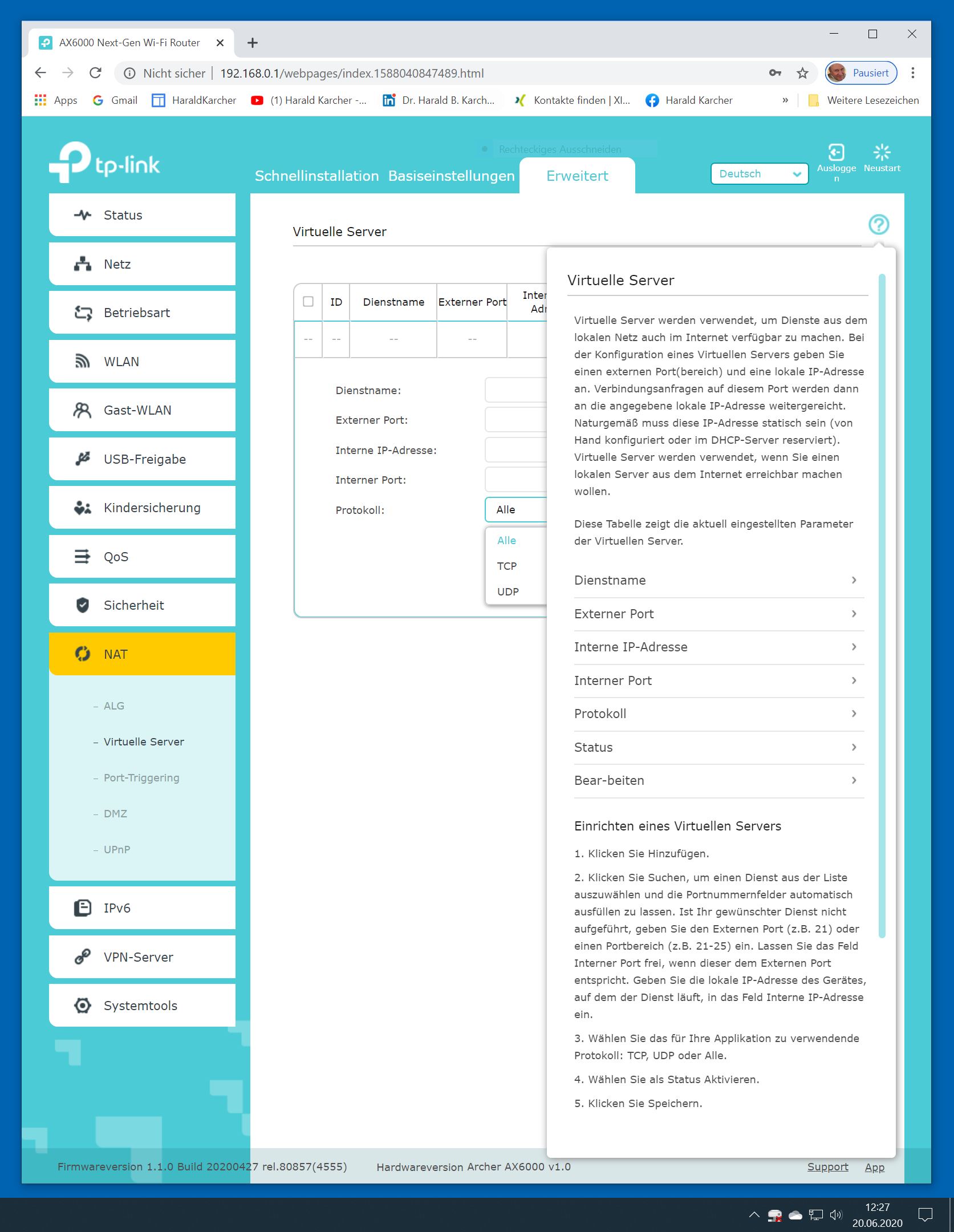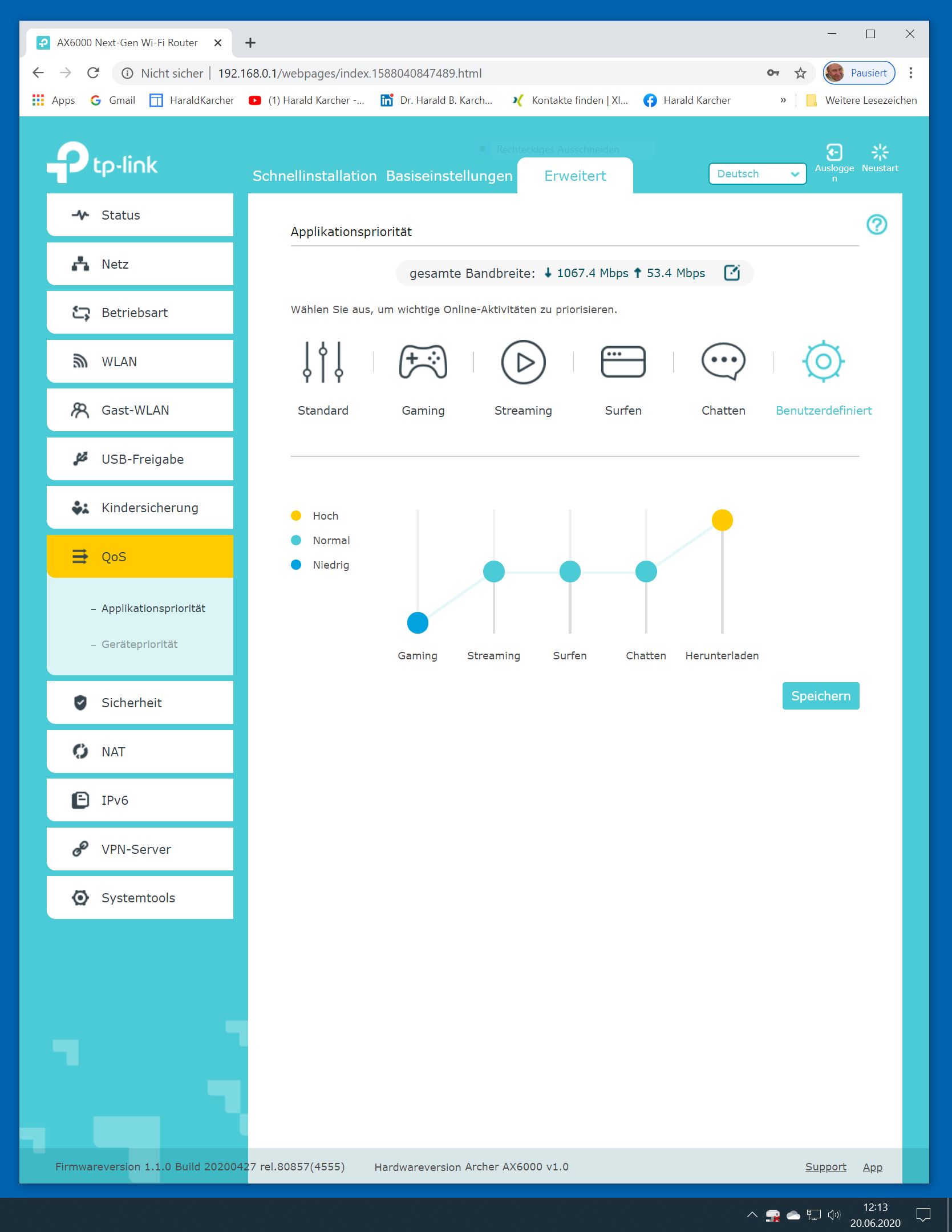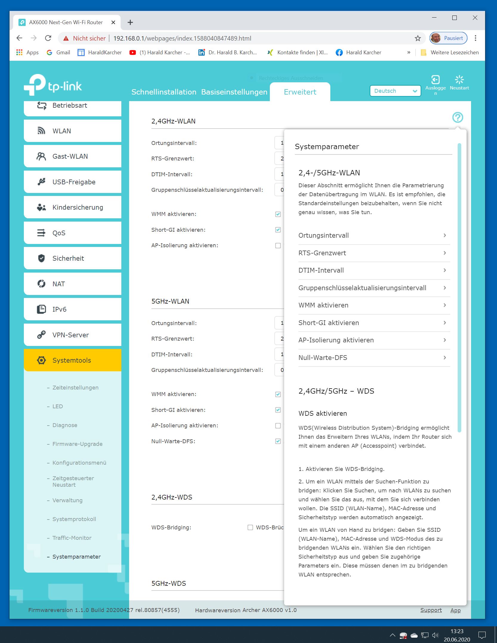 Der TP-Link Router Archer AX6000 lässt sich per Browser am Rechner oder per App am Smartphone einrichten. Via Browser stehen mehr Funktionen zur Verfügung als per Handy-App. Wir dokumentieren hier nur die Browser-Version. Über die aktuelle IP oder die URL http://tplinkwifi.net landen wir in der Konfiguration des Routers. Nach Umstellung von Englisch auf Deutsch bot er folgende Optionen:
