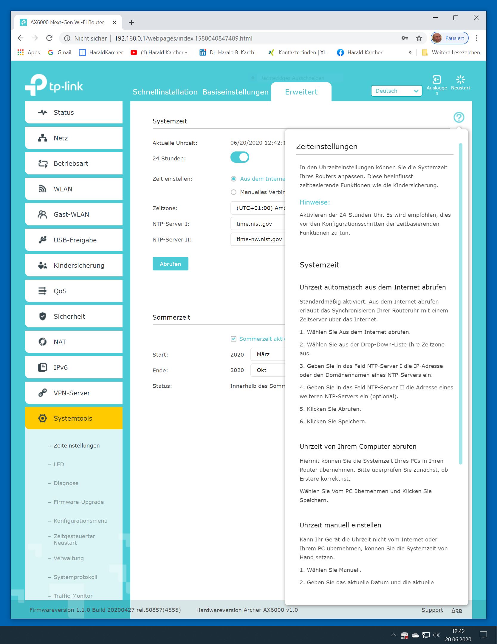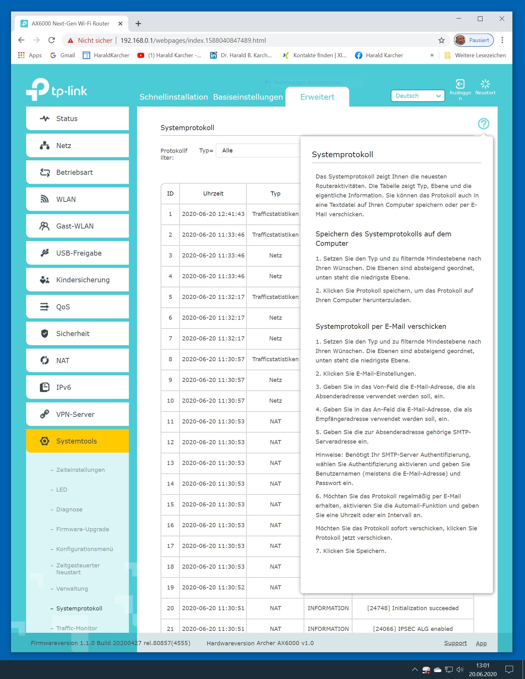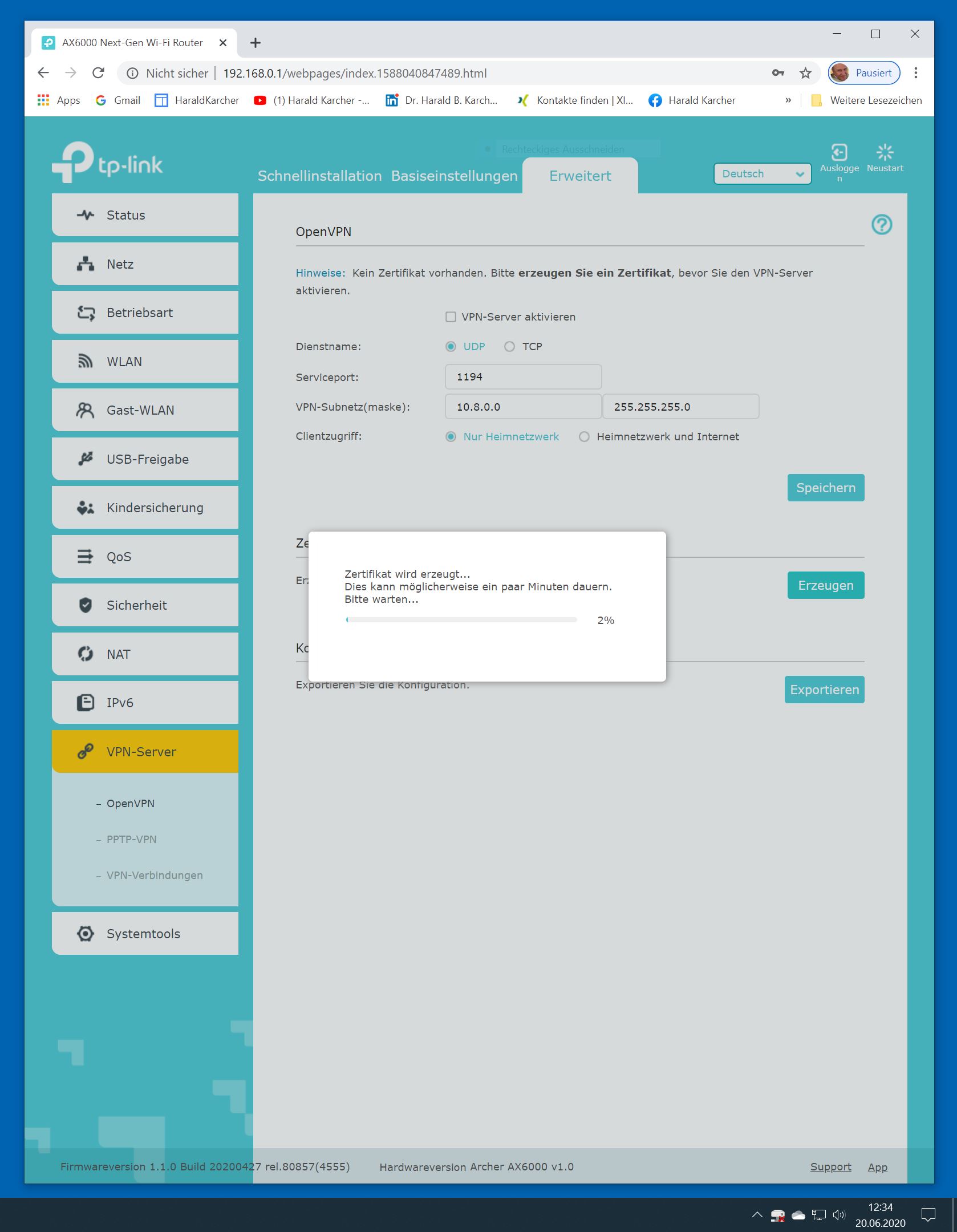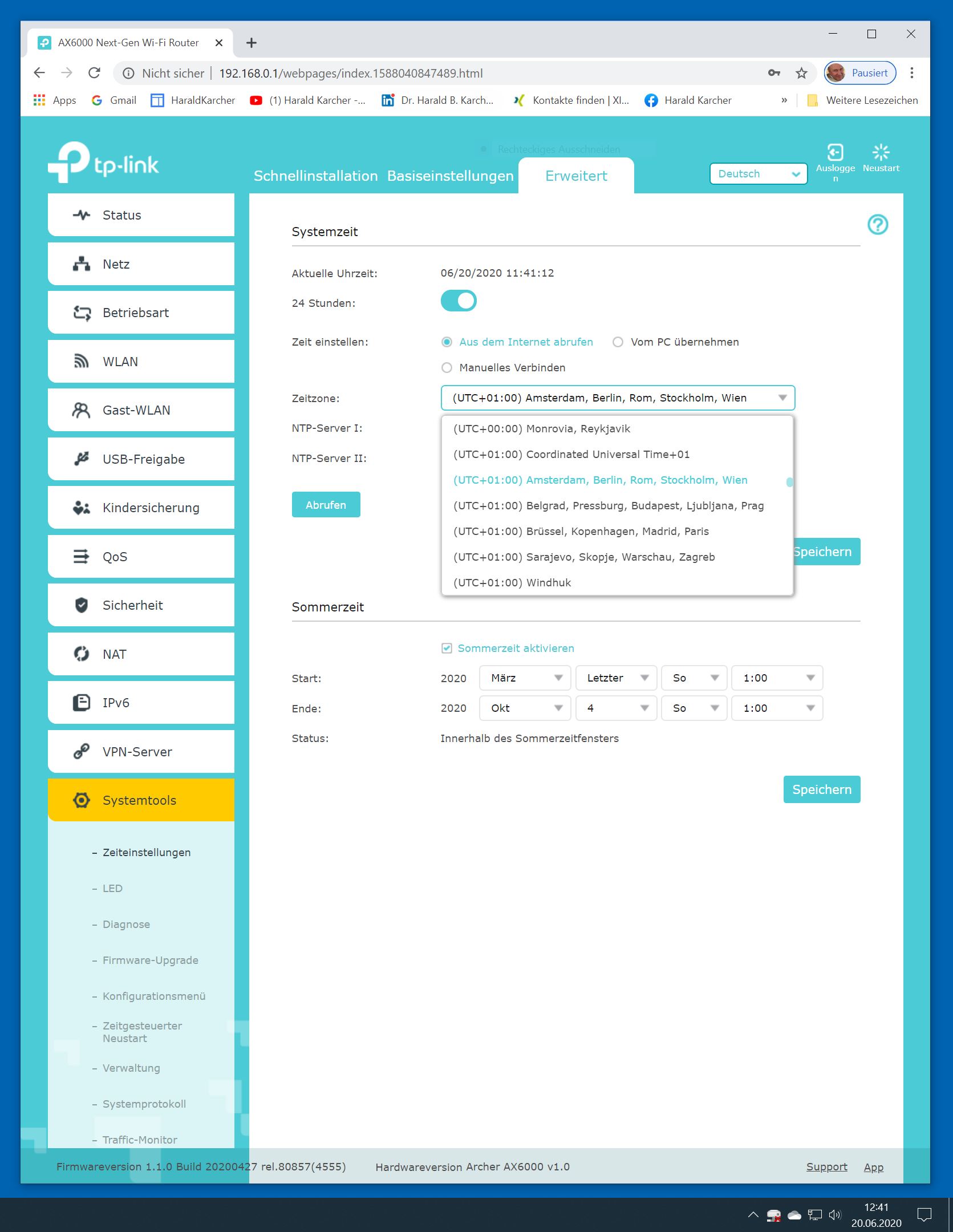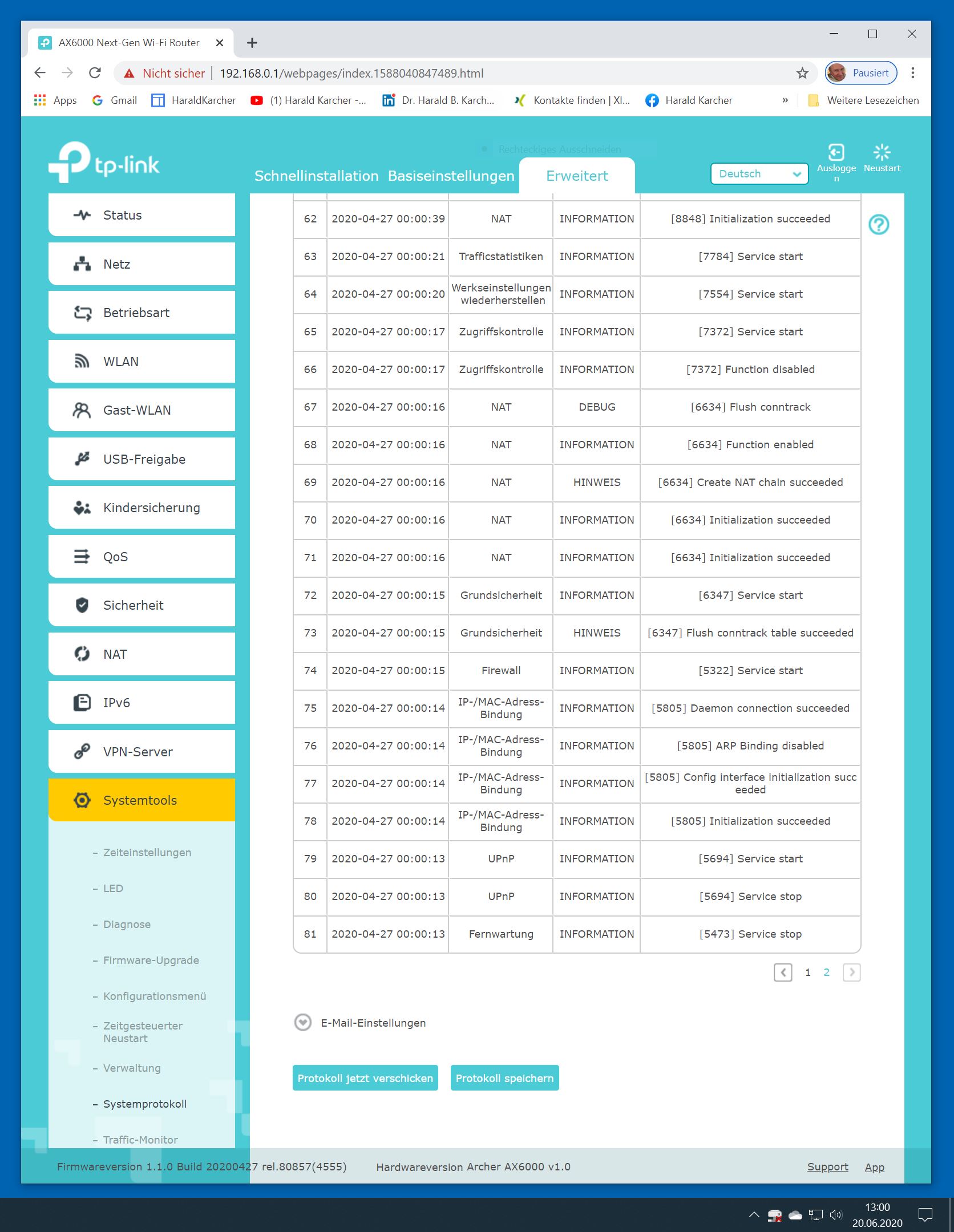 Der TP-Link Router Archer AX6000 lässt sich per Browser am Rechner oder per App am Smartphone einrichten. Via Browser stehen mehr Funktionen zur Verfügung als per Handy-App. Wir dokumentieren hier nur die Browser-Version. Über die aktuelle IP oder die URL http://tplinkwifi.net landen wir in der Konfiguration des Routers. Nach Umstellung von Englisch auf Deutsch bot er folgende Optionen: