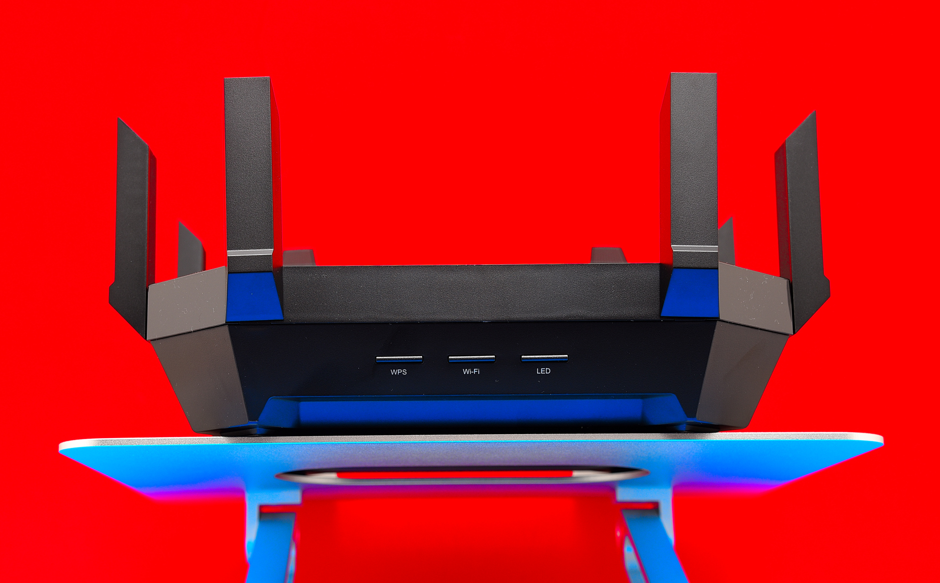 Bei der Datenübertragung per WLAN setzt der AX6000 auf den neuen WiFi-6-Standard. Im 5-GHz-Band sind mit dem Gerät dank 4-Stream-11ax theoretisch bis zu 4804 MBit/s möglich. Im 2,4-GHz-Band werden vier weitere 11ax-Streams versprochen, hier erreicht der Router theoretisch maximal 1148 MBit/s.
