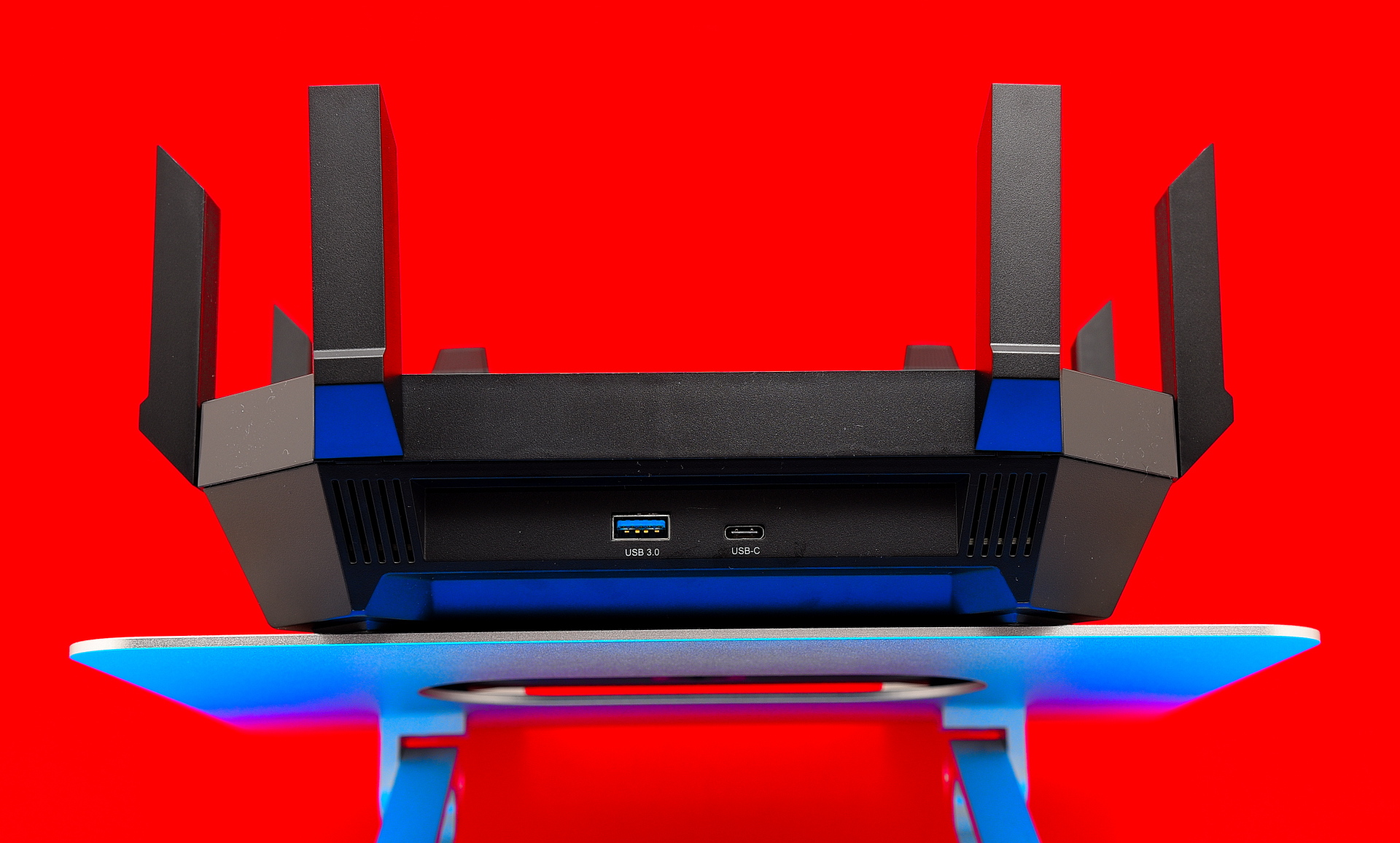 Im Inneren arbeitet eine flotte 4-Kern-CPU. Das hilft nicht nur beim WLAN, sondern auch, wenn eine Festplatte Daten im Netzwerk freigeben soll. Dazu hat der Archer AX60000 zwei USB-Ports: Einmal Typ A, einmal Typ C, beide unterstützen USB 3.0.