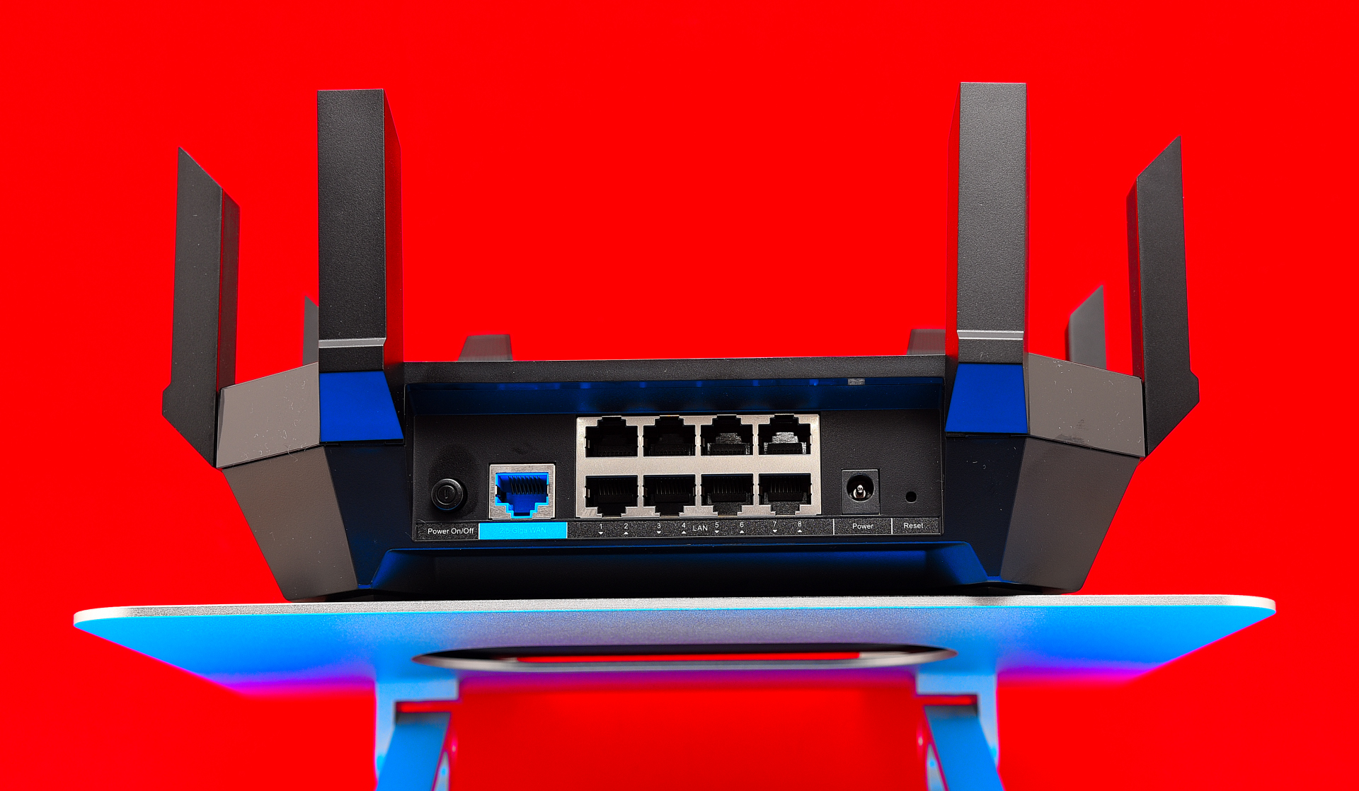 Interessant ist die Anzahl der LAN-Ports. Wo viele Hersteller gerade einmal vier oder fünf Anschlüsse verbauen, punktet TP-Link mit acht Gigabit-LAN-Anschlüssen. Leider gibt es keinen schnelleren Port, gerade bei einem Wifi-6-Gerät könnte man eigentlich einen 2,5-GBit/s-Port erwarten. Moment, das stimmt nicht ganz: Der blaue WAN-Port zum Anschluss am Modem schafft bis zu 2,5 GBit/s – allerdings sind derartige Internet-Anschlüsse im privaten Umfeld deutlich seltener als etwa eine NAS mit entsprechend hoher Geschwindigkeit (Ratgeber) . Gerne hätten wir die Ports vertauscht, damit unser 10-Gig-Test-NAS am blauen 2,5-Gig-Port hängt und für den Internetzugang ein schwarzer 1-Gig-Port zum Einsatz kommt. Doch, das sieht der TP-Link Archer AX6000 leider nicht vor.