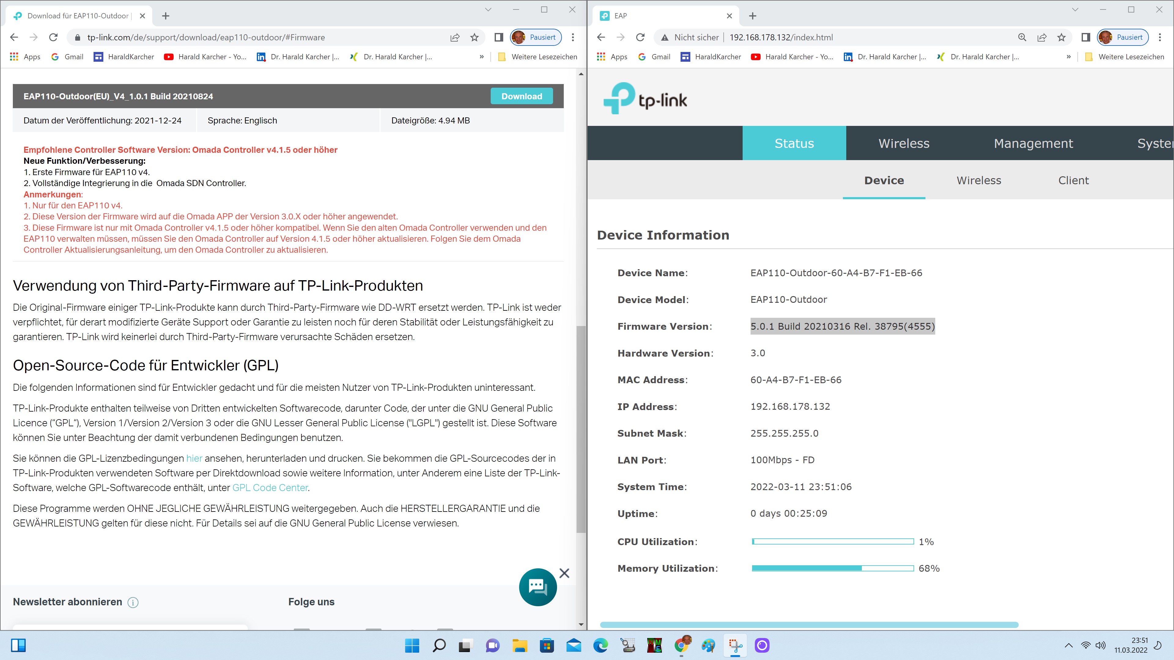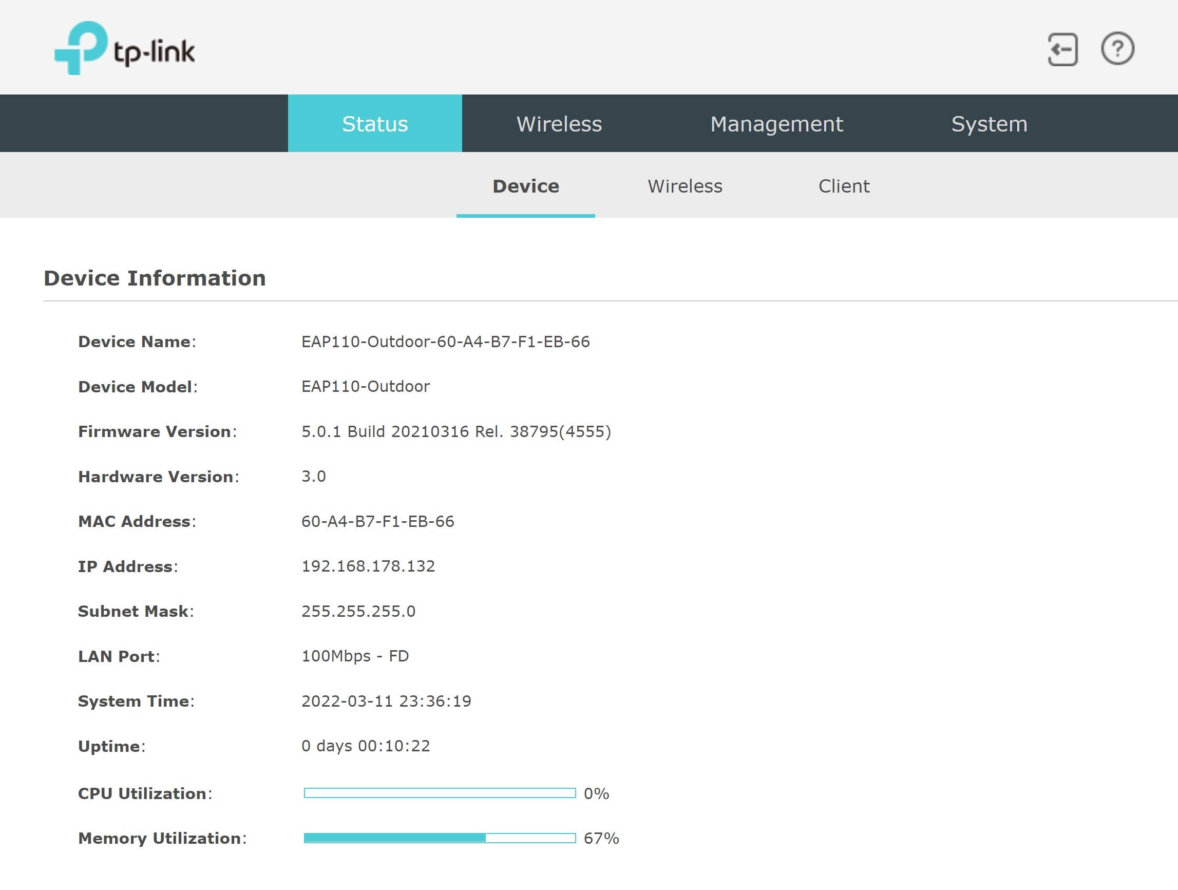 Die folgenden Screenshots zeigen ein paar Highlights aus der lokalen Einrichtung des TP-Link EAP110: