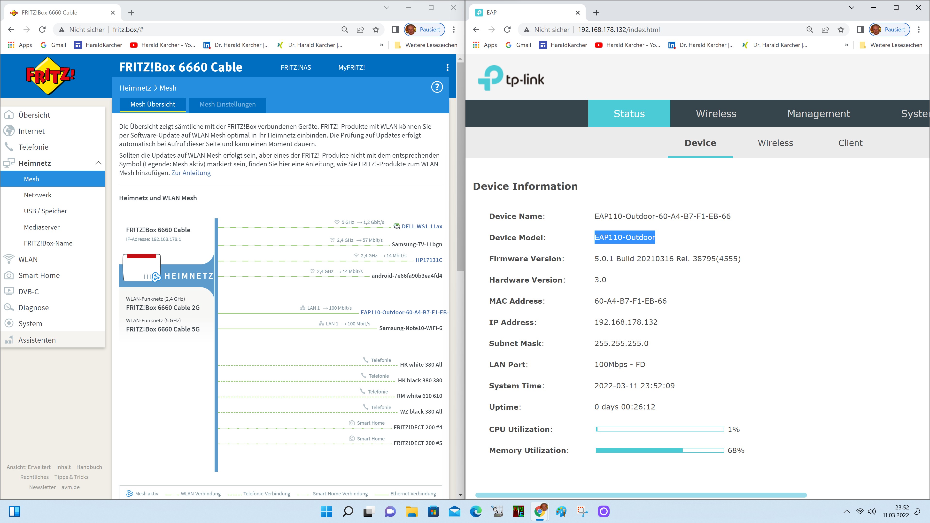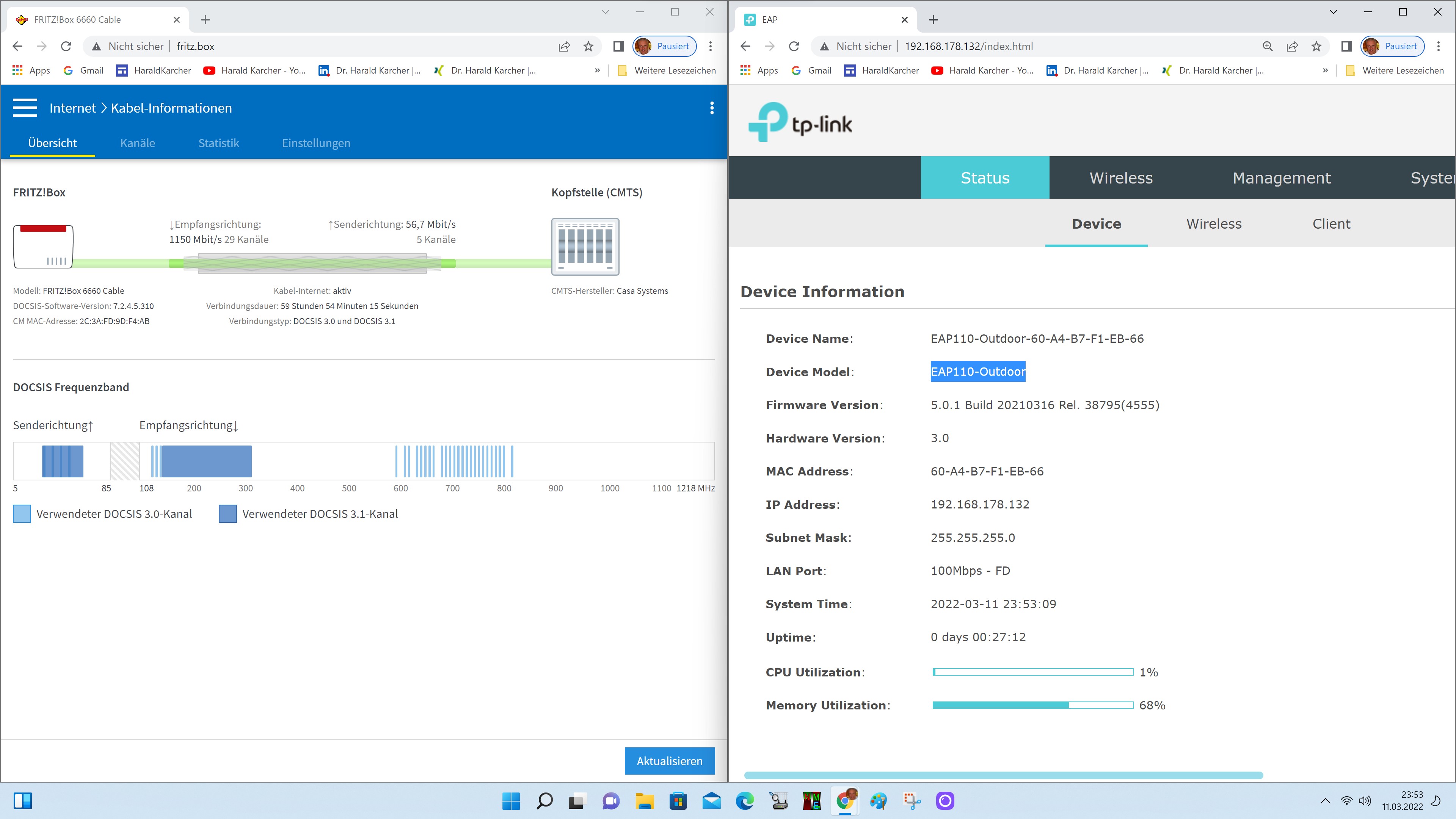 Nun wollen wir die WLAN-Leistung des Outdoor-Funkers in unserem gewohnten Indoor-Umfeld testen. Zu diesem Zwecke hängen wir den TP-Link EAP110 per LAN-Kabel (via PoE-Adapter) an einen beliebigen LAN-Port einer Fritzbox 6660 Cable.