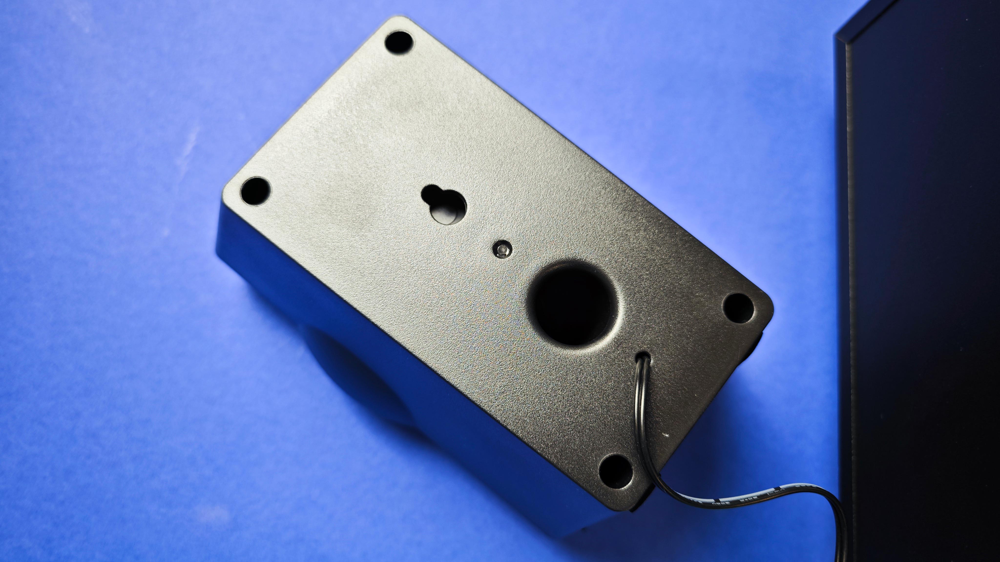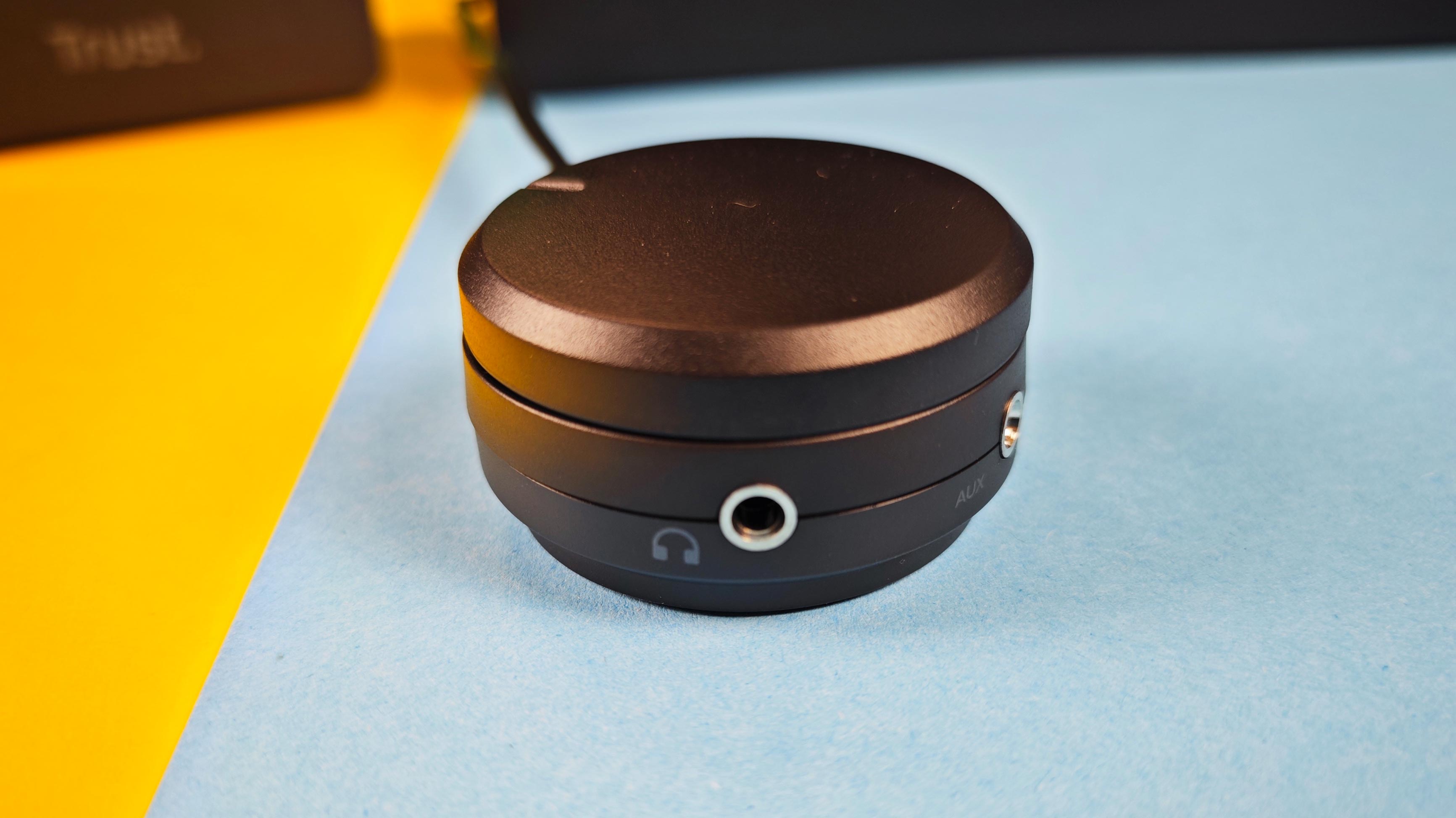 Das Design ist sehr simpel gehalten, wirkt aber ausreichend wertig und sieht nicht zu billig aus. RGB-LEDs oder sonstigen Zierrat gibt es hier nicht, ebenso wenig weitere Ausstattung wie Bluetooth. Etwas seltsam mutet die Anschlussoption für PC oder Smartphone an: Am Subwoofer gibt es dafür keinen Anschluss, ein passender Klinkenanschluss befindet sich hingegen ausschließlich an der Kabelfernbedienung direkt neben dem Kopfhöreranschluss in ebenfalls 3,5-Millimeter-Klinke. Da hilft es auch nichts, dass das Kabel der Fernbedienung mit etwa 1,8 Metern angenehm lang ist, denn von dort aus muss immer ein weiteres Kabel zum Zuspieler führen und liegt dann auf dem Schreibtisch herum.