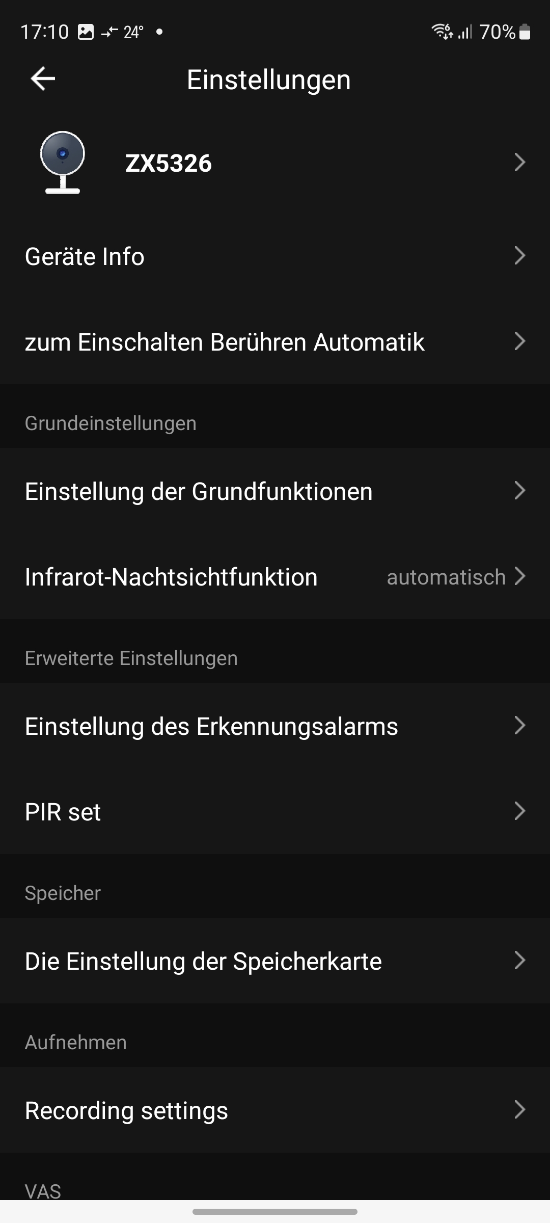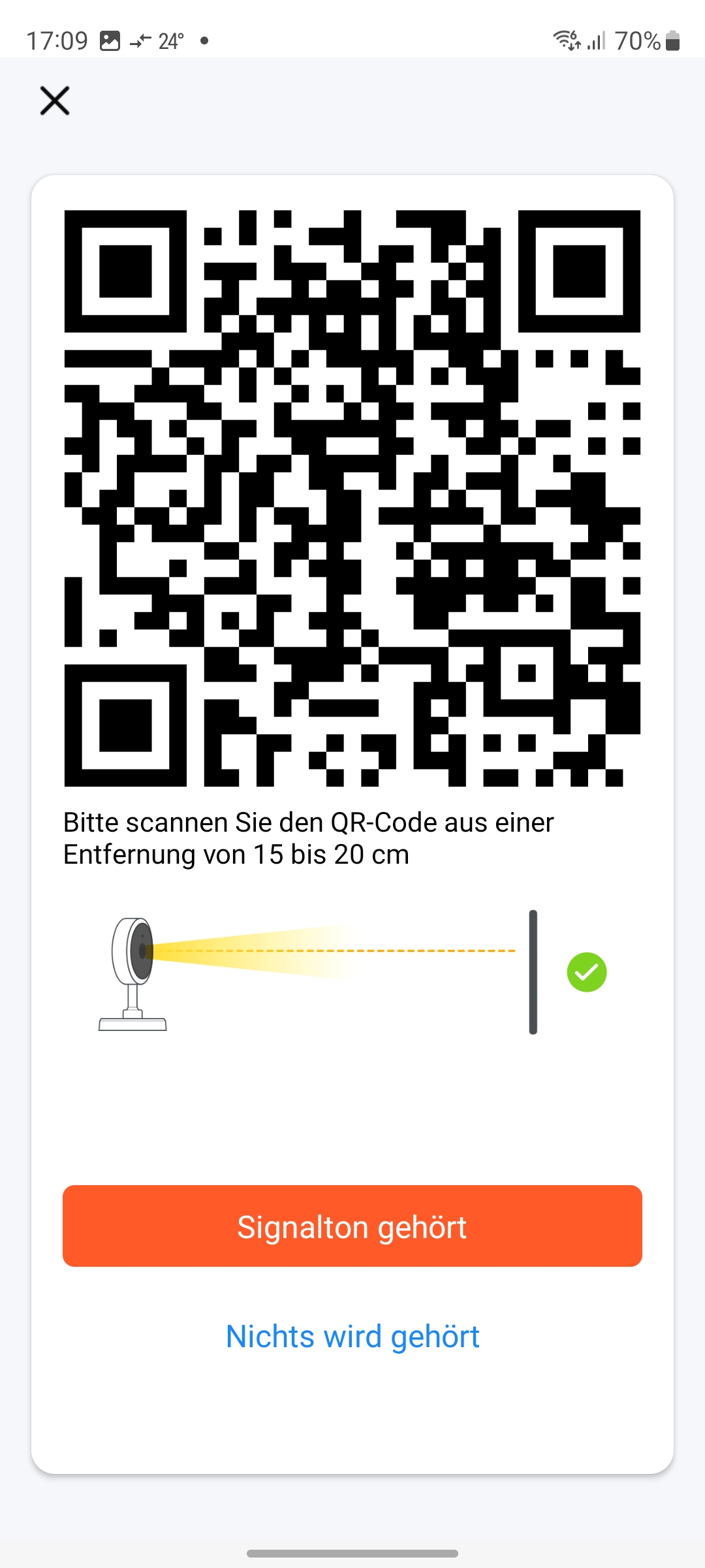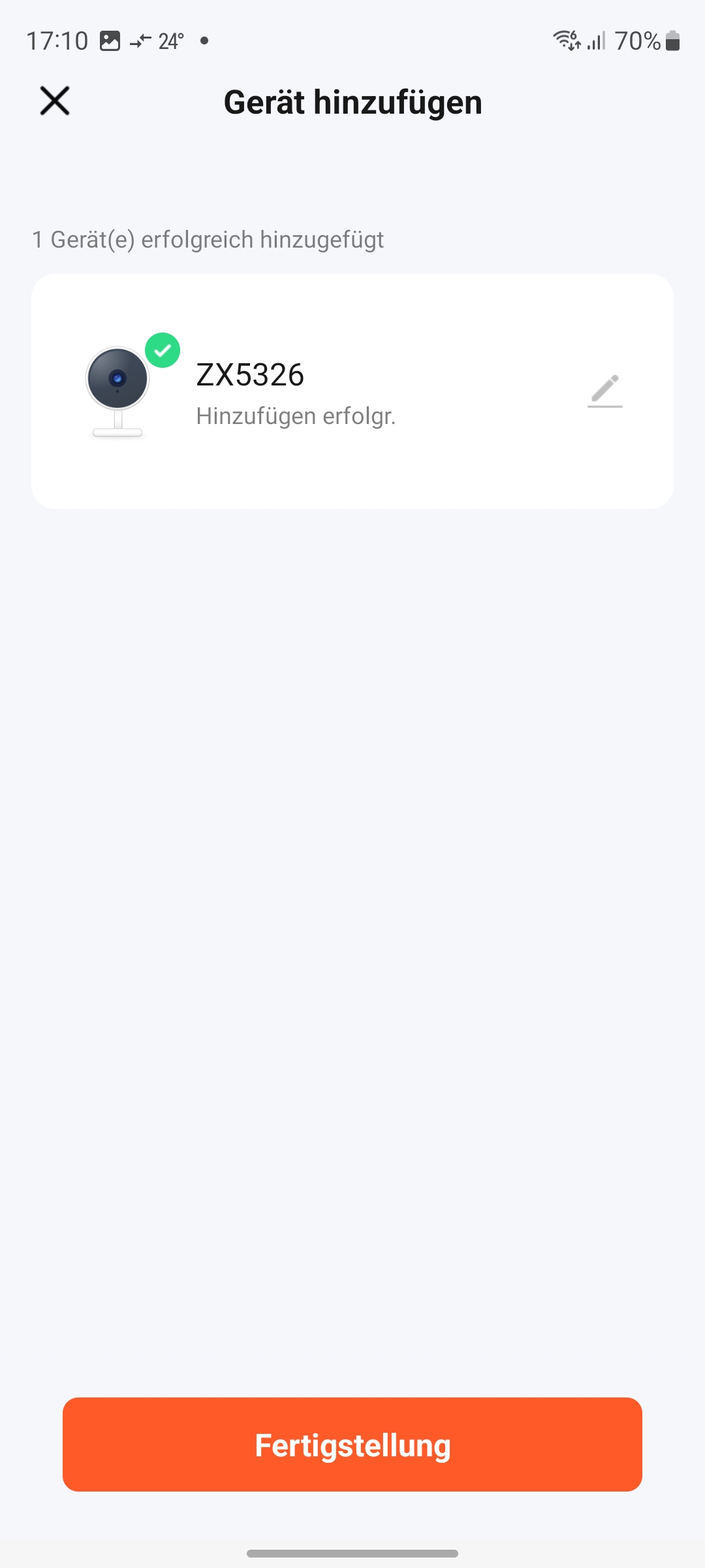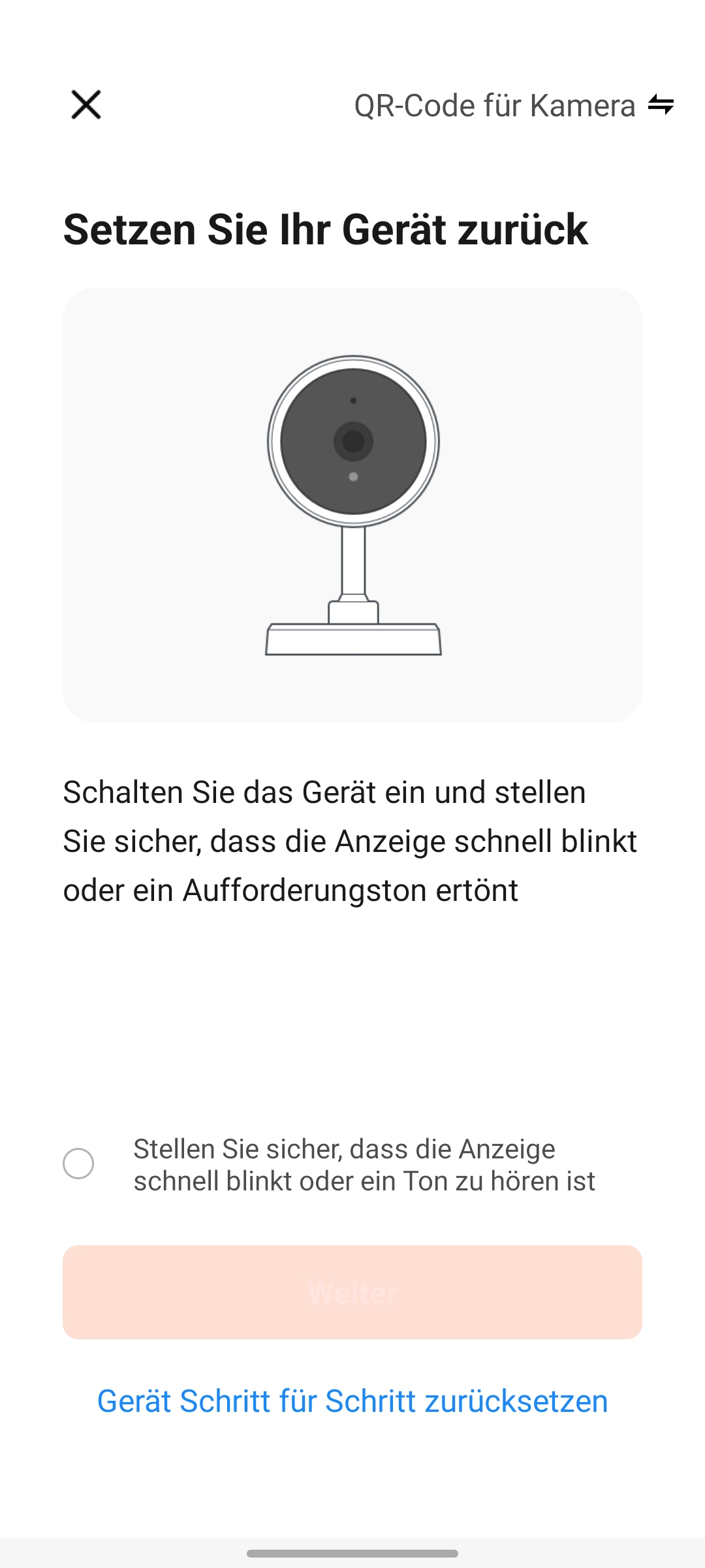 Die Inbetriebnahme erfolgt mit einer der Tuya-kompatiblen Apps Elesion, Smartlife oder Tuya Smart. Nach dem Anschluss an die Stromversorgung startet die Kamera im Kopplungsmodus, was durch eine blinkende Statusleuchte unterhalb des Objektivs signalisiert wird. Jetzt ruft man eine der Tuya-Apps auf und beginnt mit dem Hinzufügen der Kamera über das Plus-Zeichen rechts oben und wählt Sicherheitskamera (Wi-Fi). Anschließend wählt man das betreffende WLAN aus und gibt das Passwort ein. Dann generiert die App einen QR-Code, den man im Abstand von 10 bis 15 Zentimeter vor die Linse hält. Sobald die Kamera den QR-Code erkannt hat, ertönt ein Signal und die Verbindungsaufnahme zum WLAN erfolgt. Die Kamera wird in der Folge als ZX5326 in der App angezeigt (siehe auch Bildergalerie). Der Wechsel des WLANs ist per Reset möglich. Hierfür drückt man auf der Unterseite der Kamera, neben dem microSD-Card-Slot, die Reset-Taste, bis ein Tonsignal zu hören ist.