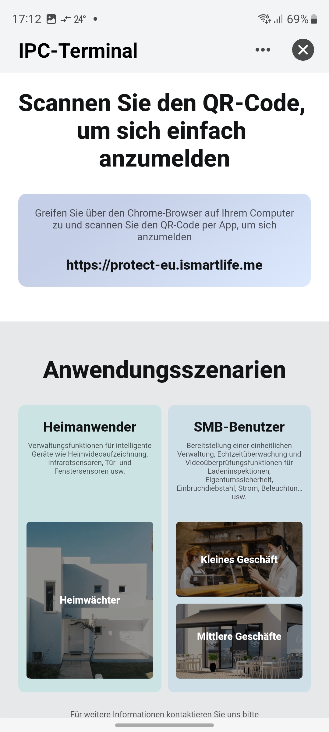 Neben der App können Anwender den Livestream der Kamera sowie aufgezeichnete Videos auch über einen Browser unter der Adresse https://protect-eu.ismartlife.me/ abrufen.