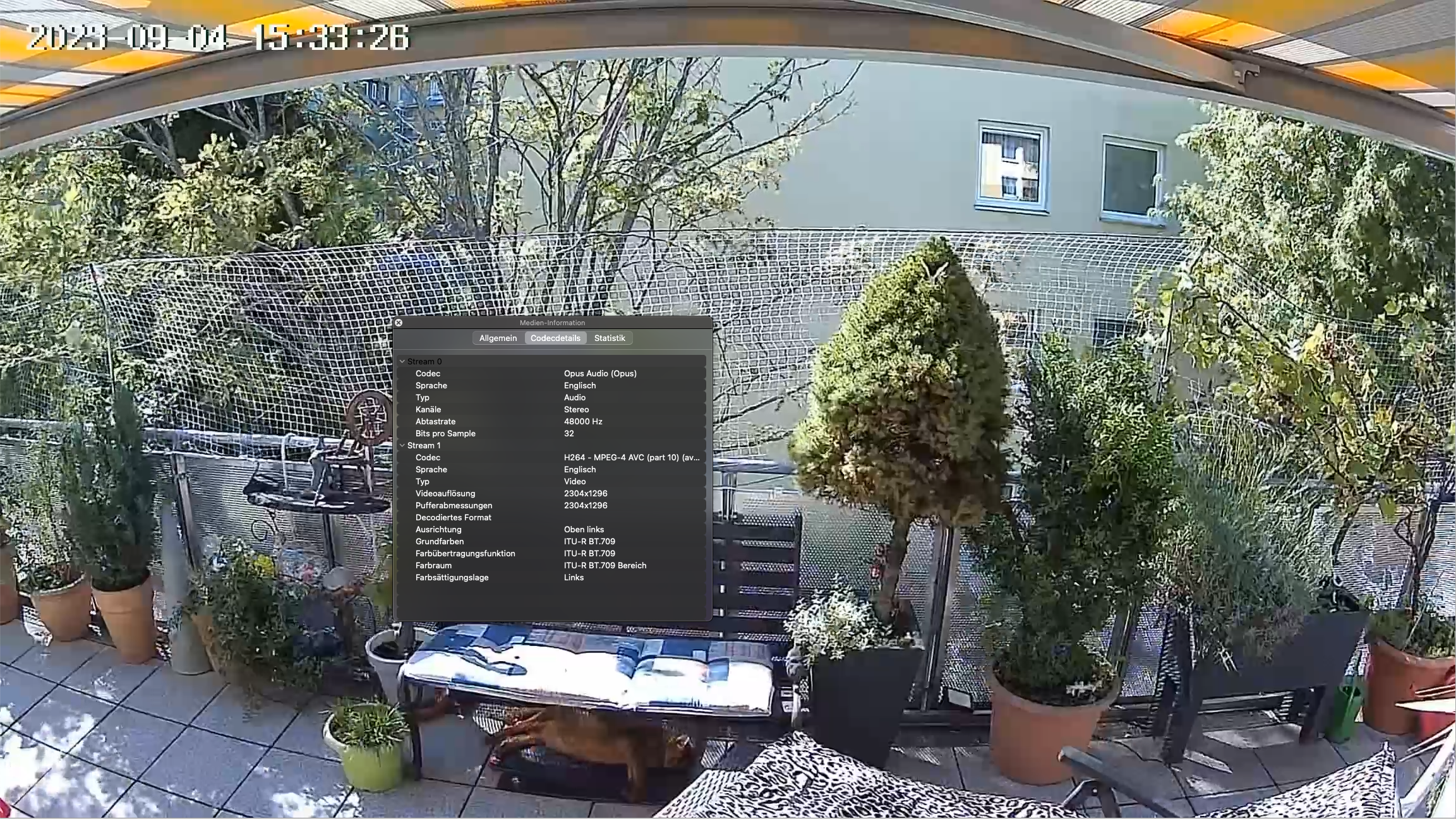 Videos zeichnet die Kamera mit der Einstellung HD mit der maximal möglichen Auflösung von 2304 × 1296 Pixel bei 15 fps im H.264-Format auf. Wechselt man auf SD, reduziert sich die Auflösung auf 640 × 368 Pixel. Die Videoqualität geht bei hoher Auflösung tagsüber in puncto Farbdarstellung und Kontrast in Ordnung. Mit starkem Gegenlicht kommt sie allerdings nicht so gut klar. Dann werden bestimmte Teile des Bild entweder über- oder unterbelichtet. Nachts nimmt die Kamera standardmäßig mithilfe der integrierten Infrarot-LEDs Videos in Schwarz-Weiß auf. Die Ausleuchtung ist dabei relativ homogen, sodass man Gesichter noch gut erkennen kann. Allerdings nimmt die Schärfe im Vergleich zu tagsüber aufgenommenen Videos etwas ab. Mit den zuschaltbaren LEDs kann die Visortech Floodlight Cam ZX-5326 nachts Videos auch in Farbe aufnehmen. Die Bildqualität ist dabei deutlich besser als die Schwarz-Weiß-Aufnahme auf Basis der Infrarot-LEDs (siehe auch Bildergalerie).