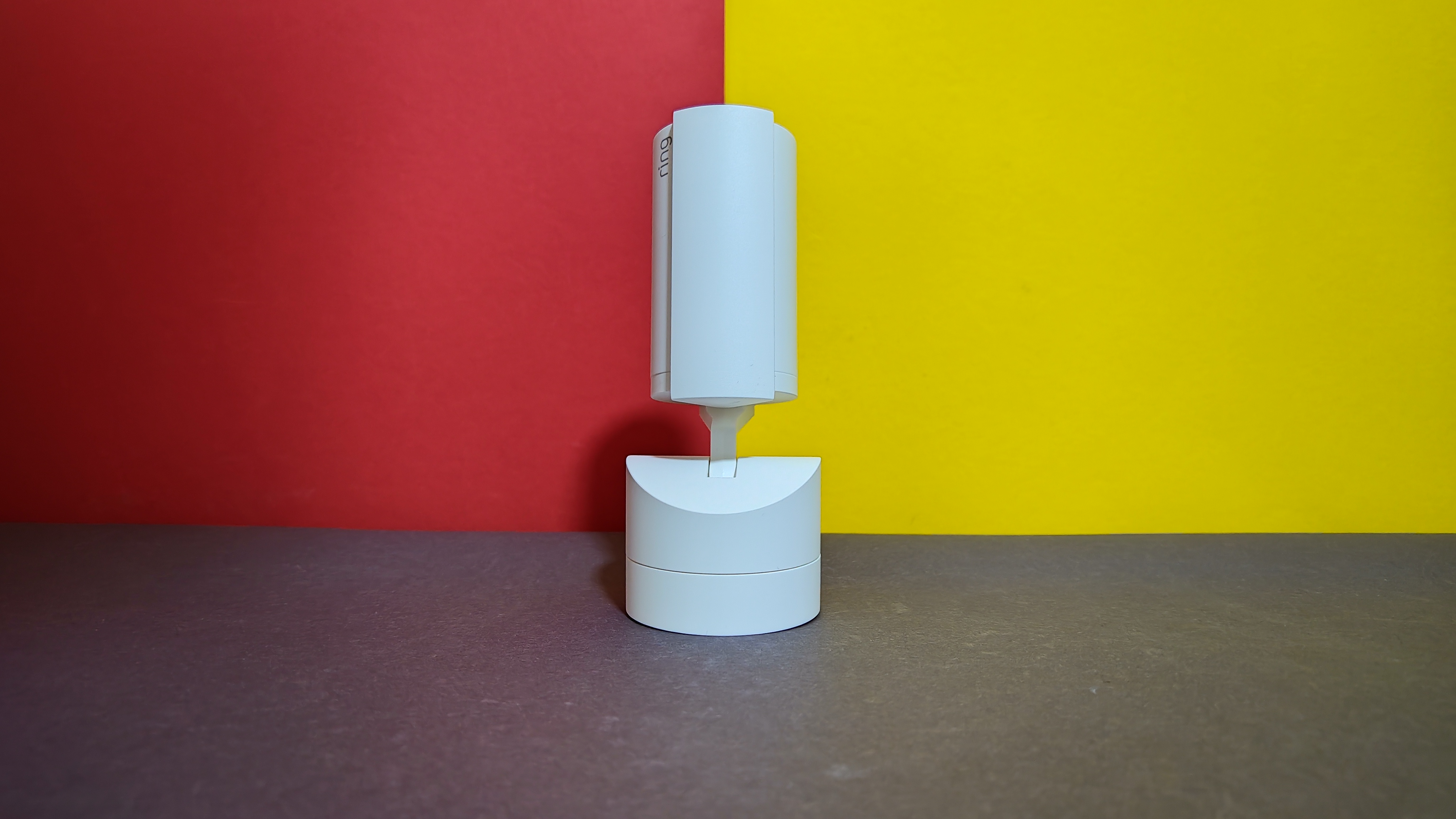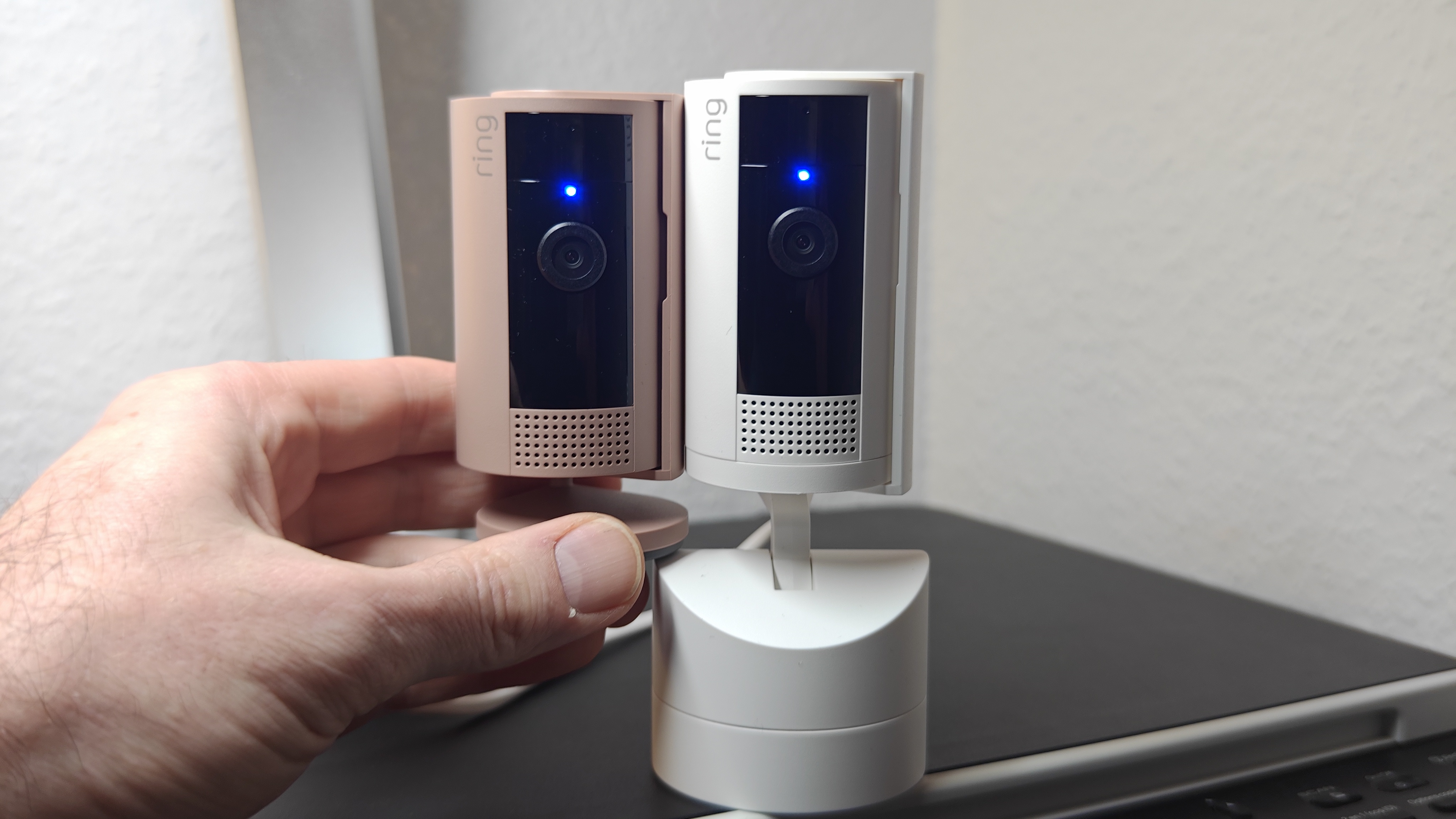 Ring Pan-Tilt Indoor Cam: Mit Wandhalterung erreicht die Überwachungskamera eine Höhe von über 15 cm. Mit normalem Standfuß bleibt sie knapp unter dieser Höhe.