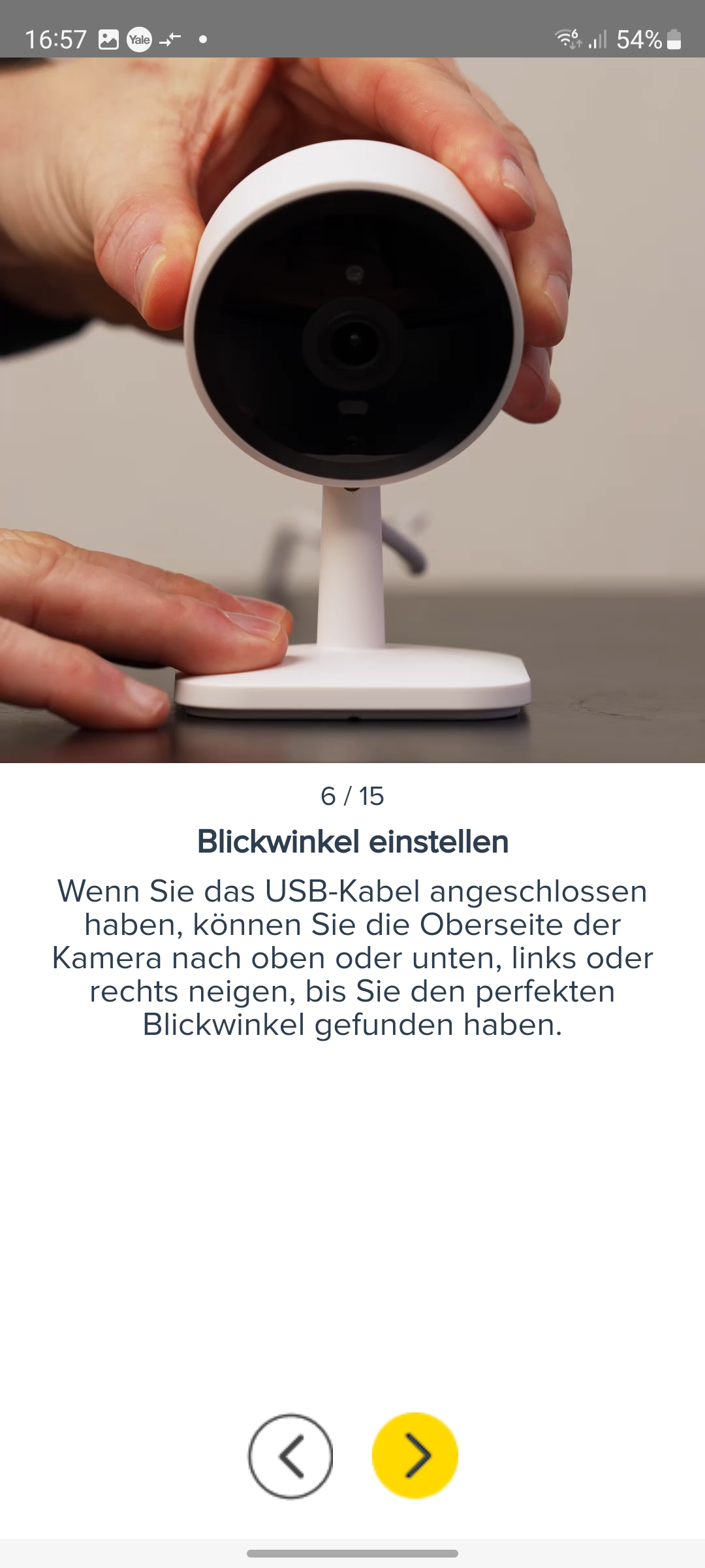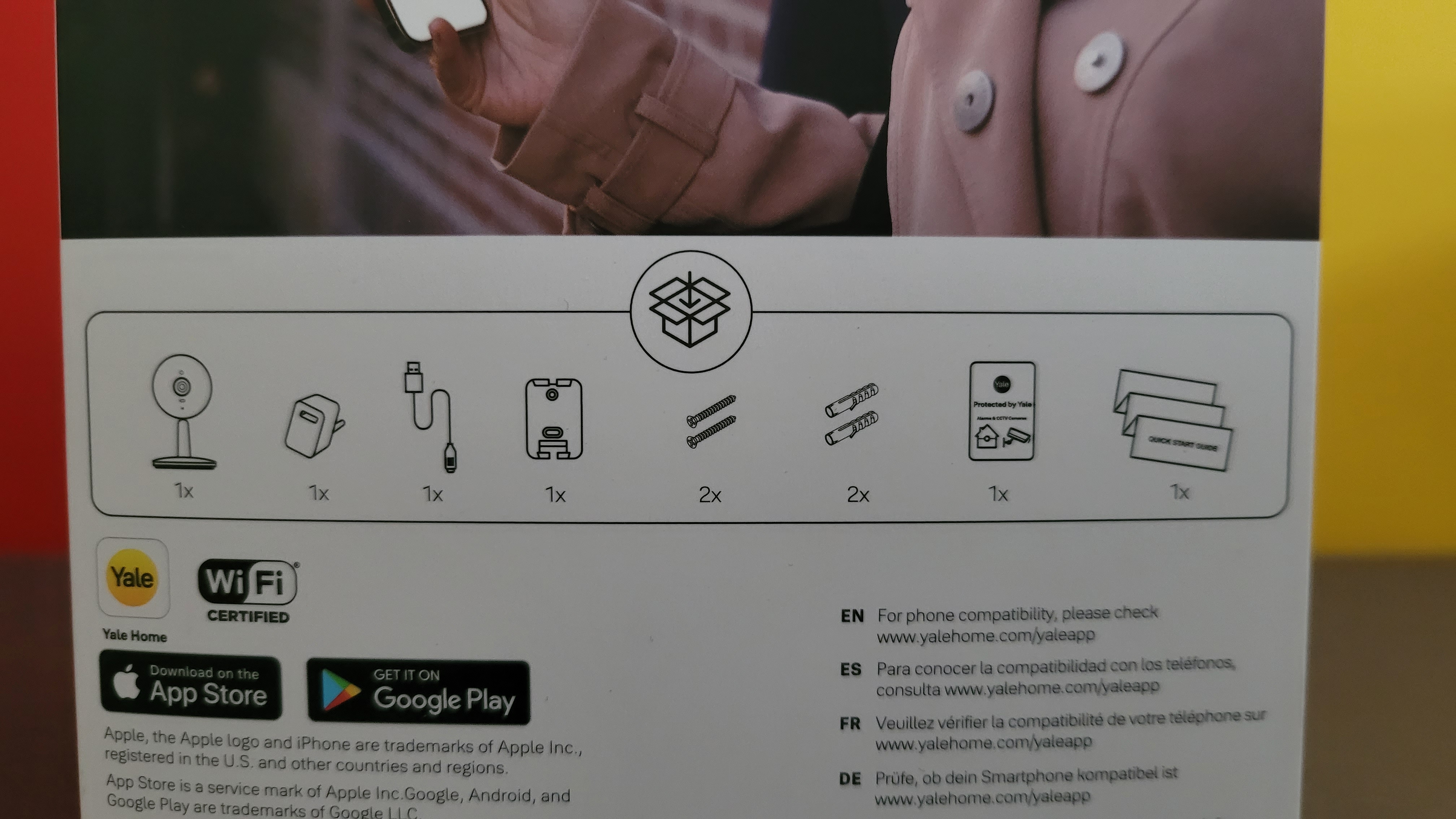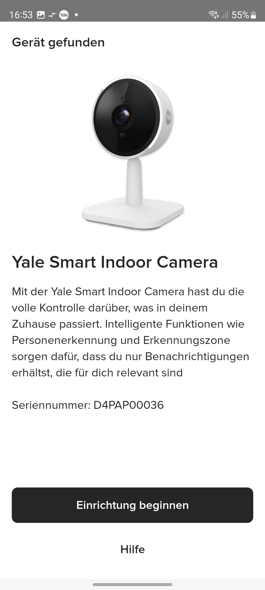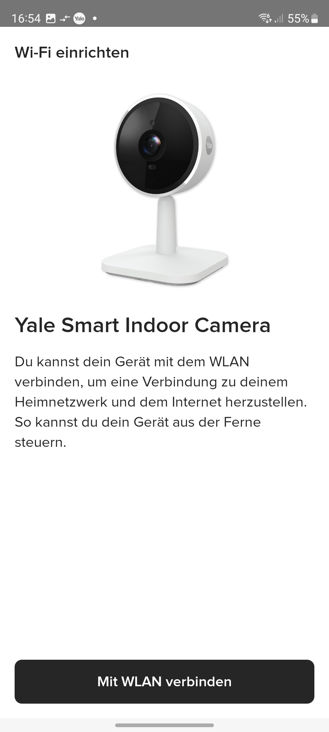 Die Inbetriebnahme erfolgt mit der App Yale Home, die für iOS und Android zur Verfügung steht und eine Registrierung mit Angabe von E-Mail und Telefonnummer erfordert. Für die Koppelung mit dem heimischen WLAN-Netz scannt man den QR-Code auf der Rückseite der Kamera ein und folgt der Assistent-gestützten Einrichtung. Weitere Details zur Inbetriebnahme zeigt die Bildergalerie.