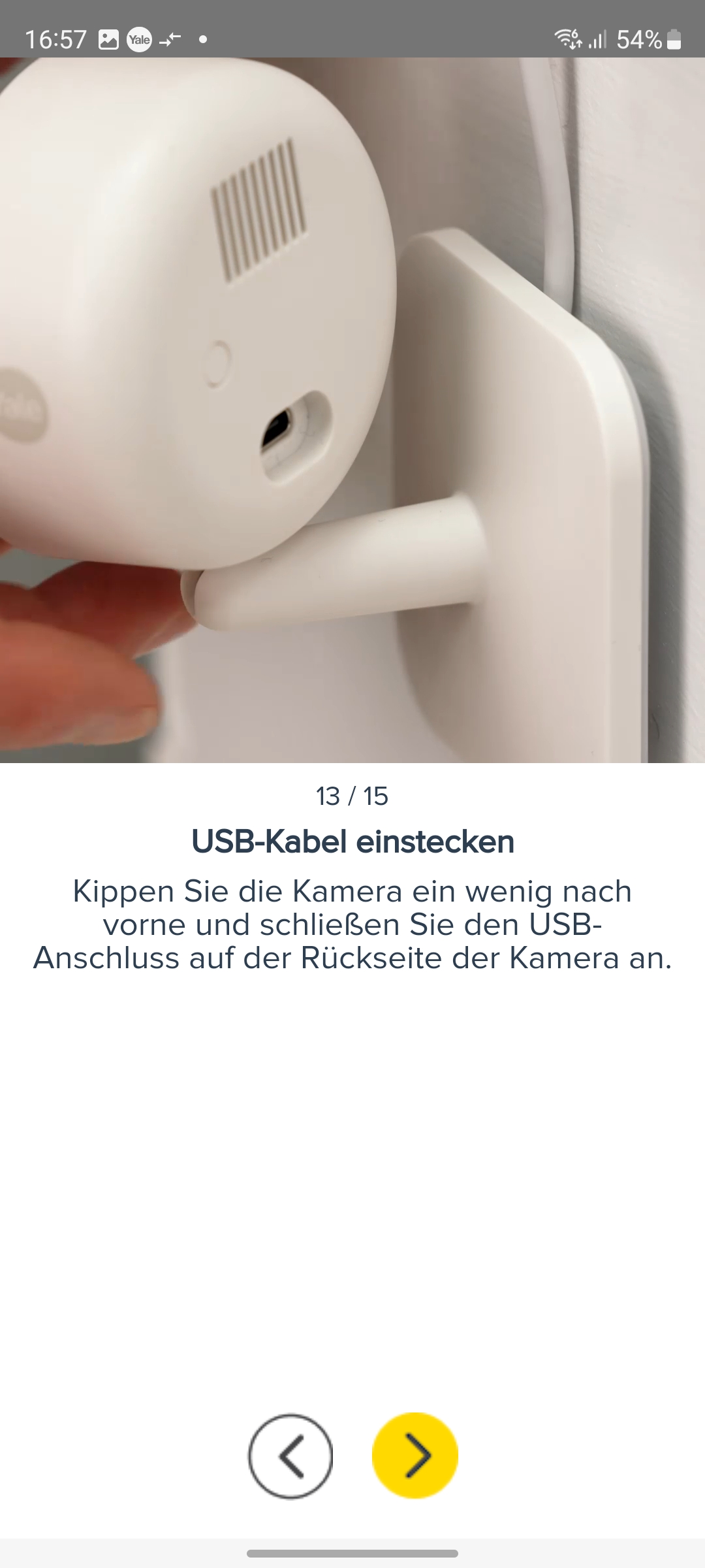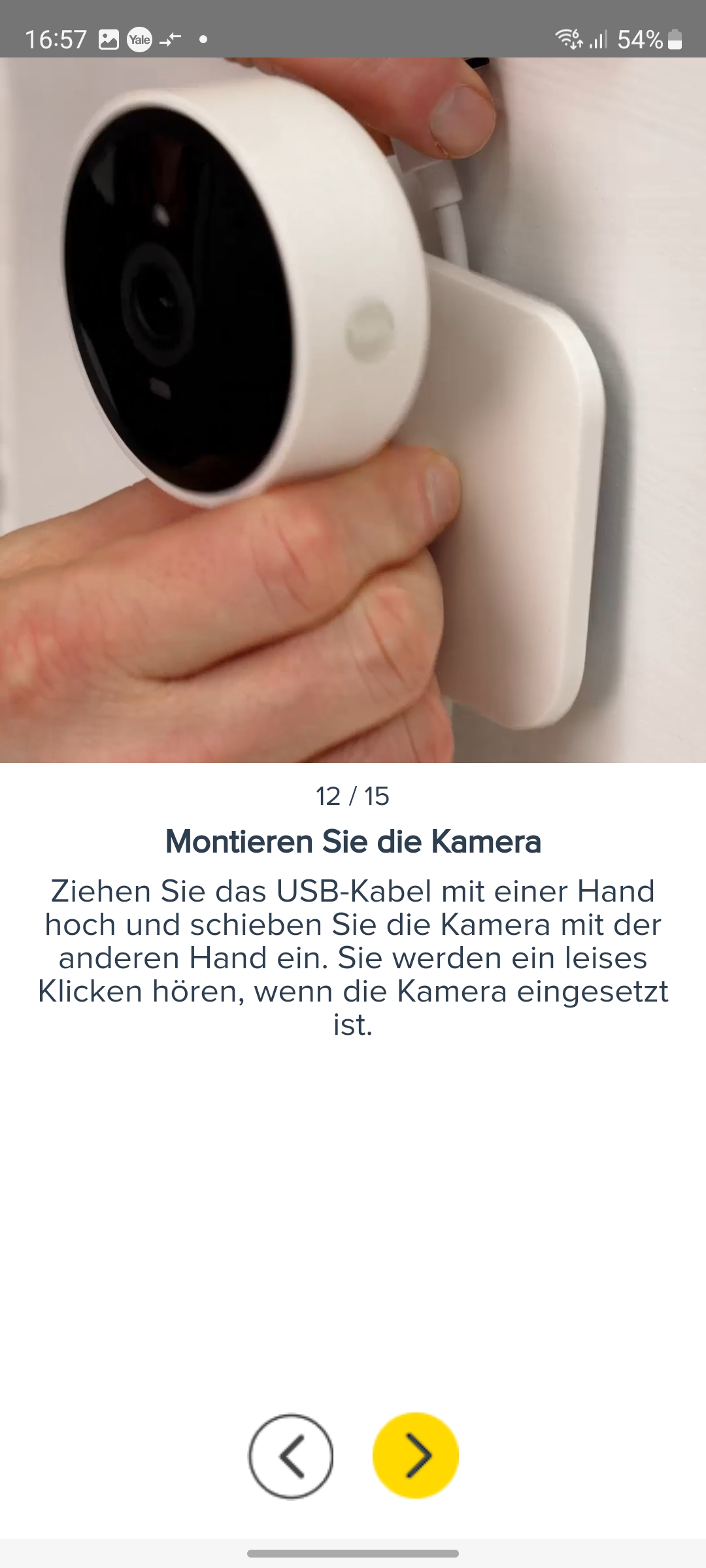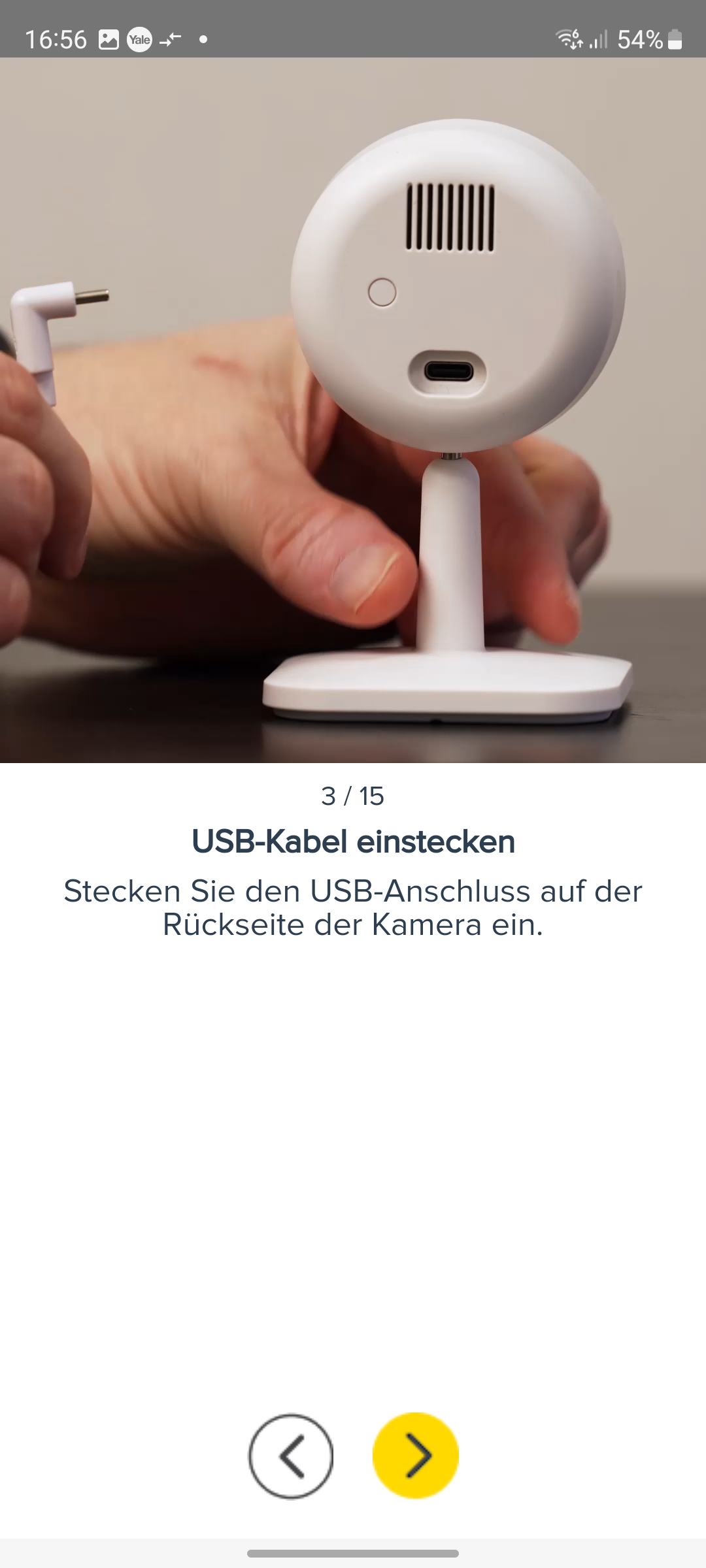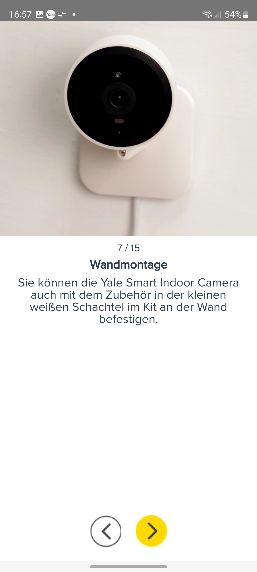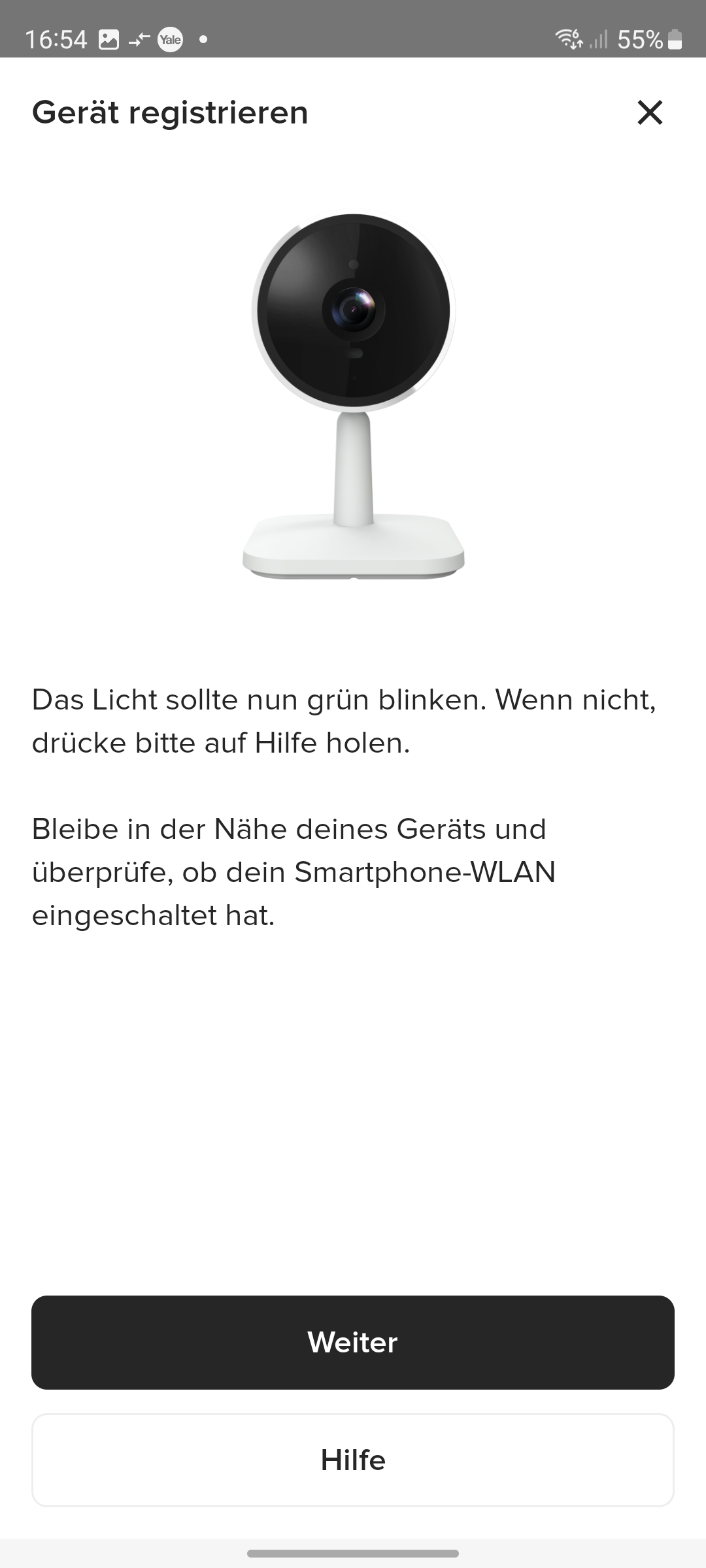 Die Inbetriebnahme erfolgt mit der App Yale Home, die für iOS und Android zur Verfügung steht und eine Registrierung mit Angabe von E-Mail und Telefonnummer erfordert. Für die Koppelung mit dem heimischen WLAN-Netz scannt man den QR-Code auf der Rückseite der Kamera ein und folgt der Assistent-gestützten Einrichtung. Weitere Details zur Inbetriebnahme zeigt die Bildergalerie.