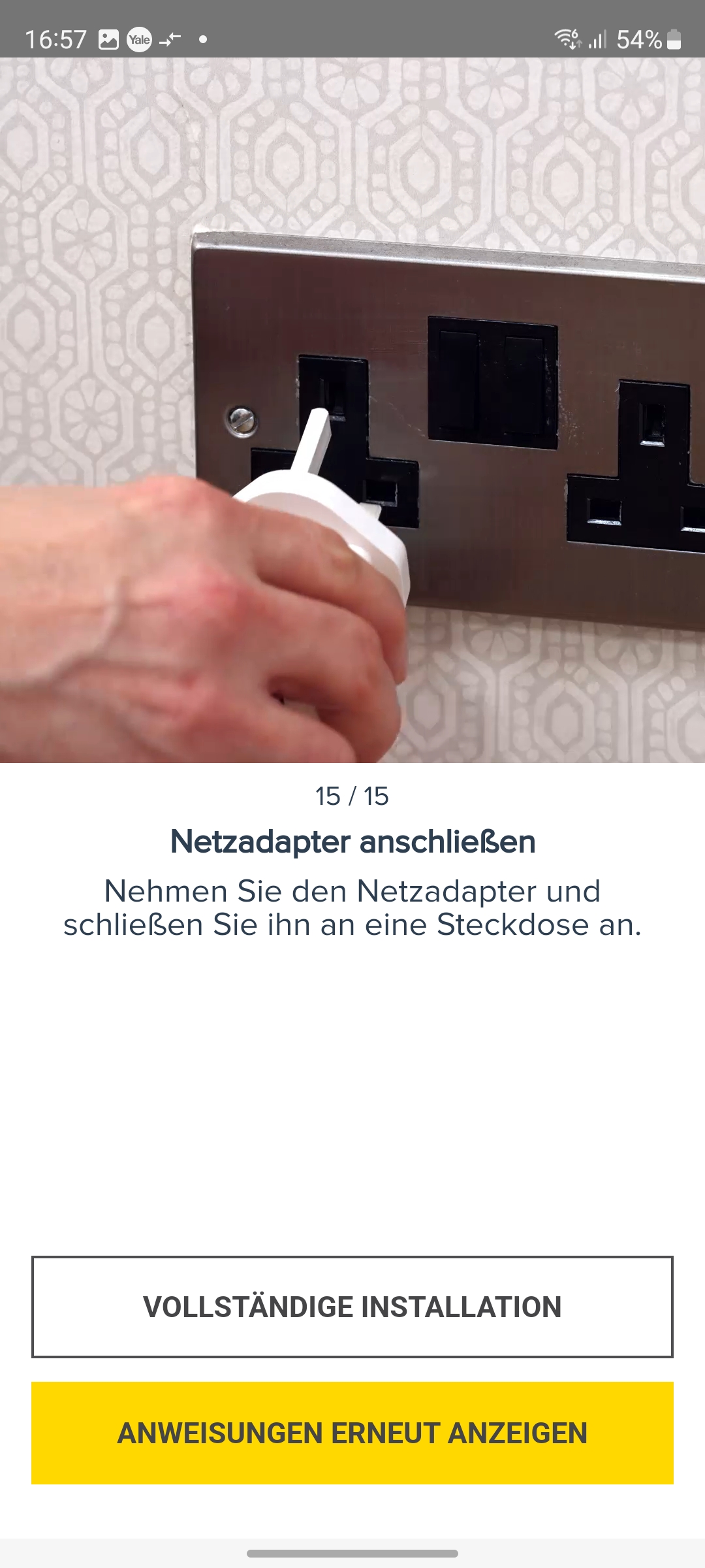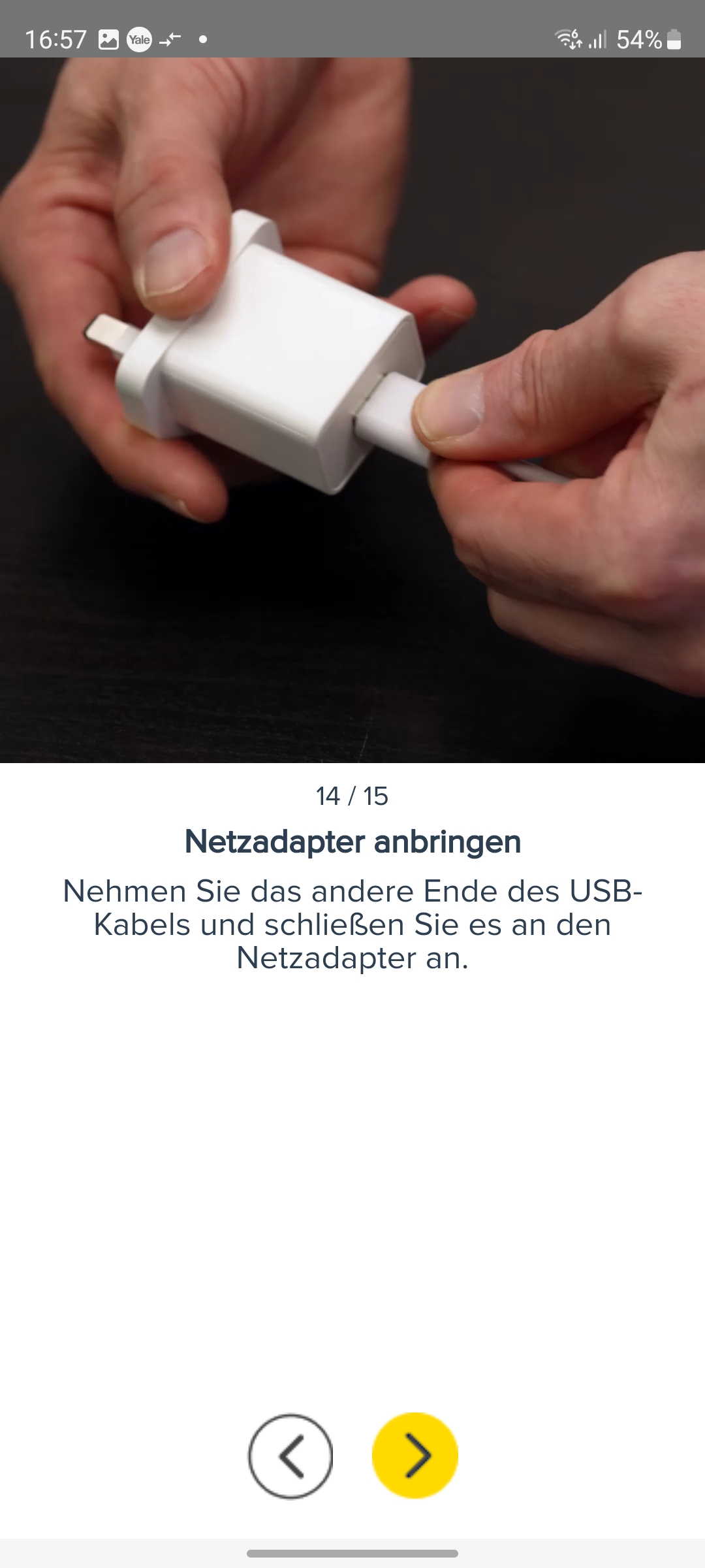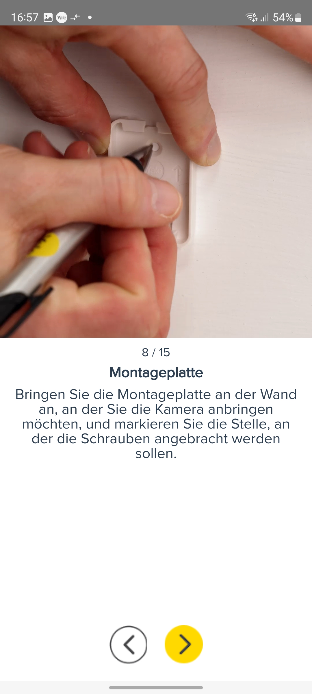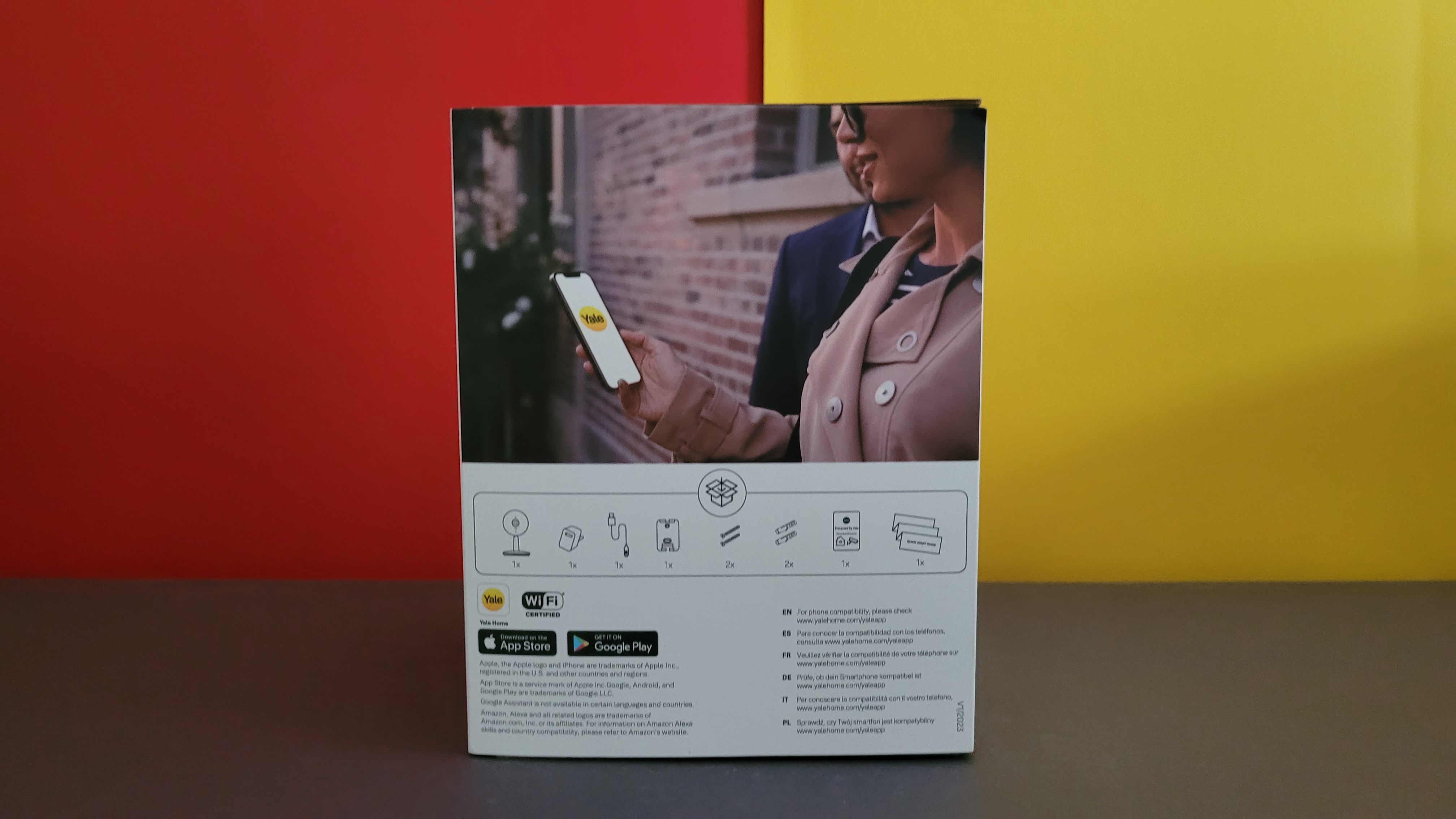 Die Inbetriebnahme erfolgt mit der App Yale Home, die für iOS und Android zur Verfügung steht und eine Registrierung mit Angabe von E-Mail und Telefonnummer erfordert. Für die Koppelung mit dem heimischen WLAN-Netz scannt man den QR-Code auf der Rückseite der Kamera ein und folgt der Assistent-gestützten Einrichtung. Weitere Details zur Inbetriebnahme zeigt die Bildergalerie.