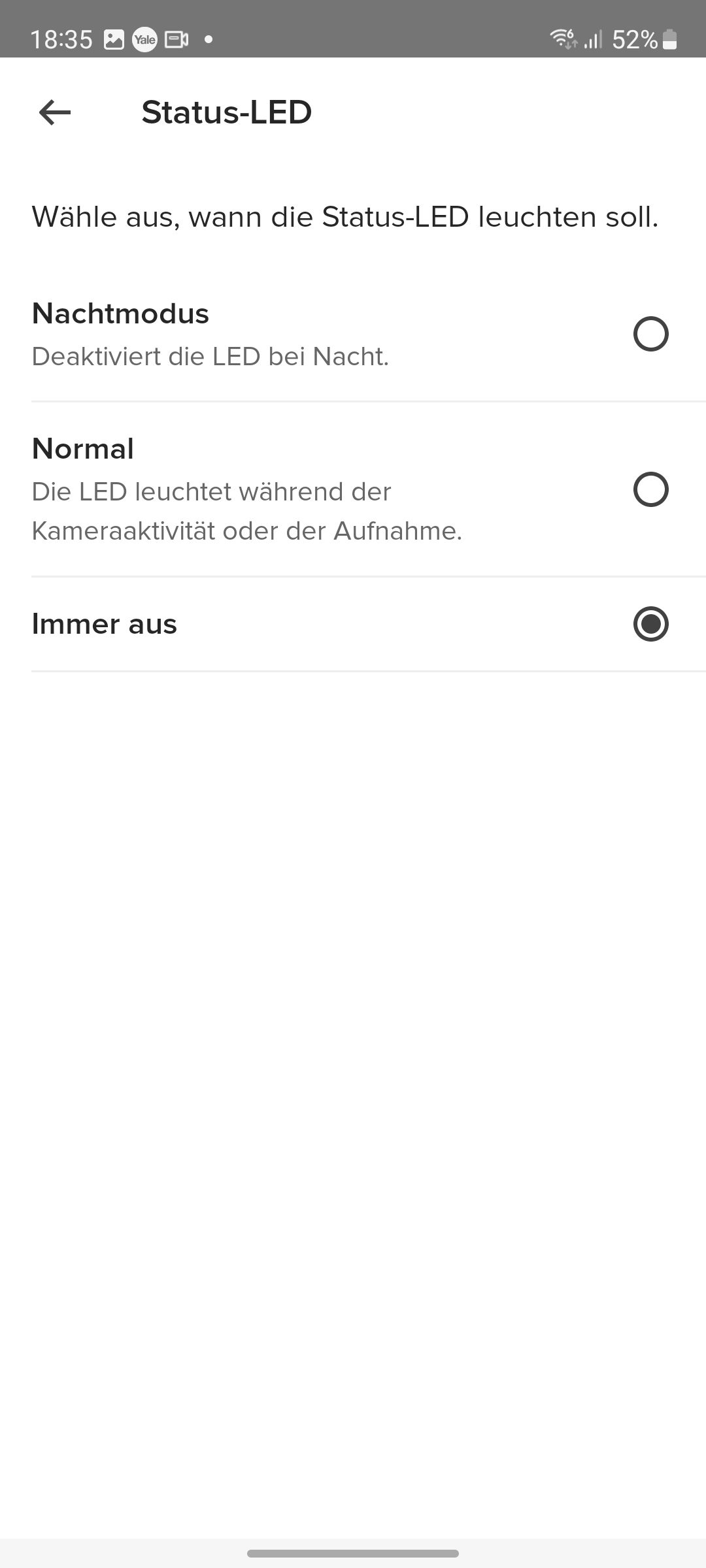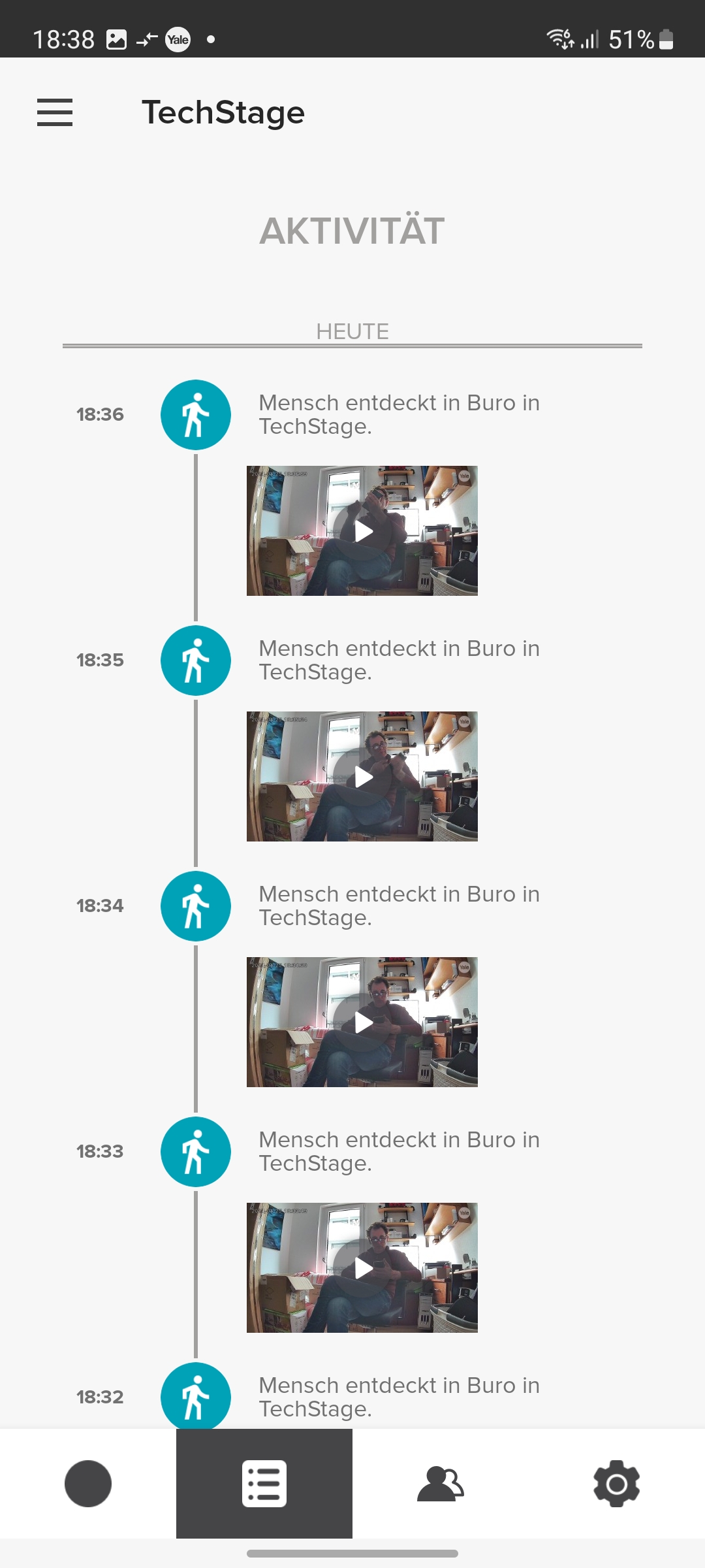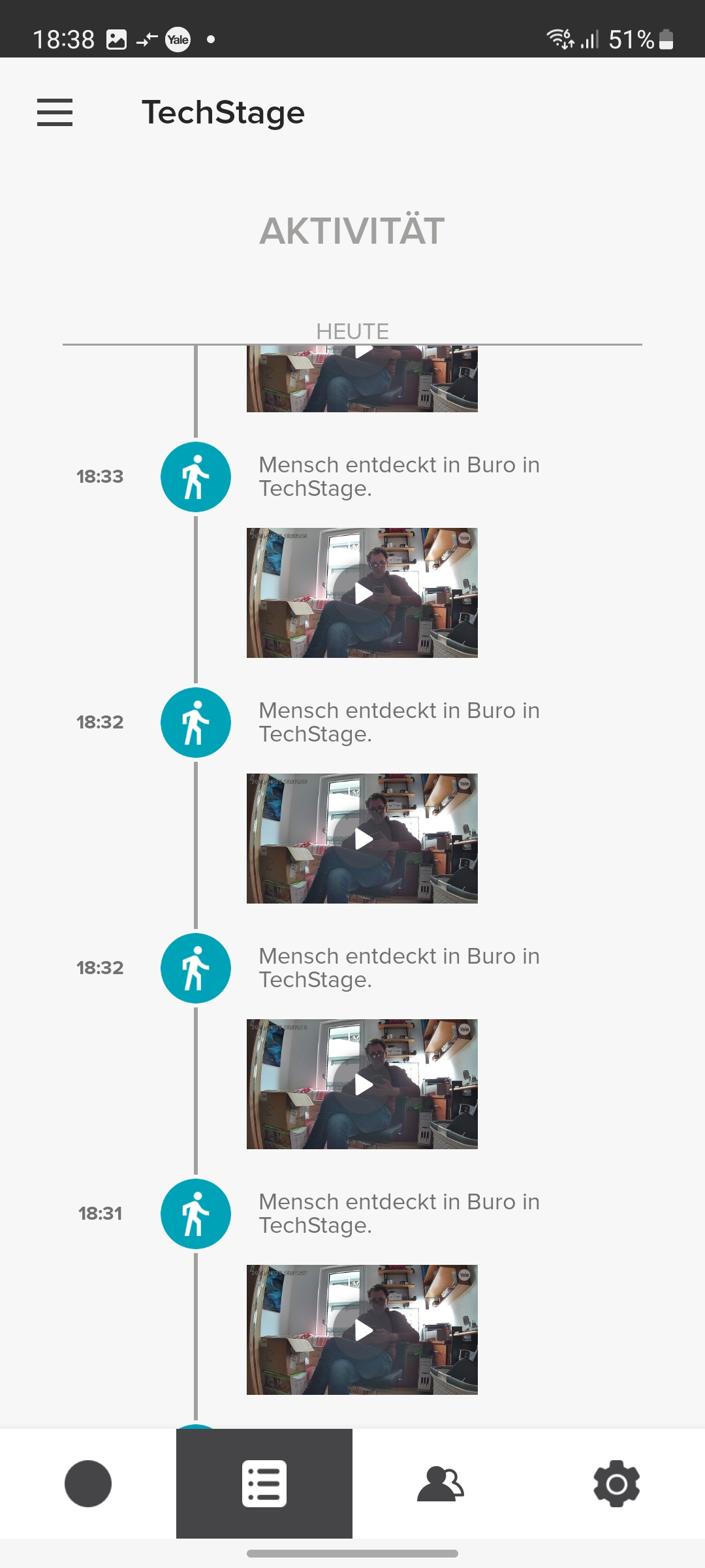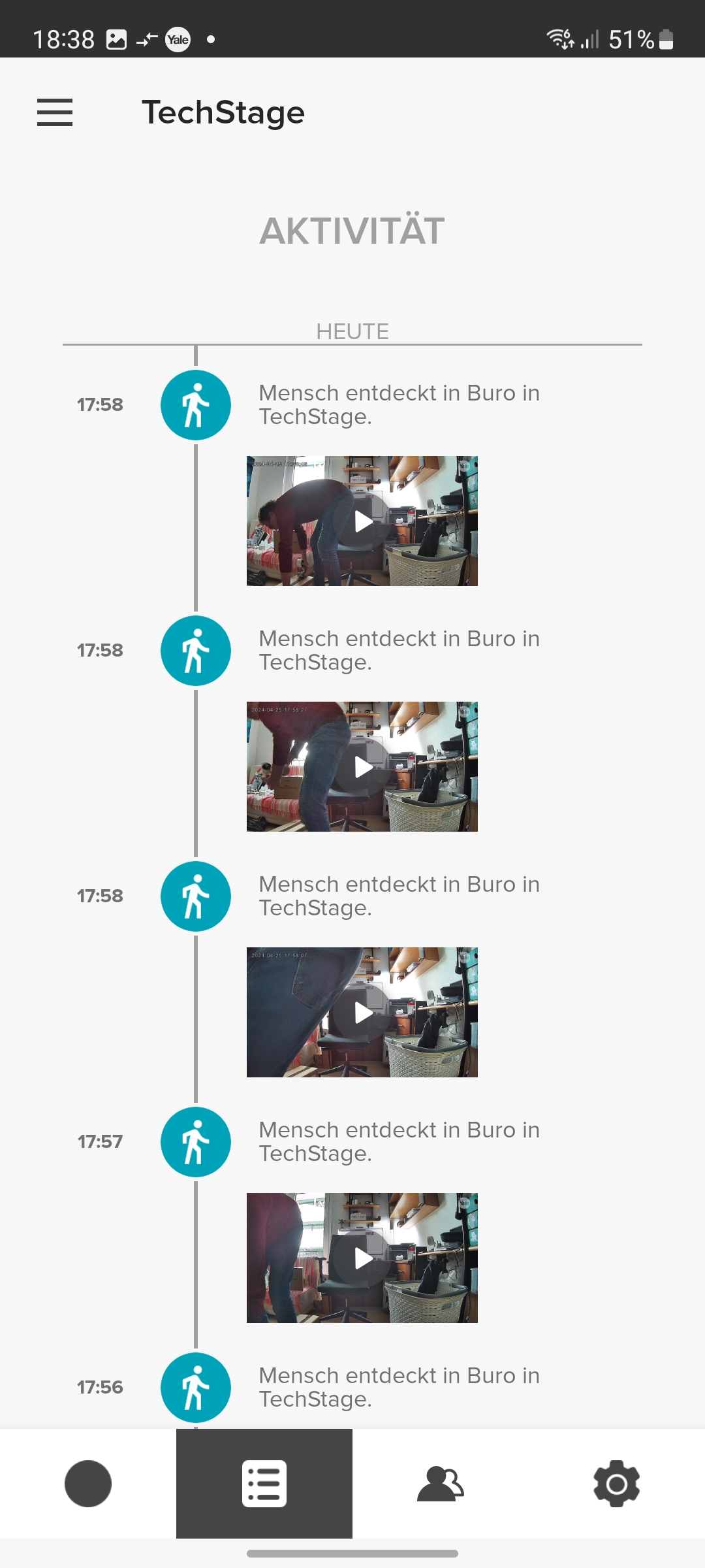 Der integrierte Speicher scheint nicht besonders groß zu sein. Yale konnte uns keine Angaben darüber machen. Doch werden Videos relativ schnell gelöscht, wobei die App dabei nicht chronologisch vorgeht und mit dem ältesten Video beginnt, sondern scheinbar zufällig vorgeht. So zeigt die App noch einige Videos vom ersten Tag der Inbetriebnahme, während jüngere Aufnahmen zum größten Teil gelöscht wurden.