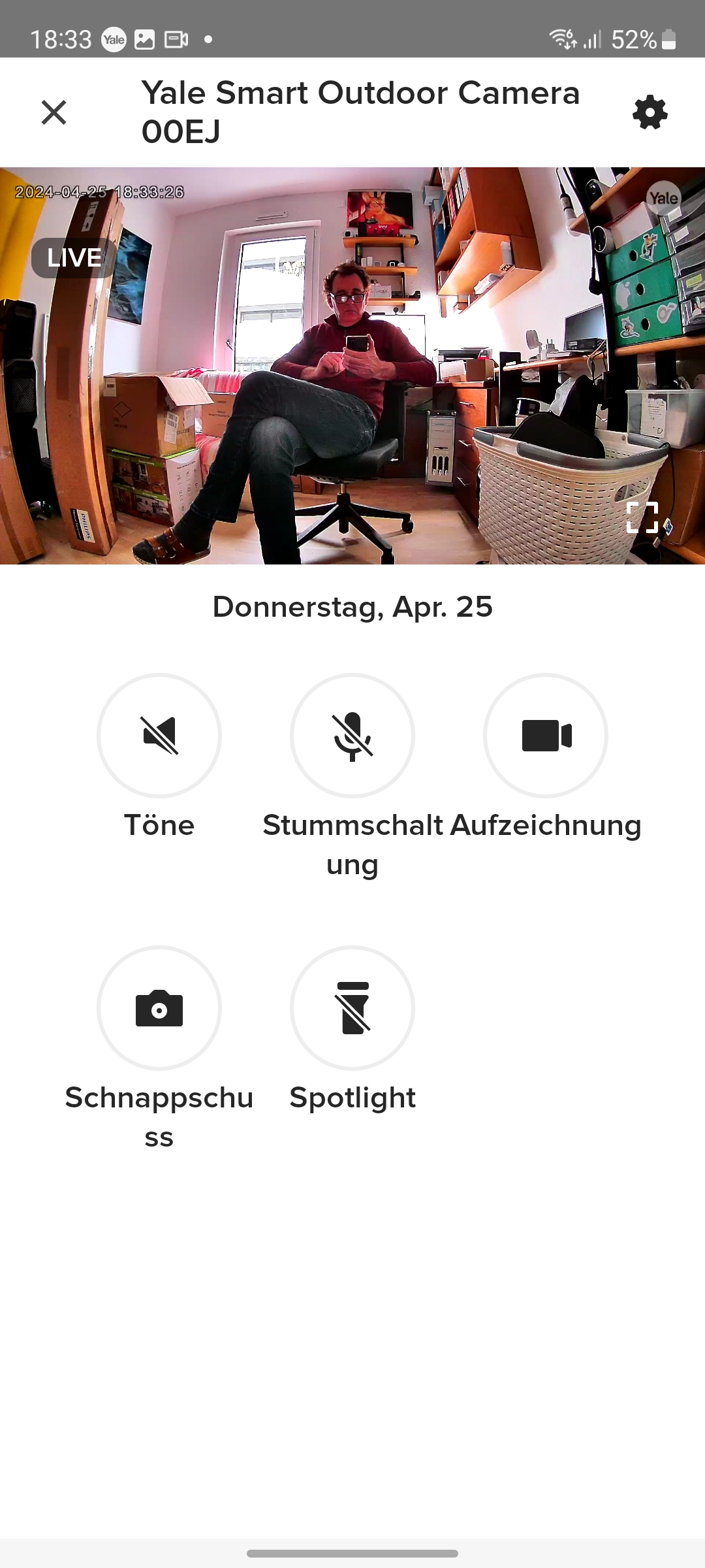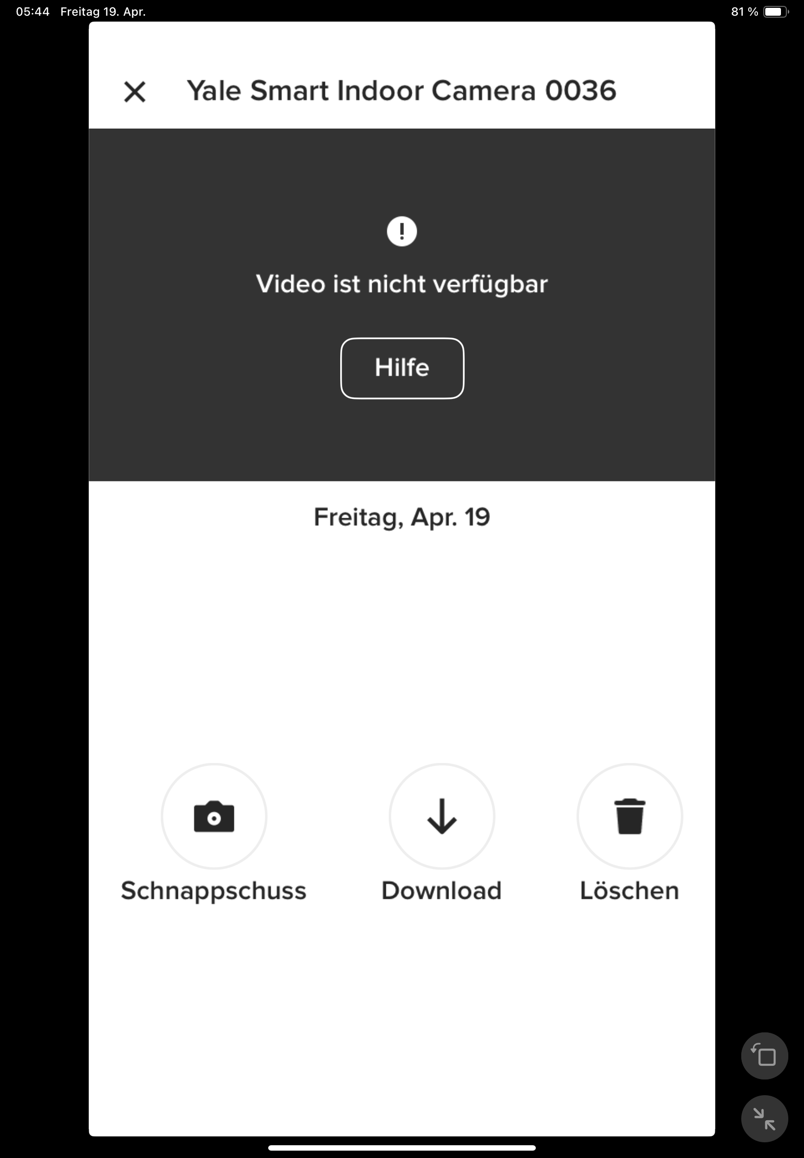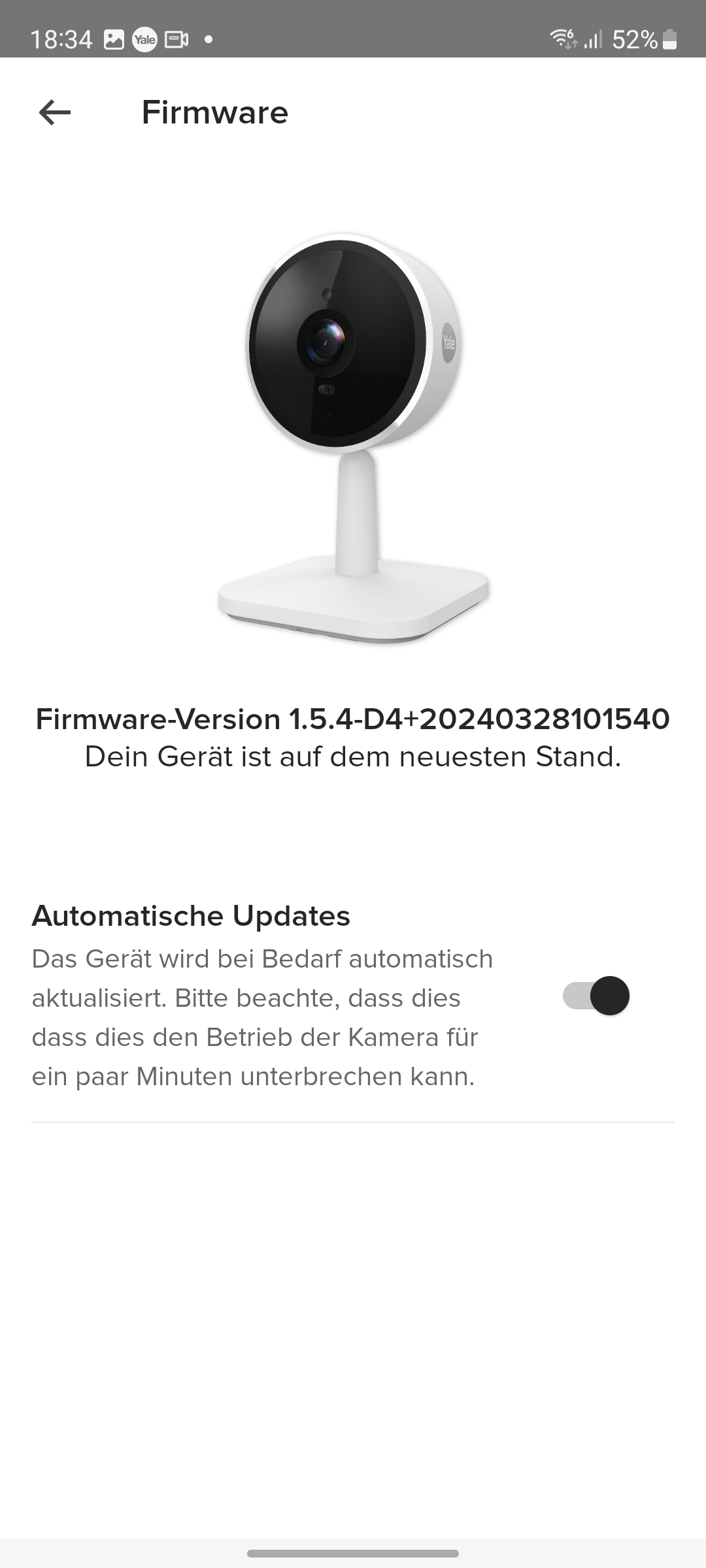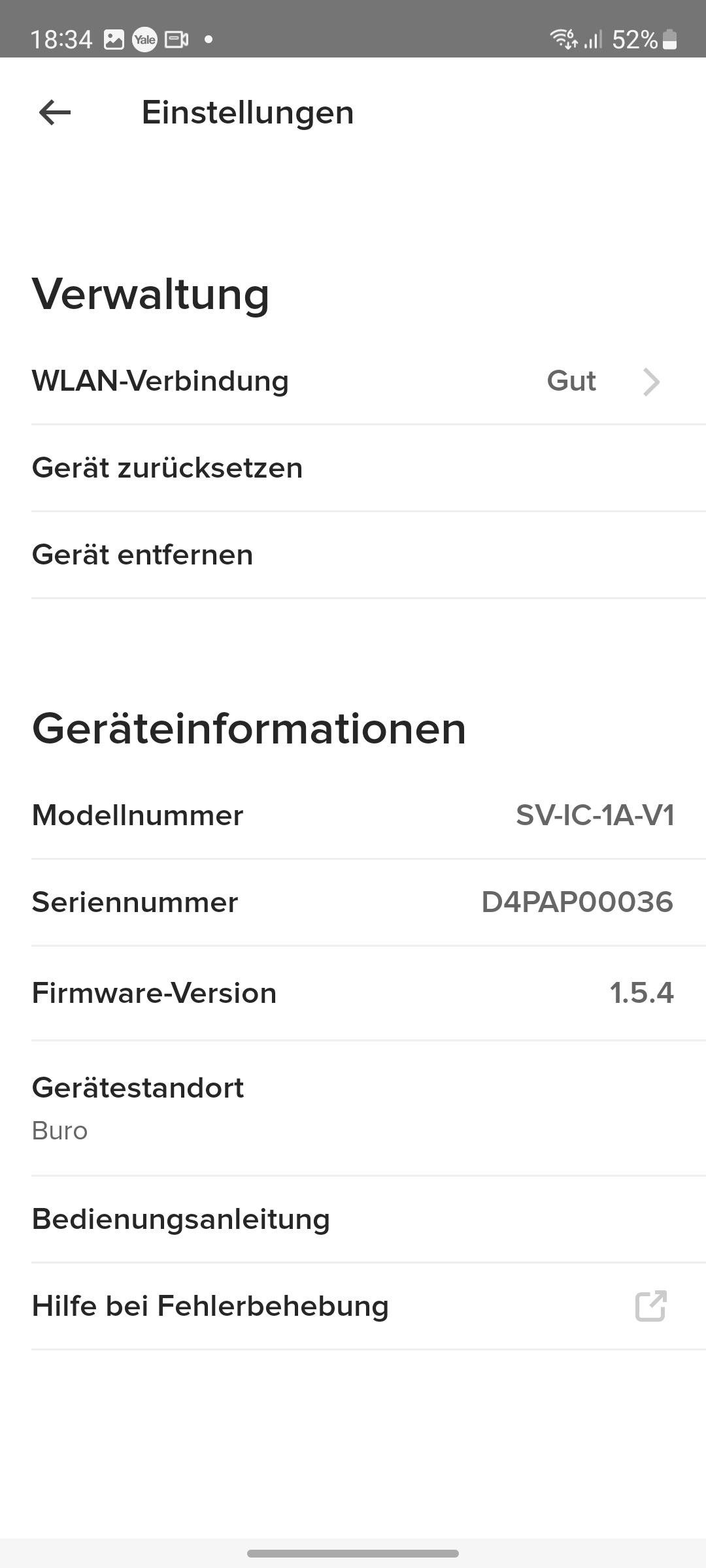 Der integrierte Speicher scheint nicht besonders groß zu sein. Yale konnte uns keine Angaben darüber machen. Doch werden Videos relativ schnell gelöscht, wobei die App dabei nicht chronologisch vorgeht und mit dem ältesten Video beginnt, sondern scheinbar zufällig vorgeht. So zeigt die App noch einige Videos vom ersten Tag der Inbetriebnahme, während jüngere Aufnahmen zum größten Teil gelöscht wurden.