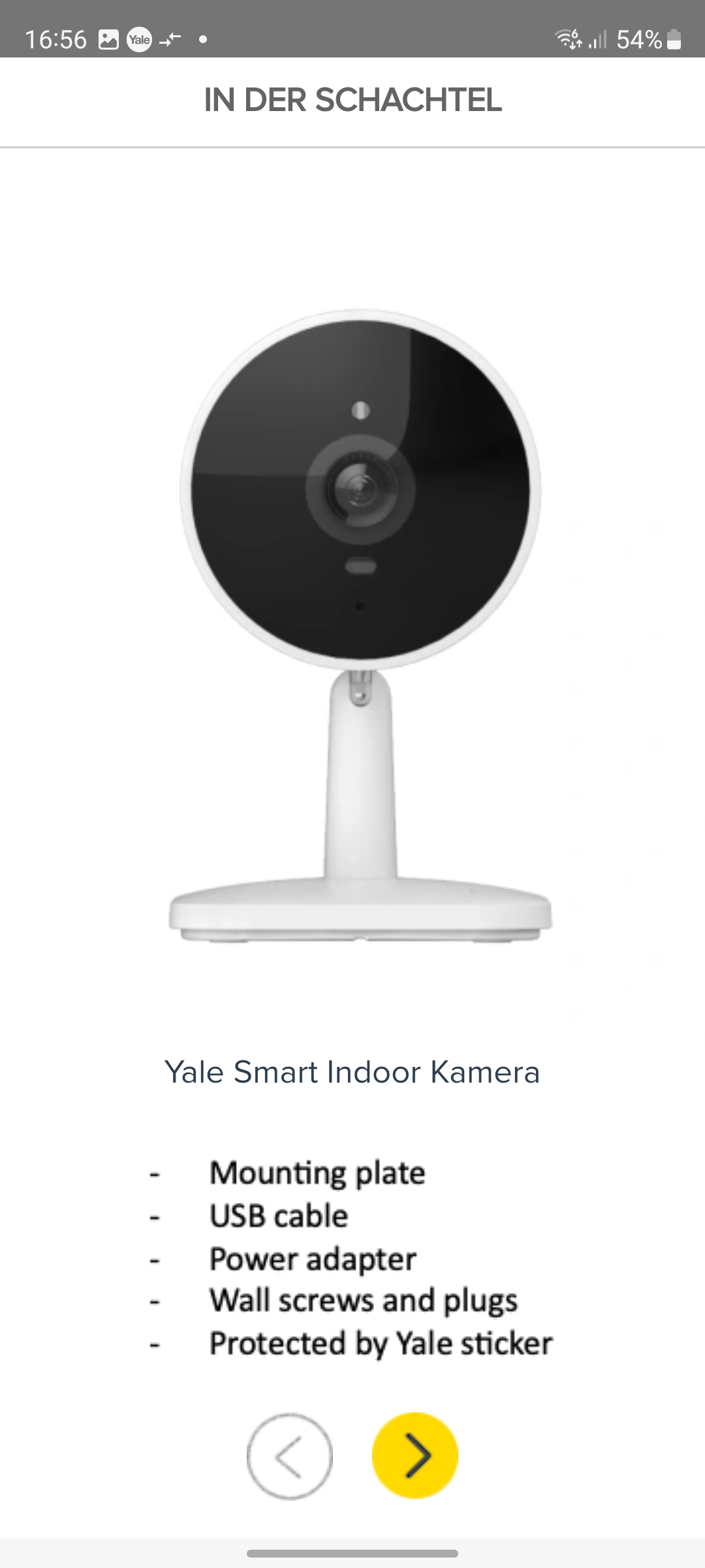 Im Lieferumfang der 106 Gramm schweren Smart Indoor Camera sind USB-C-Kabel, Netzteil sowie eine Halterung samt Schrauben und Dübeln für die Montage enthalten. Ein Handbuch gehört nicht zum Lieferumfang, lediglich eine Kurzanleitung. Sie enthält aber lediglich einen Hinweis auf die zur Inbetriebnahme nötigen App, sowie eine Konformitätserklärung und Angaben zur Garantie. Mit einer Höhe von 11,5 cm und einer Breite und Tiefe von jeweils 7 cm fällt die gut verarbeitete Yale-Überwachungskamera relativ kompakt aus. Noch kleinere Modelle bietet unsere Bestenliste Top 7: Die besten kleinen Überwachungskameras im Test – Babyphone inklusive.