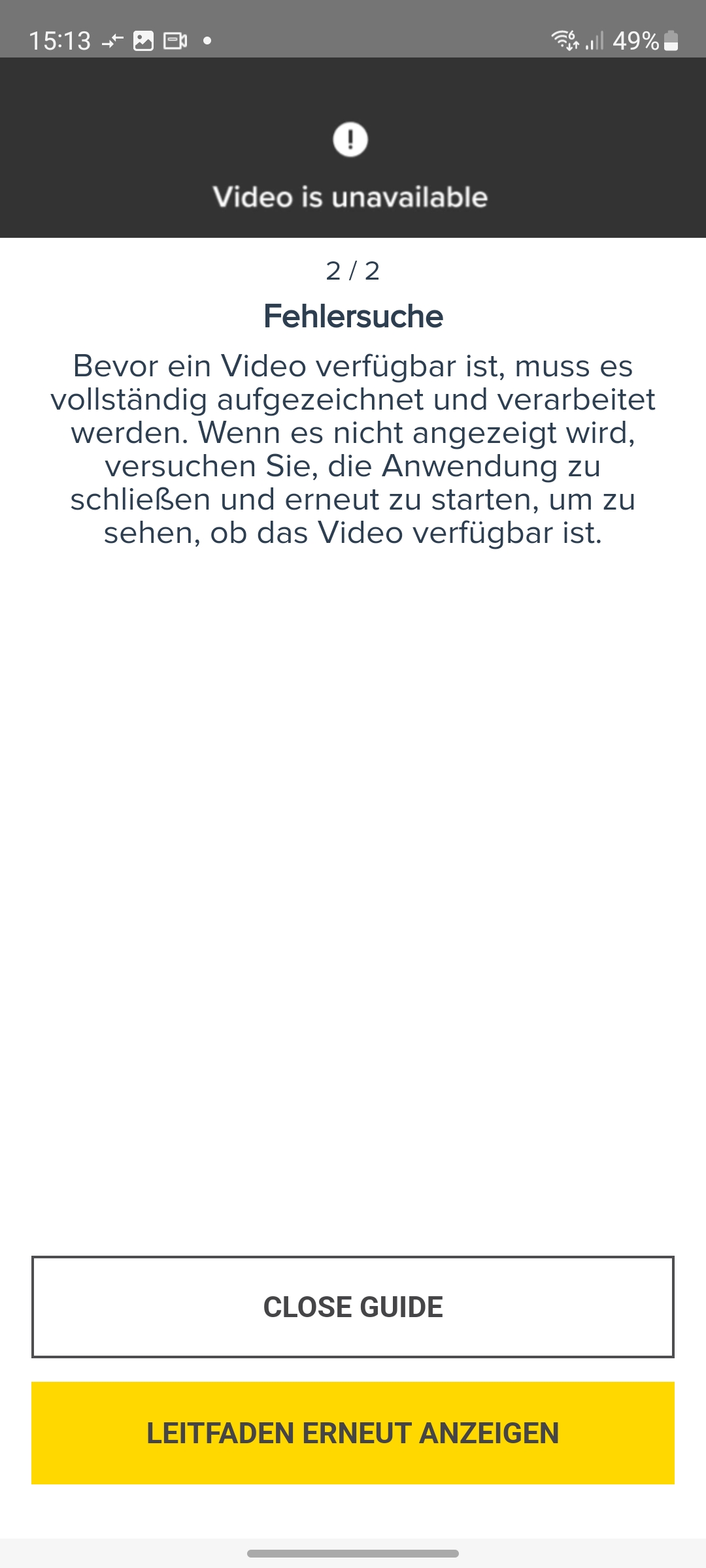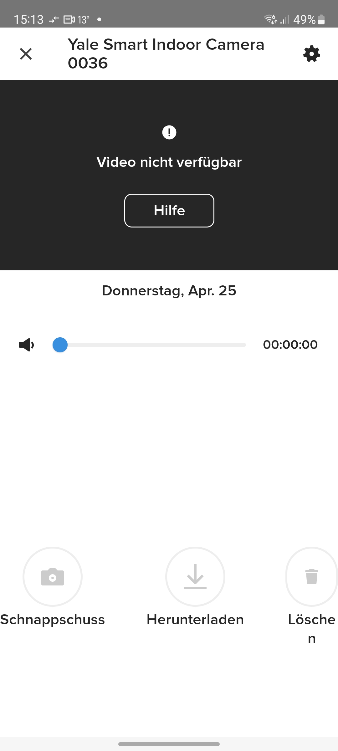 Auf der Startseite der Kamera zeigt Yale Home ein Vorschaubild des Livestreams mit Zeitangaben zum zuletzt registrierten Ereignis. Zu diesem gelangt man über die zweite Schaltfläche von links am unteren Bildschirmrand. Dort erscheint eine Liste von bislang aufgenommenen Videos, die entweder aufgrund einer Bewegungserkennung oder einer manuellen Aufnahme erzeugt wurden. Die Einträge enthalten zur besseren Unterscheidbarkeit auch ein entsprechendes Symbol sowie Angaben zum Aufnahmezeitpunkt. Klickt man auf ein Video aus der Ereignisliste, wird dieses abgespielt. Das gelingt im Test aber wie schon bei der kürzlich getesteten Yale Smart Outdoor Camera nur zuverlässig bei manuell aufgenommenen Videos. Bei Aufnahmen, die durch eine Bewegung ausgelöst wurden, dauert es im günstigsten Fall ein paar Sekunden, bis diese abgespielt werden. In einigen Fällen kommt es hingegen zu einer Fehlermeldung, mit dem Hinweis, dass das abgerufene Video womöglich noch nicht fertig verarbeitet sei. Auch zeigen sich Probleme bei der Aktualisierung der Ereignisliste. Wenn man etwa die Yale-Home-App auf einem weiteren Gerät installiert hat, tauchen neuere Videos nur auf, wenn man die App beendet und neu startet. Die App scheint nicht nur beim Zugriff auf eine Überwachungskamera Probleme zu bereiten, wie viele Anwender-Bewertungen im App Store und im Play Store zeigen. Dort berichten Anwender von Problemen in Verbindung mit dem smarten Türschloss Yale Linus.