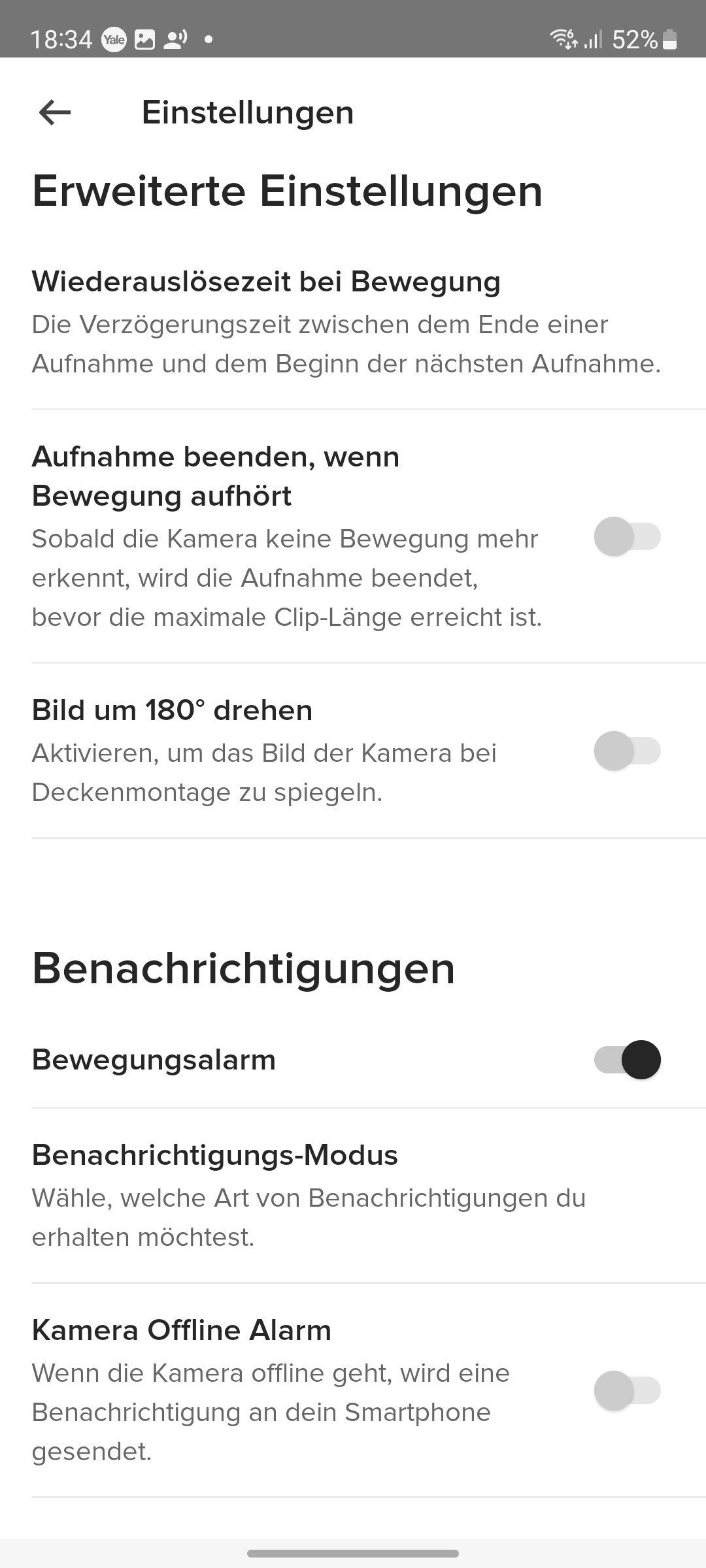 Benachrichtigungen erfolgen zeitnah per Push auf Smartphone oder Tablet. Anders als bei Reolink-Überwachungskameras bietet die Yale-Variante jedoch keine Möglichkeit, Benachrichtigungen per E-Mail zuzustellen.