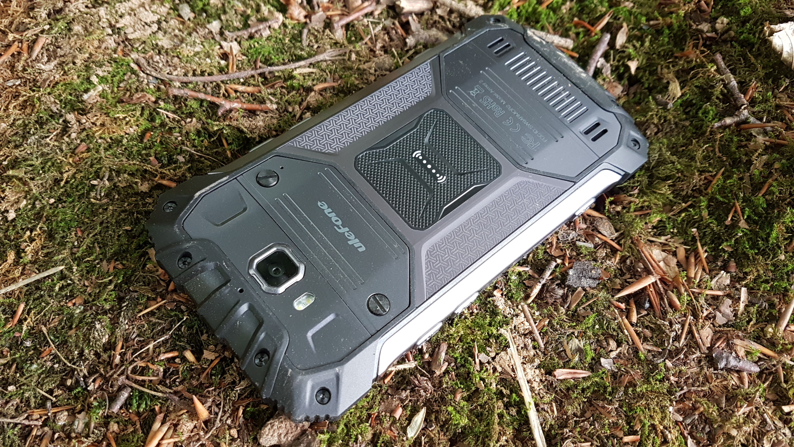 Mit den Abmessungen 159 × 78,3 × 14,5 Millimeter und einem Gewicht von 270 Gramm ist das Ulefone Armor 2 eine gute Ecke größer und schwerer als das kürzlich von uns getestete Outdoor-Smartphone Cat S41 (Testbericht) mit selber Displaydiagonale und selber IP-Zertifizierung. Das liegt vor allem daran, dass neben stabilem Kunststoff auch Metall beim Armor 2 zum Einsatz kommt. Was das Design angeht, könnte es sich um das Handy eines Klingonen aus der neuen Star-Trek-Serie Discovery handeln – das Ulefone Armor 2 mutet sehr futuristisch an. Ein Klingone wäre wohl auch mit dem Gefühl von Wertigkeit und Stabilität zufrieden, welches das Ulefone Armor 2 ausstrahlt und vermittelt.