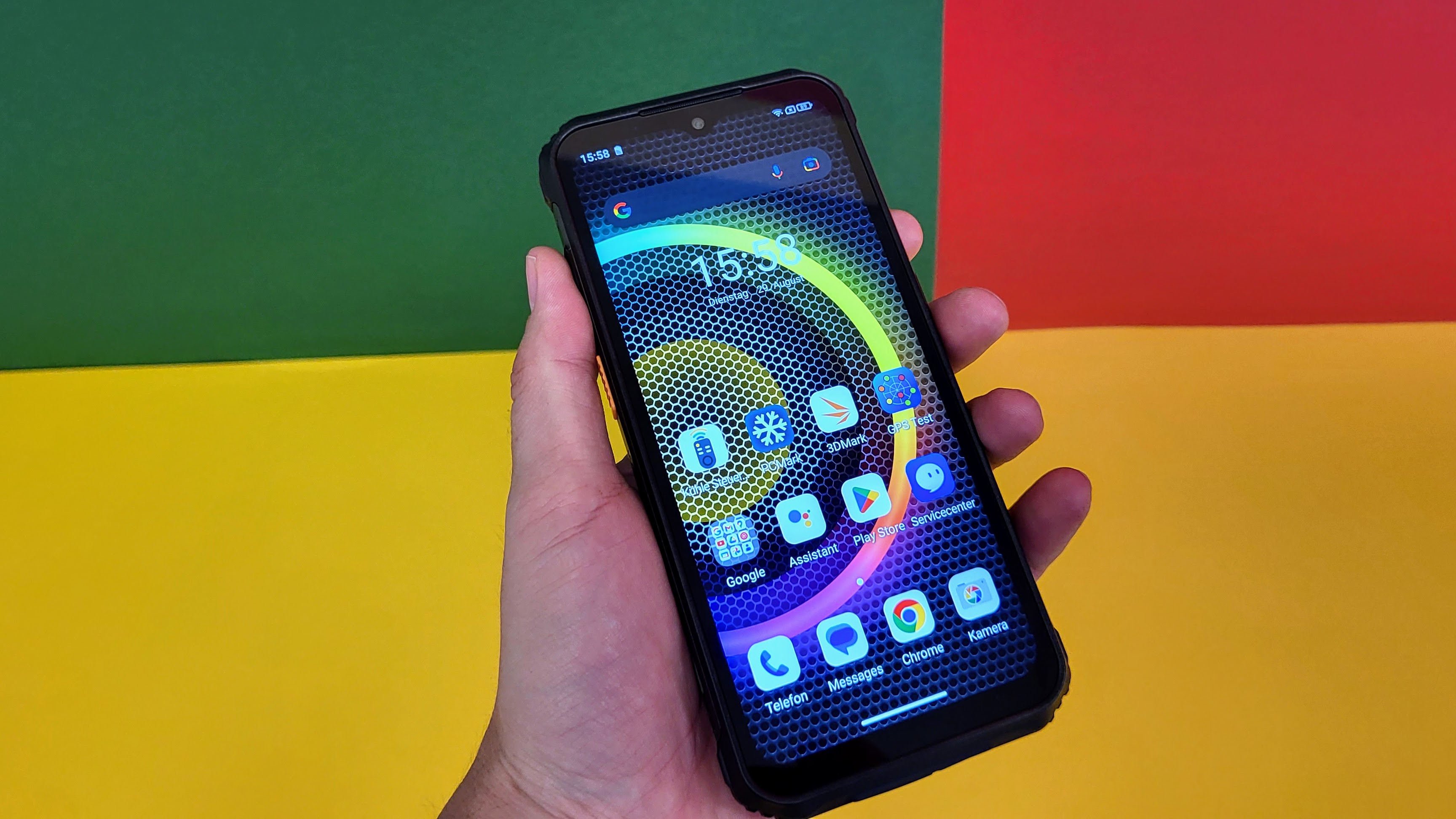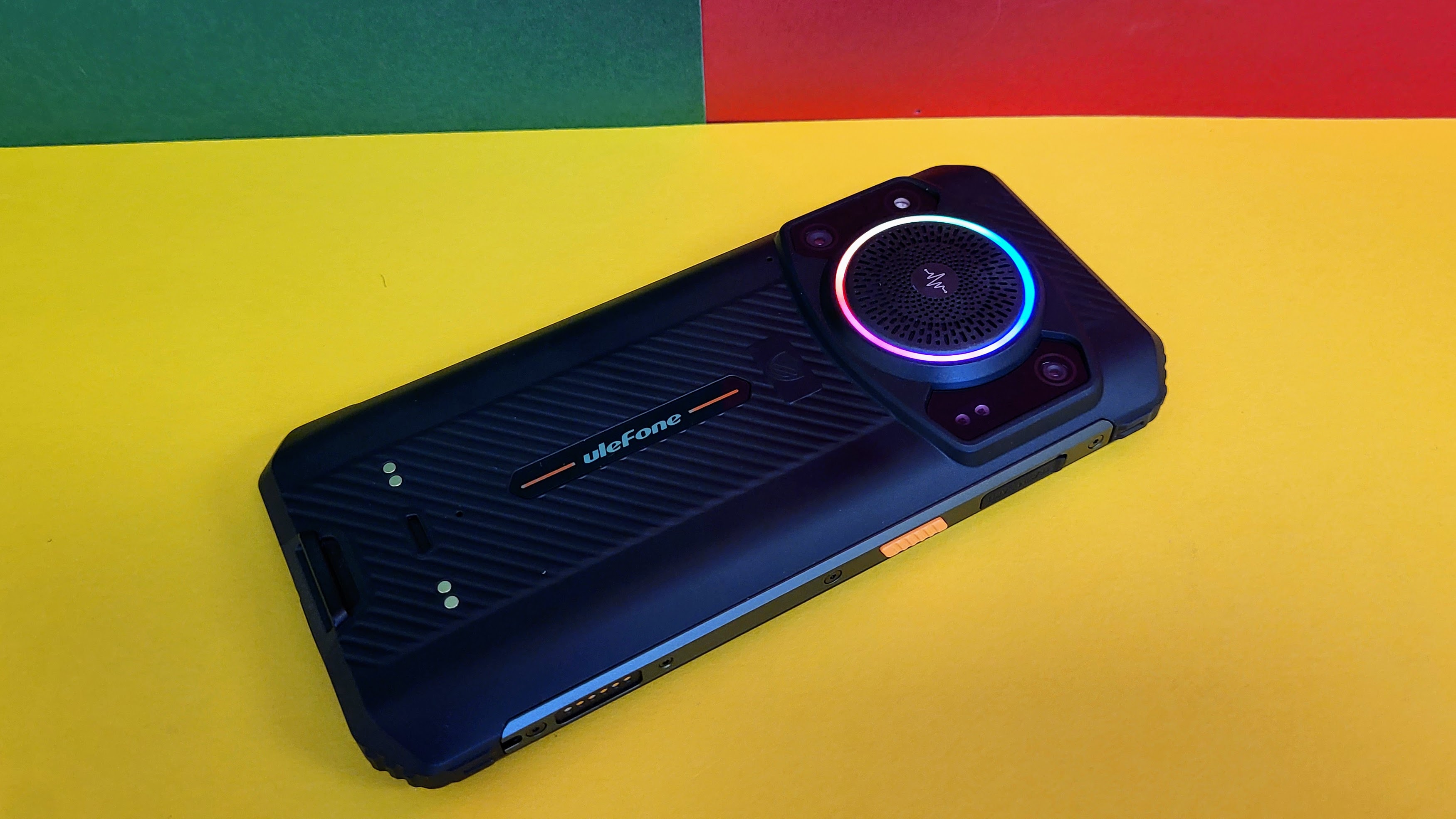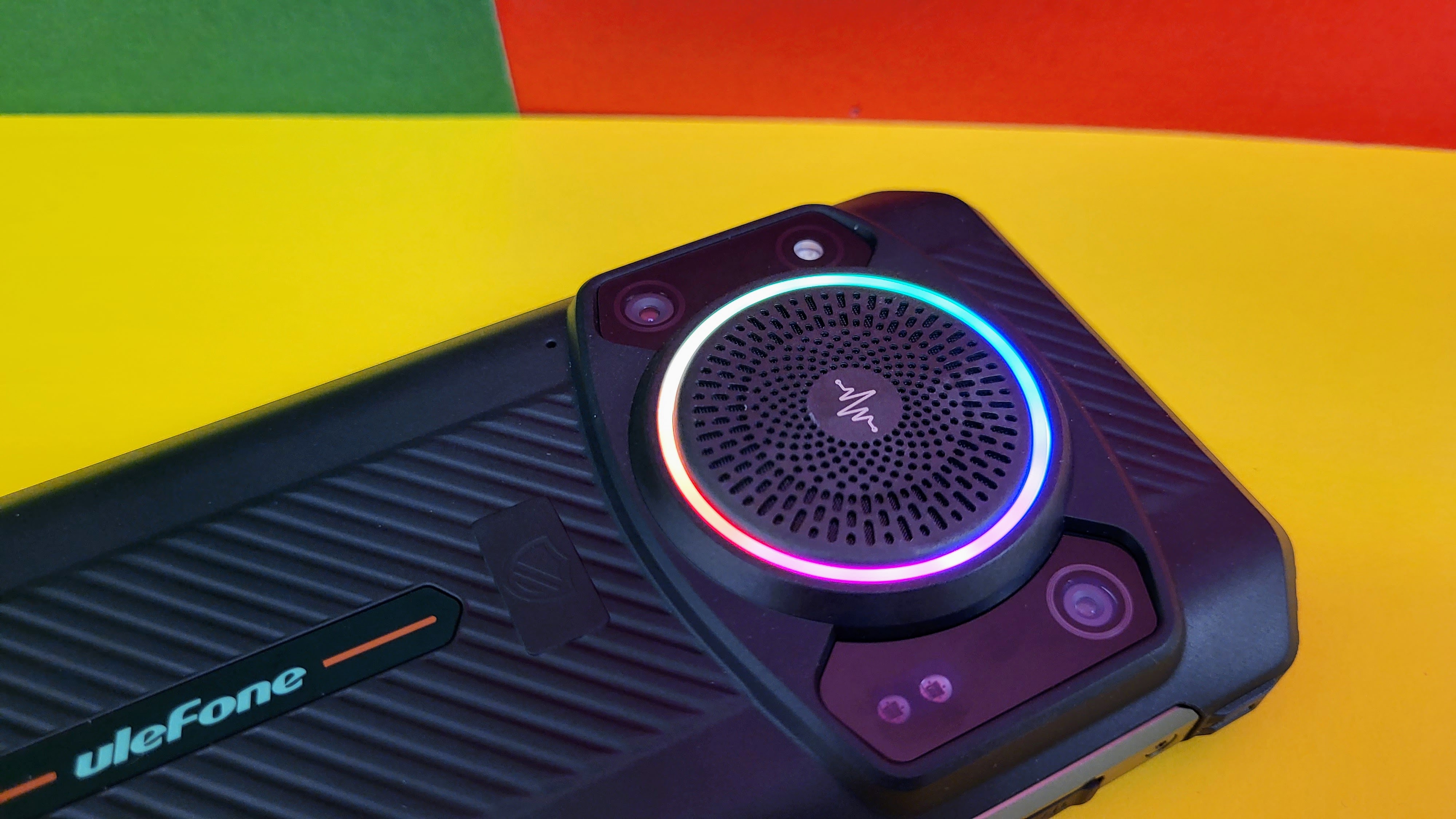 Eine der Besonderheiten ist der Lautsprecher mit RGB-Beleuchtung auf der Rückseite. Laut Ulefone erreicht dieser bis zu 122 dB. Laut ist der Speaker in der Tat, der Klang ist aber eher mittelmäßig – wenn auch besser, wie anfangs befürchtet. Mit einem wasserfesten Bluetooth-Lautsprecher (Ratgeber) kann das Gerät aber definitiv nicht mithalten. Dafür sind die Höhen zu stark übersteuert und die Tiefen zu schwach ausgeprägt. Außerdem gehört es sich einfach nicht, mit dem Handy laut Musik zu hören.