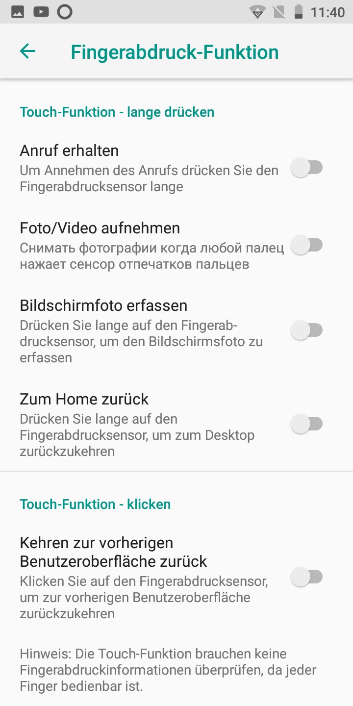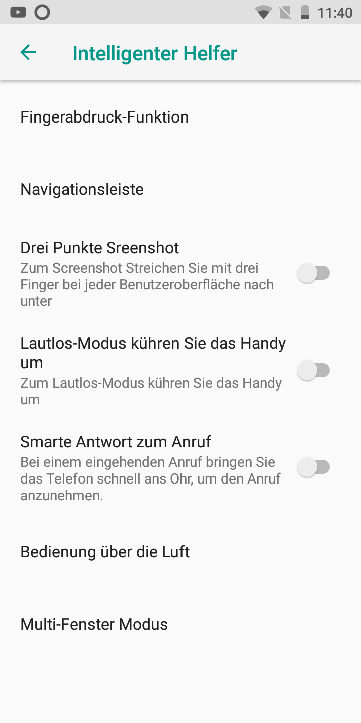 Ulefone nimmt einige optische und softwareseitige Anpassungen am installierten Android 8.1 Oreo vor. Die optischen Änderungen beschränken sich auf die Systemeinstellungen, wo die Icons nicht einem Stock-Android entsprechen. Die eigentliche Benutzeroberfläche scheint von Anpassungen verschont zu sein. Unter der Option „Intelligenter Helfer“ kann der Nutzer unter anderem den Fingerabdrucksensor mit diversen Funktionen belegen, On-Screen-Navigationstasten aktivieren und die Möglichkeit Screenshots mit einer Multitouch-Geste zu machen einschalten. Stand der Sicherheitsupdates war zum Testzeitraum der 5. April 2018.