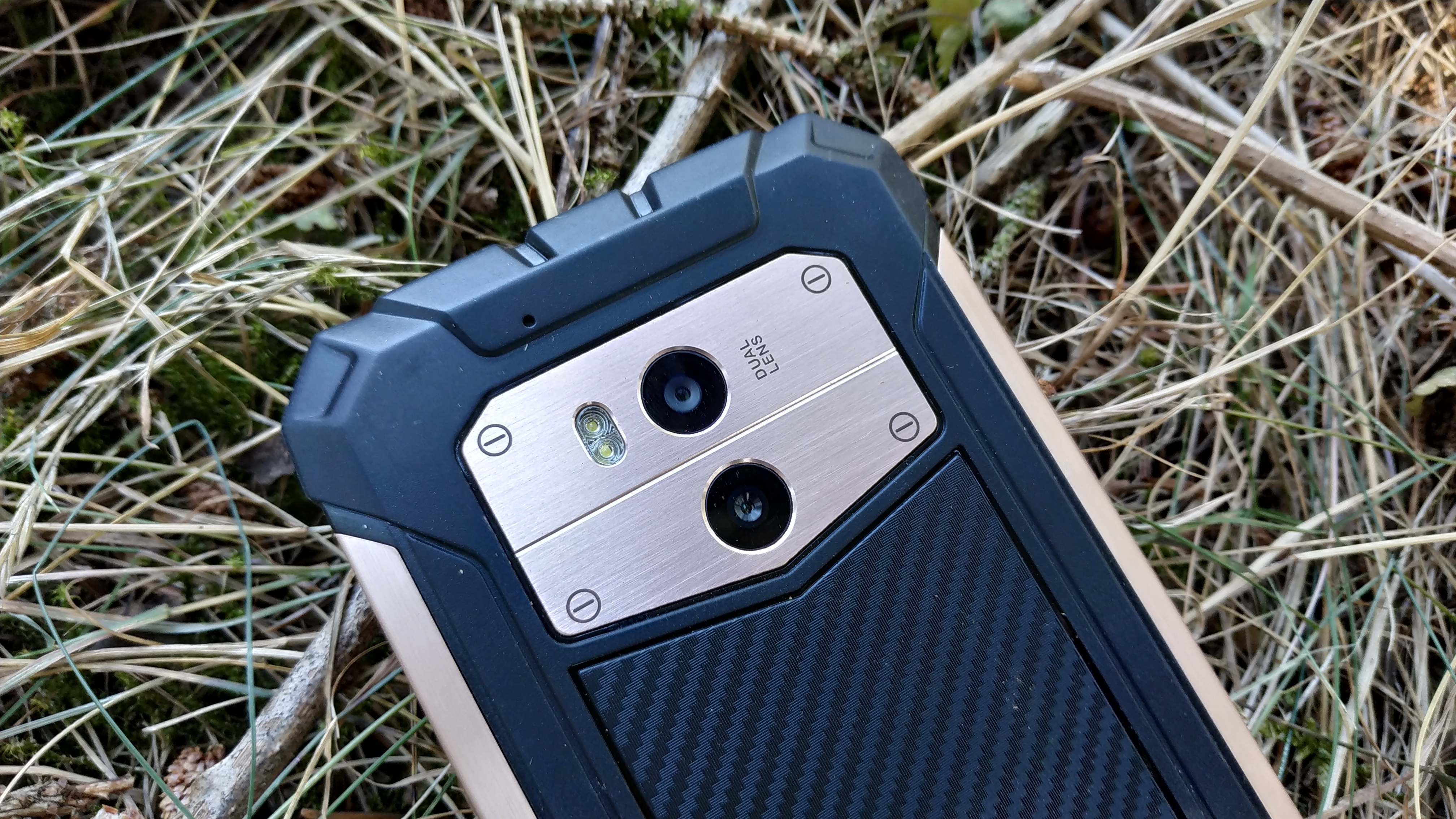 Die Dualkamera hinten hat ihren Platz mittig weit oben. Sie ist von einem Metallelement eingefasst. Rechts unten hat der Lautsprecher seinen Platz. Auf der Vorderseite unterhalb des Displays befinden sich drei berührungsempfindliche Touch-Buttons. Die Frontcam sitzt oben rechts, direkt rechts daneben eine Benachrichtigungs-LED. Das Armor X liegt gut in der Hand und vermittelt ein Gefühl von Wertigkeit und Robustheit.