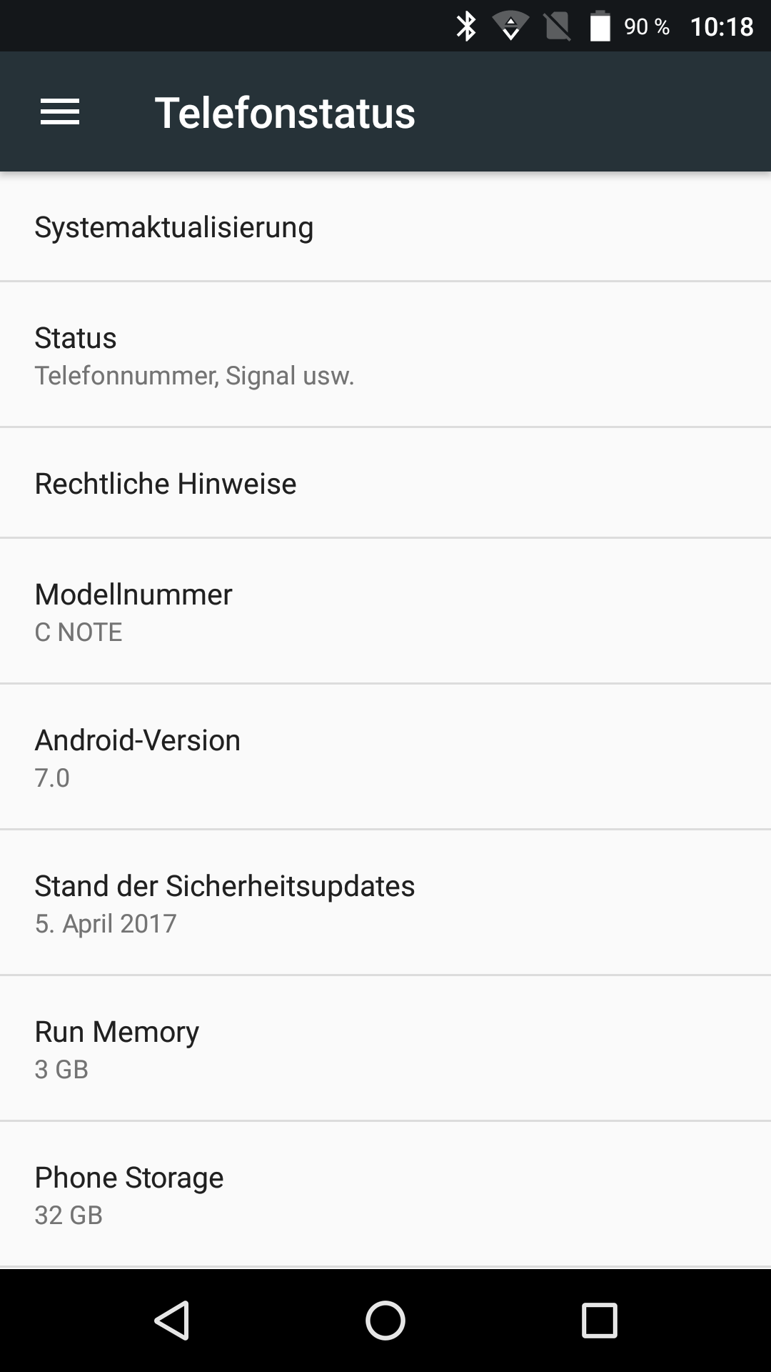 Auf dem C Note läuft Android 7 ohne größere Anpassungen von Herstellerseite. In den Systemeinstellungen finden sich nur einige speziell auf das Handy zugeschnittene Funktionen. Es gibt Einstellungsmöglichkeiten die Farbtemperatur und die Benachrichtigungs-LED betreffend und eine Option, um das Gerät mit einem "Double Tap" aus dem Standby zu holen. Wie es mit zukünftigen Updates auf neuere Android-Versionen aussieht, ist schwer zu sagen. Im dreiwöchigen Testzeitraum bekam das C Note zwei System-Updates vom Hersteller, das ist diesbezüglich zumindest ein gutes Zeichen.