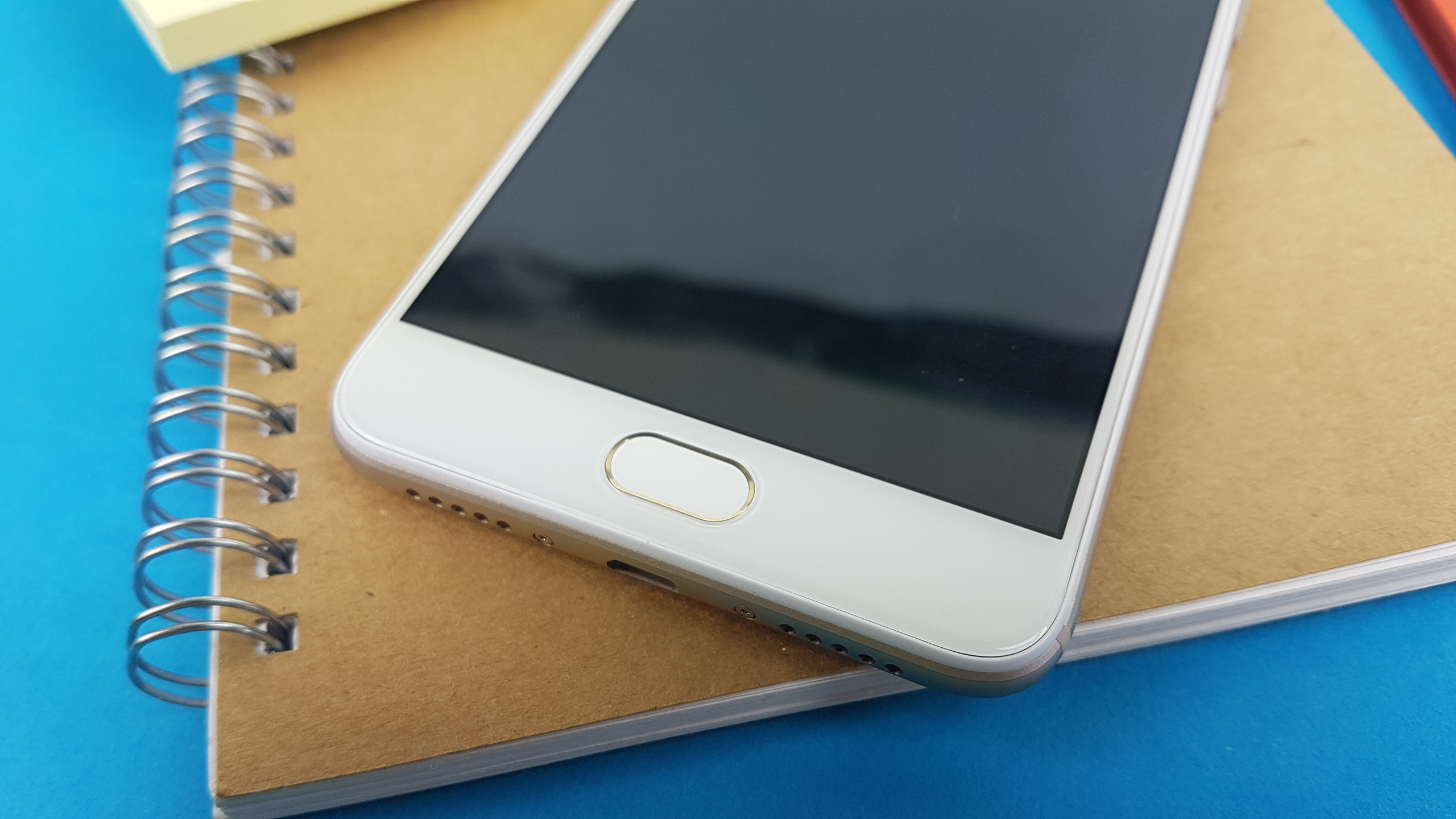 Unterhalb des Displays befindet sich der Home-Button, der gleichzeitig der Fingerabdruckscanner ist. Links und rechts davon sitzen, leider ohne Beleuchtung und ohne aufgedruckte Symbole, die berührungsempfindliche Android-Bedientasten. Hier handelt es sich aber um die alte Belegung “Zurück” und “Menü” statt “Zurück” und “Zuletzt genutzte Anwendungen”, wie mittlerweile üblich. Die zuletzt genutzten Anwendungen werden hingegen durch gedrückt halten des Home-Buttons aufgerufen. Warum immer noch Hersteller aus China die alte Belegung nutzen, ist uns ein Rätsel. Die Menü-Taste hat in vielen Anwendungen keinerlei Funktion mehr und ist somit die meiste Zeit nutzlos. Wenigstens lassen sich die Soft-Touch-Tasten unterhalb des Displays in den Einstellungen des Smartphones mit On-Screen-Buttons in der aktuellen Anordnung “Zurück”, “Home” und “Zuletzt genutzte Anwendungen” austauschen.