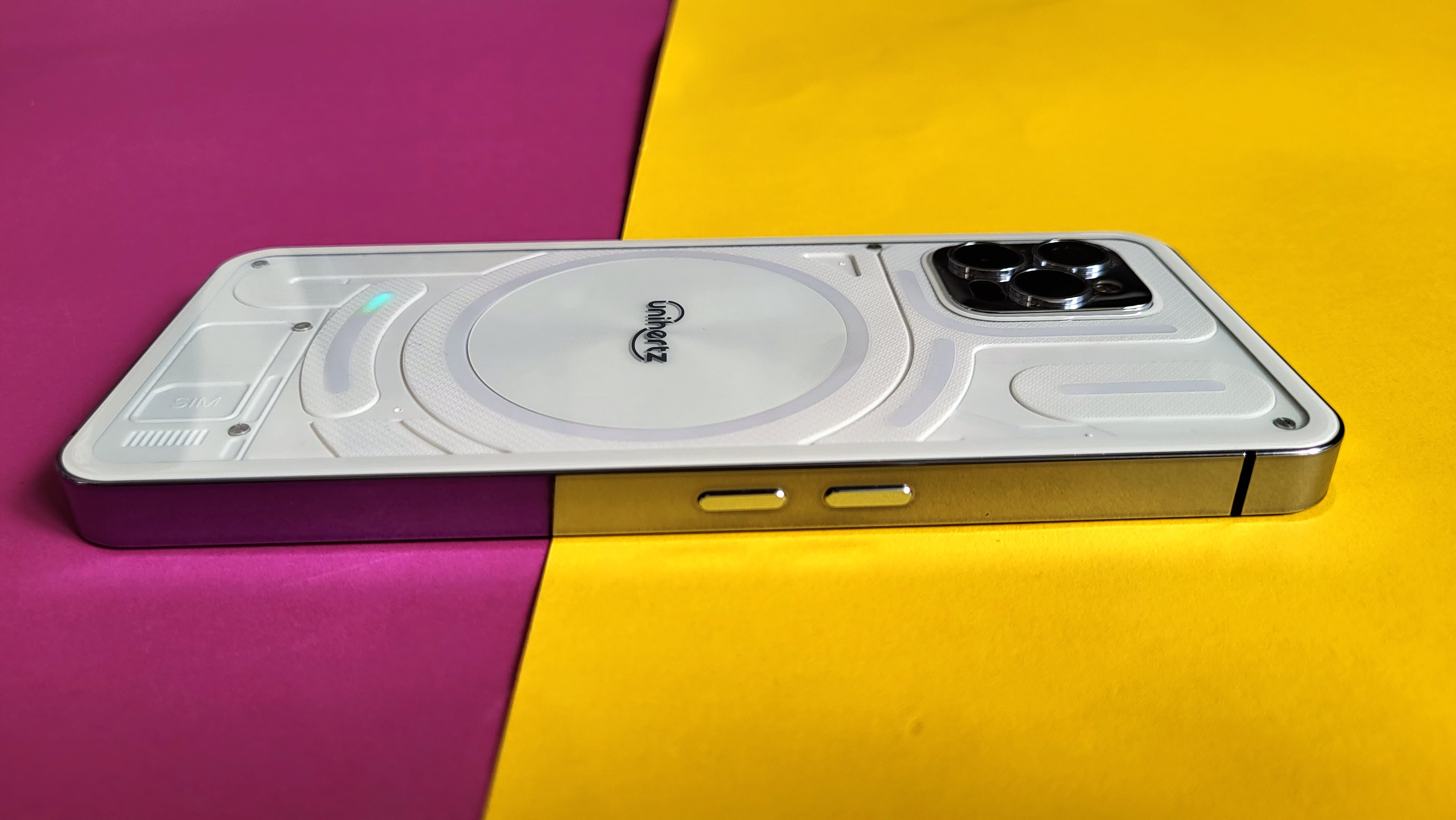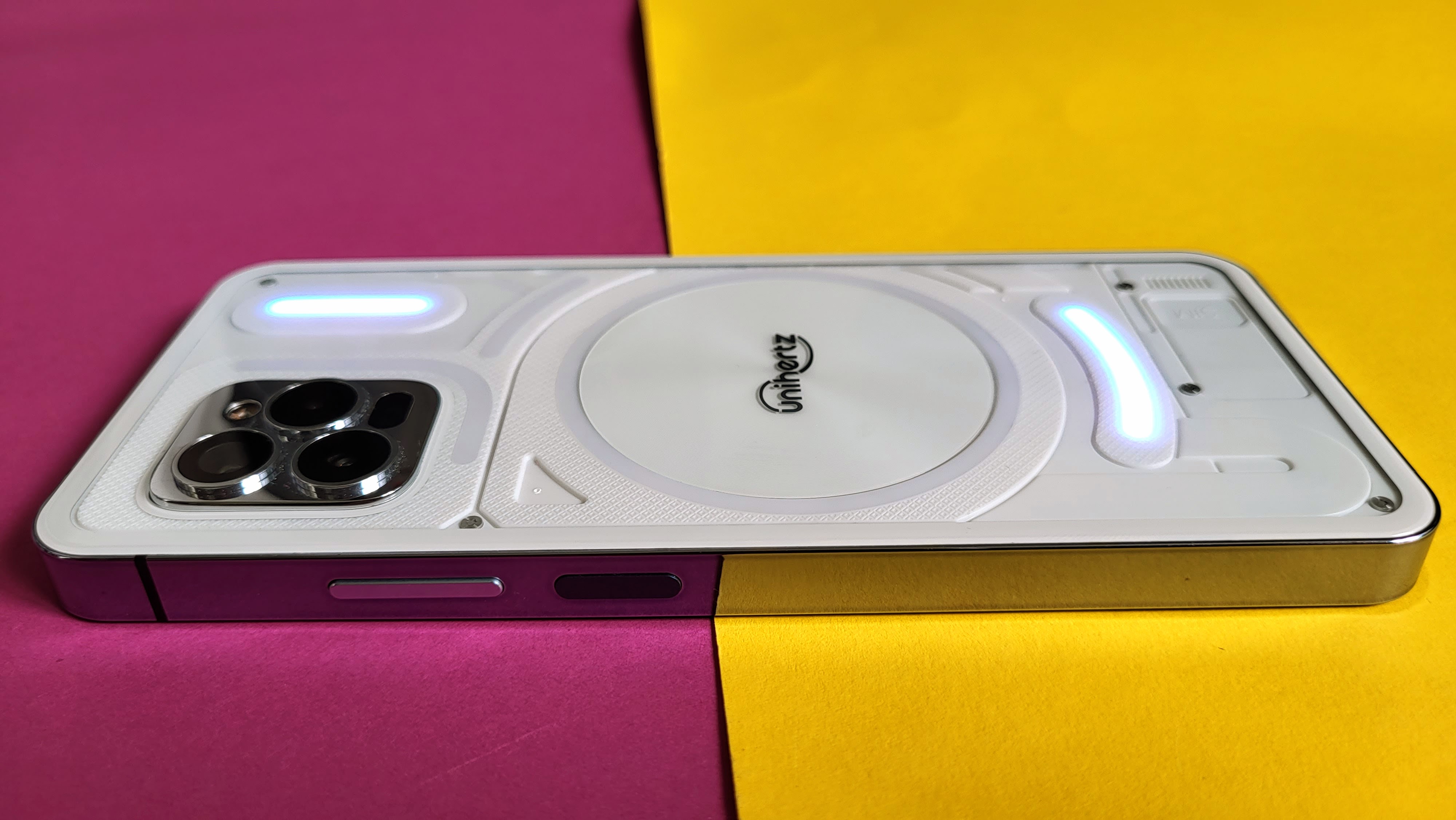 Das Design des Unihertz Luna ist alles andere als gewöhnlich. Das kantige Mobiltelefon bietet eine transparente Rückseite mit integrierter RGB-Beleuchtung. Die Rückseite unter der transparenten Fläche bekommen Käufer wahlweise in Weiß oder Schwarz. Das Luna erinnert damit optisch stark ans gehypte Nothing Phone (Testbericht) aus dem Vorjahr.