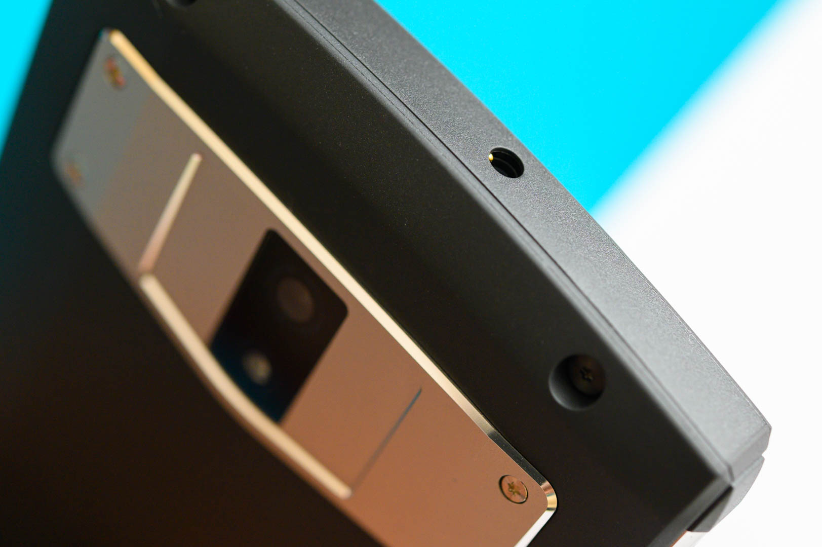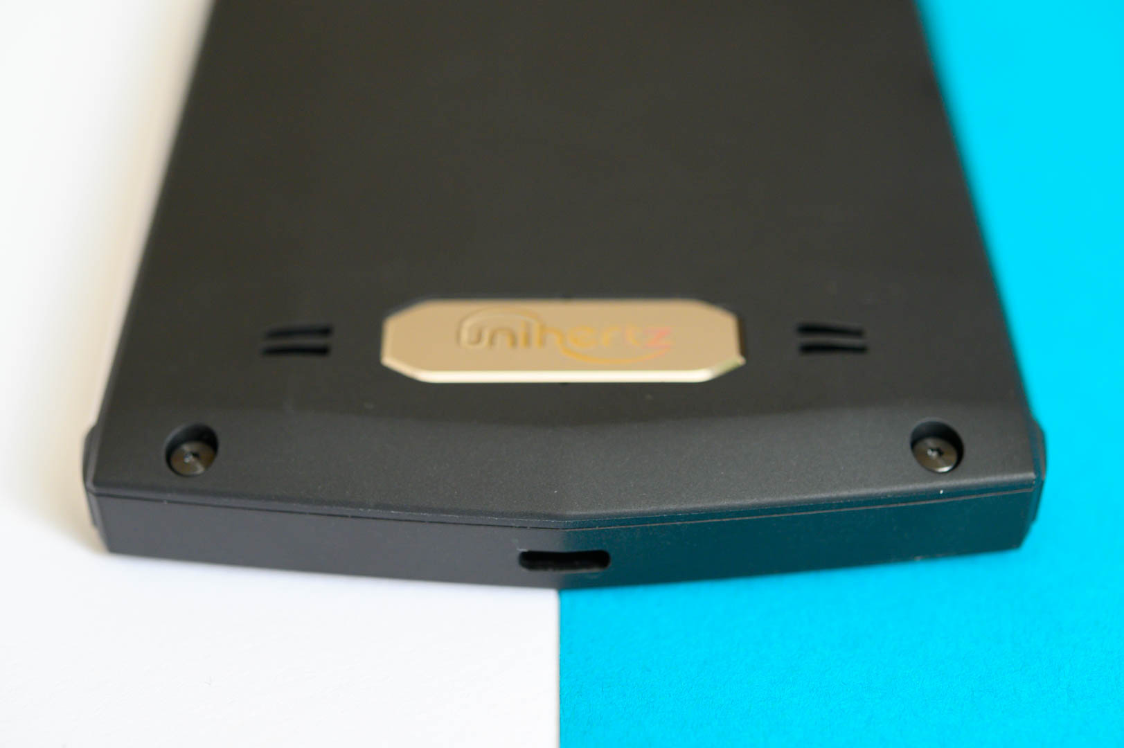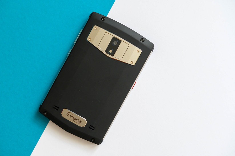 Unihertz verbindet bei dem nach IP67-Zertifizierung wasser- und staubgeschützten Gehäuse des Titan Kunststoff- mit Metallbauteilen. Die Längsseiten und die darin eingesetzten Druckknöpfe sowie die Kameraeinfassung hinten bestehen aus Aluminium, der Rest aus Kunststoff mit Softtouch-Oberfläche. Die Rückseite ist dennoch nicht so griffig wie bei Blackberry und durch den leichten Überstand am Rahmen noch dazu unangenehm scharfkantig. Am Kopfende befindet sich ein 3,5-mm-Klinkenanschluss, am Fußende ein USB-C-Port. Durch seine bullige Erscheinung macht das Titan zwar einen robusten, aber keinen sonderlich hochwertigen Eindruck.
