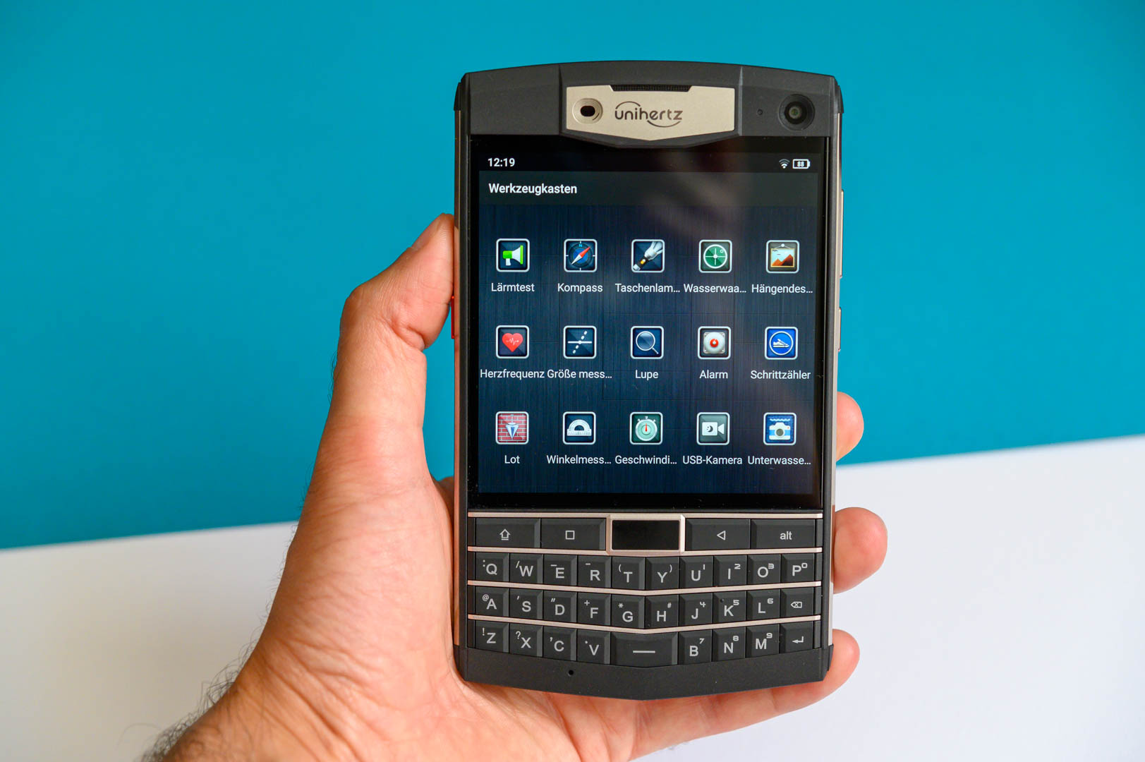 Und für die dafür nötige Erdanziehung ist gesorgt: Das Unihertz Titan bringt satte 308 – in Worten: Dreihundertacht! – Gramm auf die Waage. Es ist damit mehr als 100 Gramm schwerer als das Blackberry-Vorbild und viele andere aktuelle und ausladende Smartphones – kurz: der Titan macht seinem Namen alle Ehre. Das übrigens auch bei der Dicke von 17 Millimeter, die sicherlich den ein oder anderen Käufer die um die Jahrtausendwende modischen, weit geschnittenen Hosen zurückwünschen lässt.