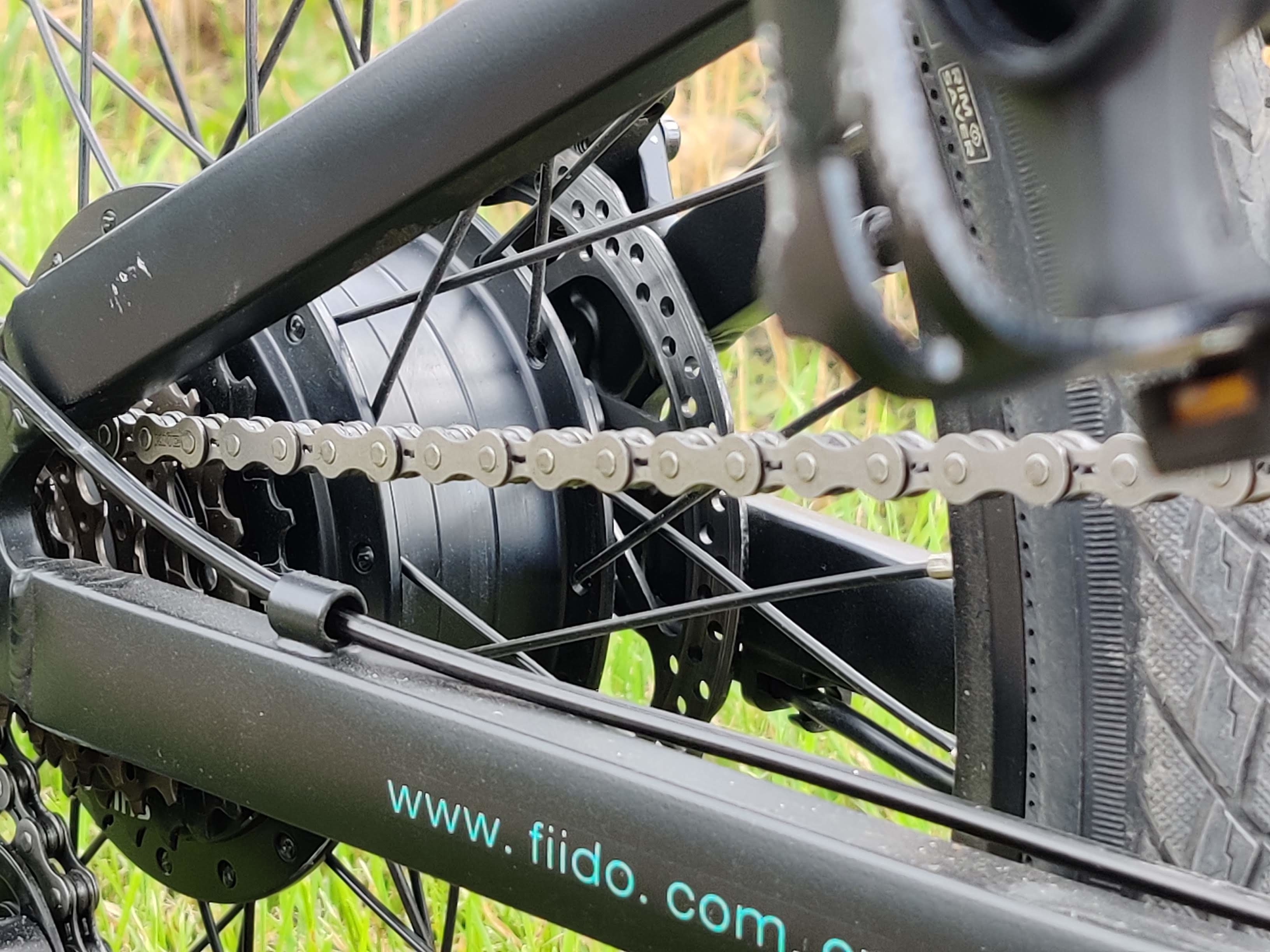 Das Fiido D4S bietet dank einer einfachen Shimano-Schaltung sechs Gänge. Für steile Anstiege hätte der niedrigste Gang gerne etwas tiefer gehen können. Der höchste Gang sorgt auch bei 25 Kilometer pro Stunde noch für eine angenehme Trittfrequenz.
