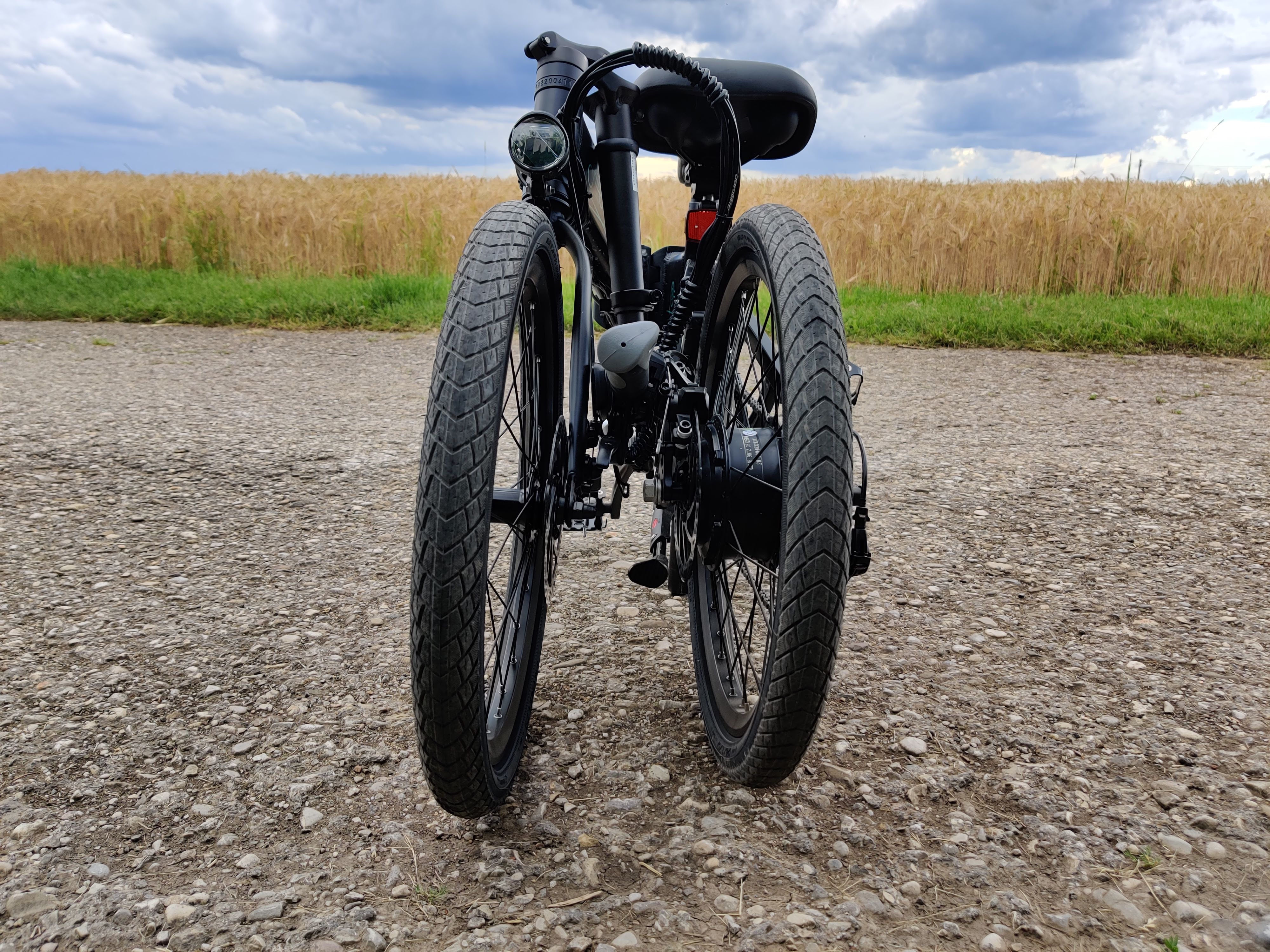 Das Fahrgefühl ist fantastisch. Das liegt zum einen an der oben erwähnt hohen Ergonomie und an den großen 20-Zoll-Rädern. Zudem sitzt die Lenkstange für ein Klapprad recht fest, beim Fahren wackelt sie kaum. Der Rollwiderstand ist dank der schmalen Reifen gering und die Kurvenlage fühlt sich sicher an. Der Sattel ist groß und weich. Das mag nicht jedermanns Sache sein, das Gesäß und den Rücken schont es allemal.