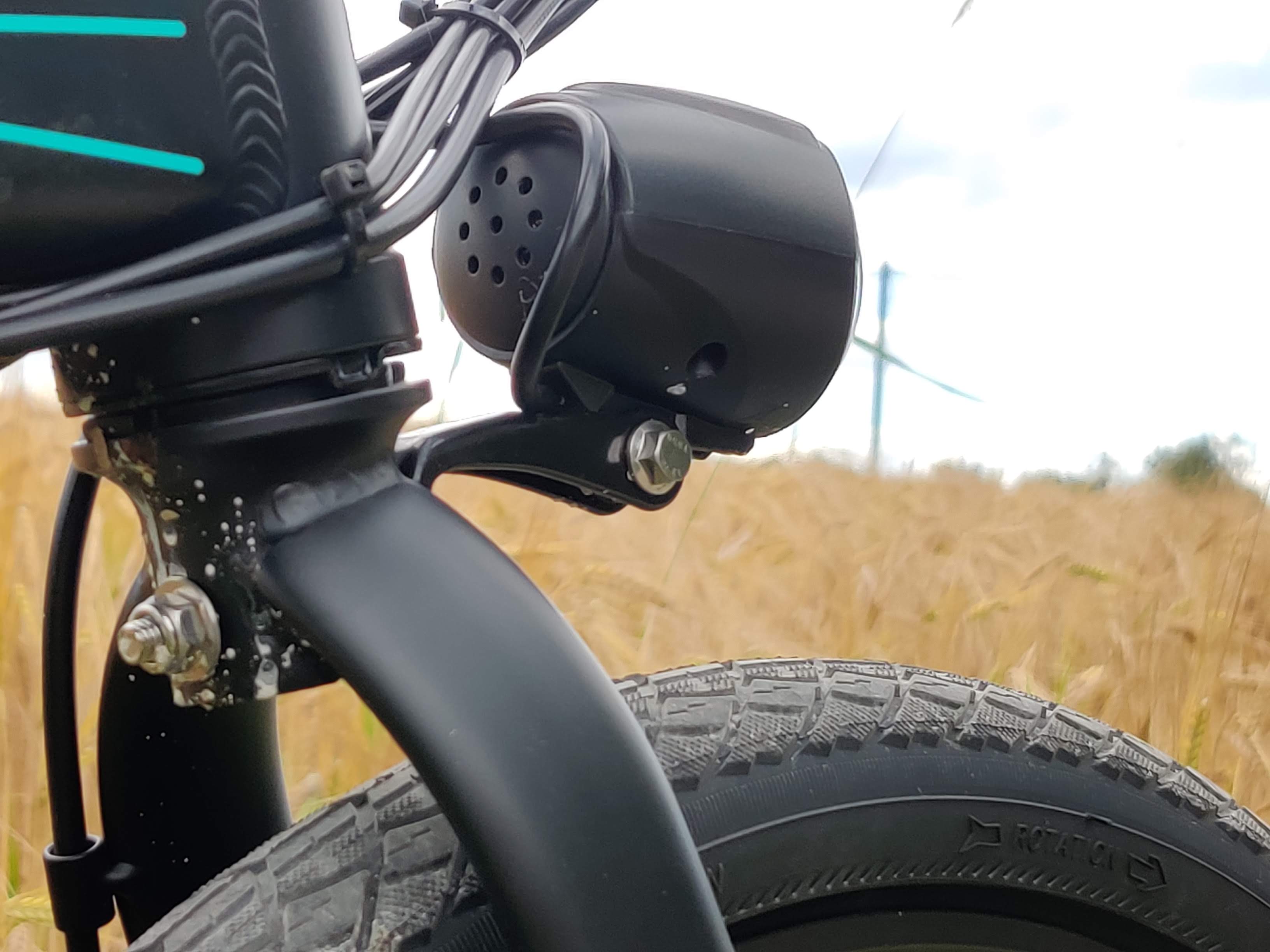 Zu den Ausstattungsmerkmalen gehört eine an den Hauptakku angeschlossene Frontleuchte, die sich entsprechend mit dem Bike ein- und ausschaltet. Optional kann der Fahrer sie am Fahrradcomputer deaktivieren. Ein selbstleuchtendes Rücklicht gibt es nicht, dem D4S liegt lediglich ein Reflektor bei. Das müsste für wenige Euro nachgekauft werden. Auch Schutzbleche liegen dem Bike nicht bei. Die elektrische Hupe sollte man auf deutschen Straßen tunlichst nicht betätigen, sie ist nicht erlaubt. Am Lenker ist jedoch ausreichend Platz für eine einfache Fahrradglocke.