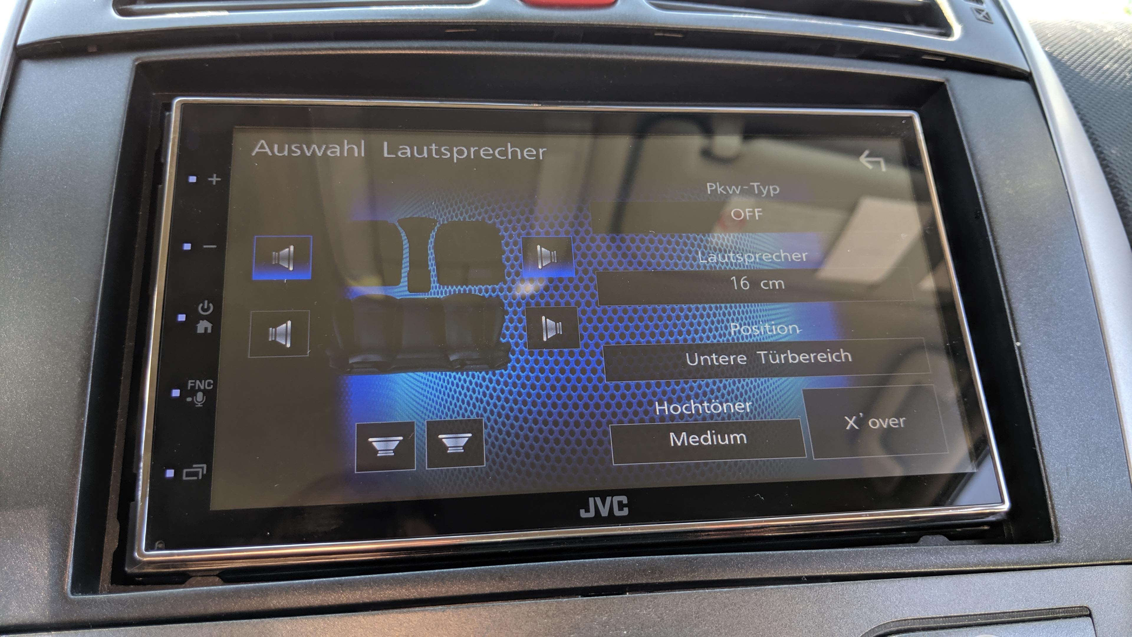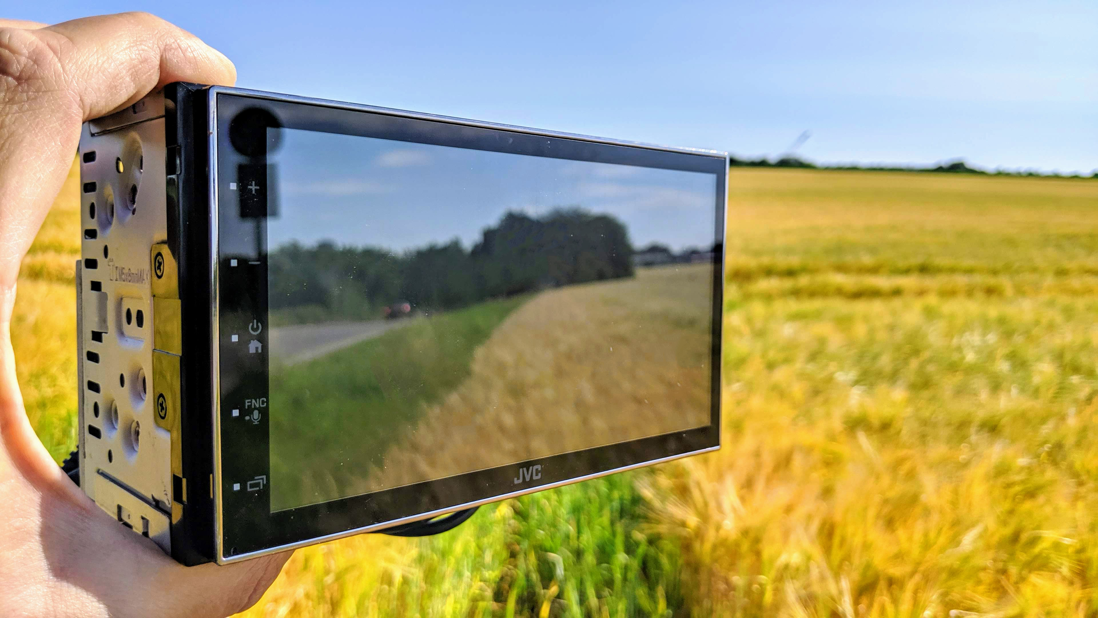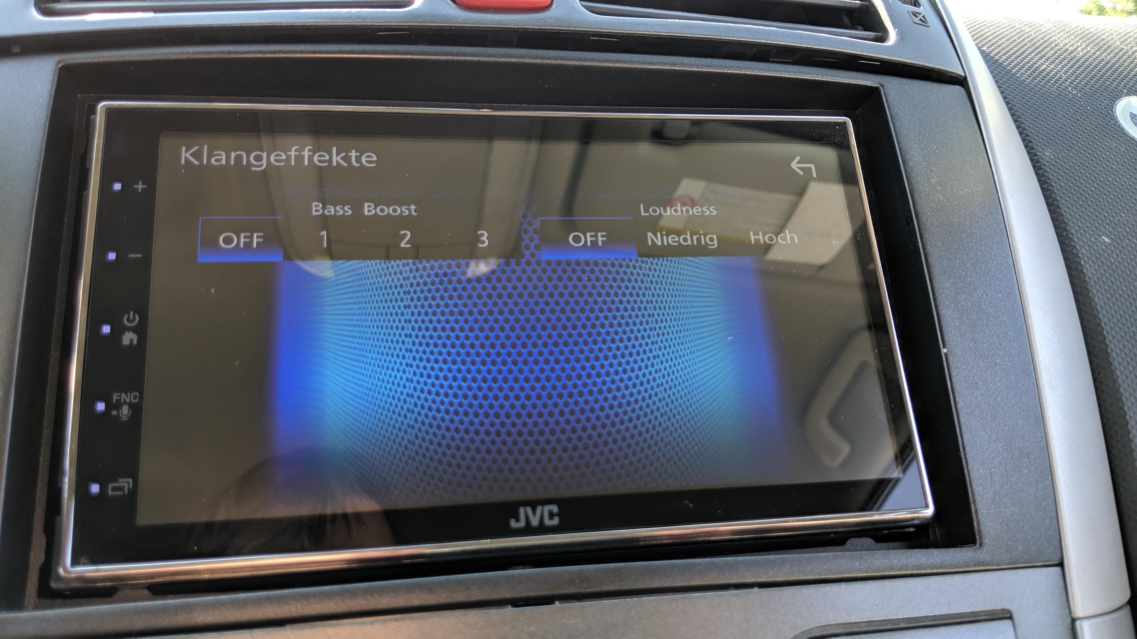 Die fehlenden physischen Tasten beim JVC haben einen gravierenden Nachteil: Selbst um einfache Funktionen wie laut/leise zu nutzen, muss der Fahrer die Augen von der Straße nehmen und auf das Display lenken. Wer also kein Lenkrad mit Funktionstasten hat und diese (meist über einen Adapter) mit dem JVC verbindet, sollte lieber zu einem anderen Moniceiver greifen.