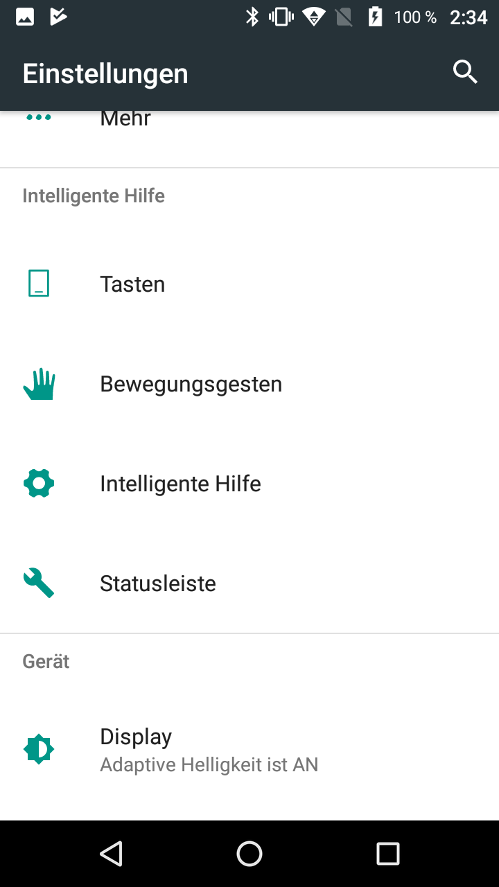 Optisch handelt es sich im Prinzip um ein Stock-Android-System, also ohne größere Anpassungen von Herstellerseite. Nur in den Systemeinstellungen finden sich einige zusätzliche Features, die allerdings nur wenig Mehrwert bieten. Es handelt sich dabei beispielsweise um die Möglichkeit Screenshots zu erstellen, indem mit drei Fingern übers Display gewischt wird, die Kamera mit zweimal drücken des Power-Buttons zu starten und die Reihenfolge der On-Screen-Buttons zu ändern.